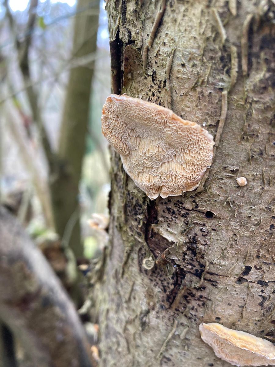 dies ist mein erster Beitrag hier, also seid gern nachsichtig mit mir, wenn ich etwas falsch mache. Für mein Studium habe ich angefangen, mich mit Pilzbestimmung zu beschäftigen und in den letzten Monaten besonders mit Baumpilzen. Folgenden Porling habe ich am 02.03.2024 in Jena (Thüringen) am Rand vom Forst gefunden: