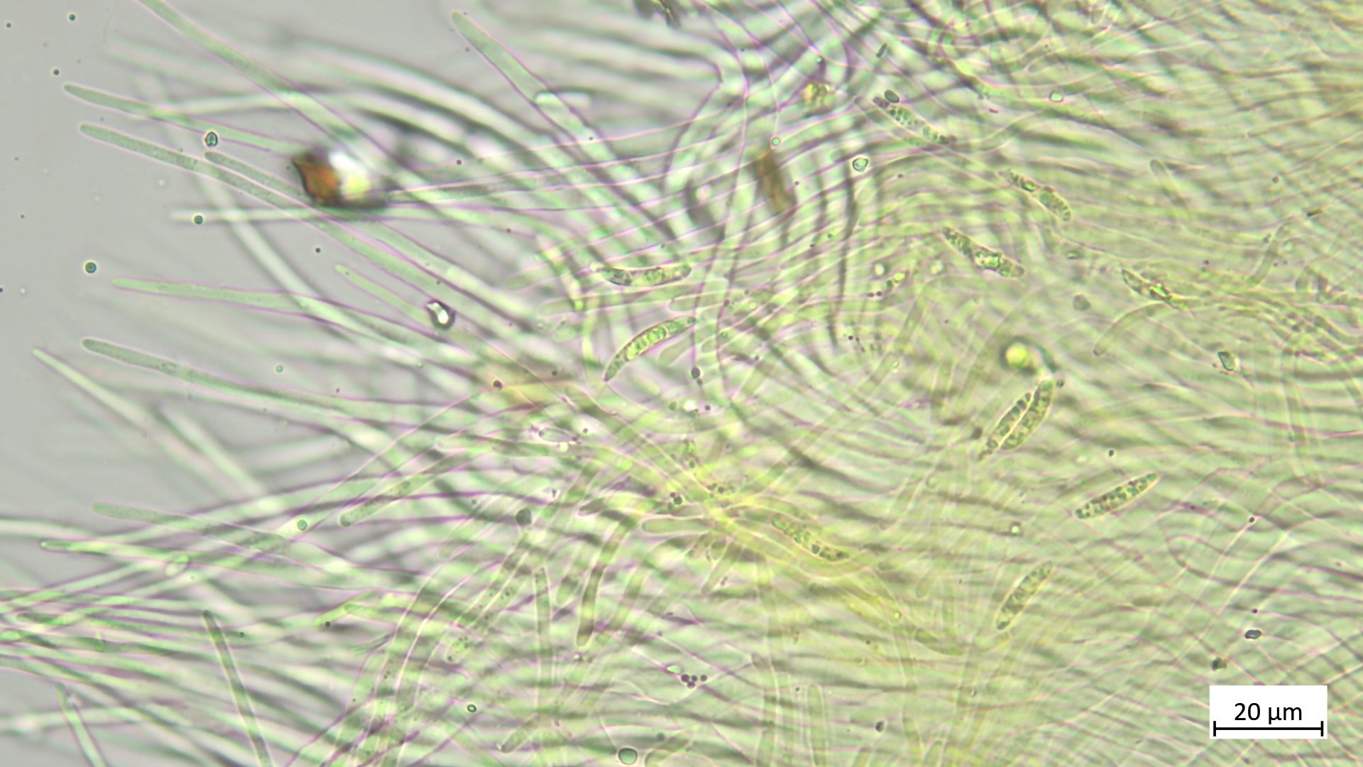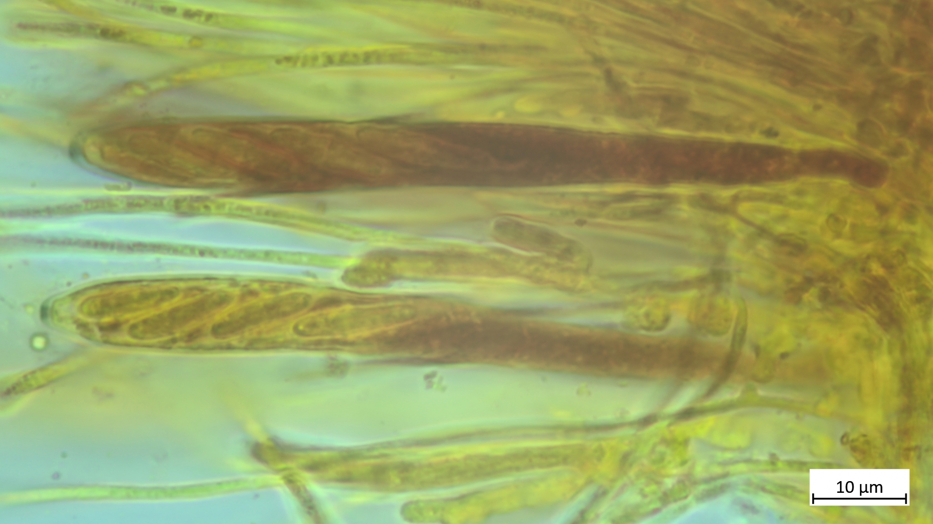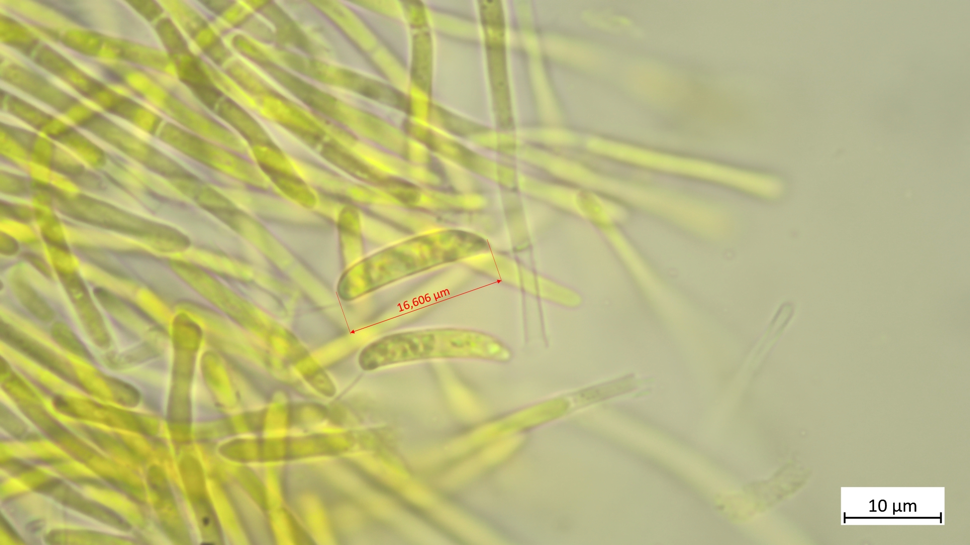 Sporen etwa um die 17µm (vermutlich noch etwas unreif). Die eher elliptischen Sporen grenzen die Art aber sicher von A. aurata ab, die deutlich längere Sporen besitzt.