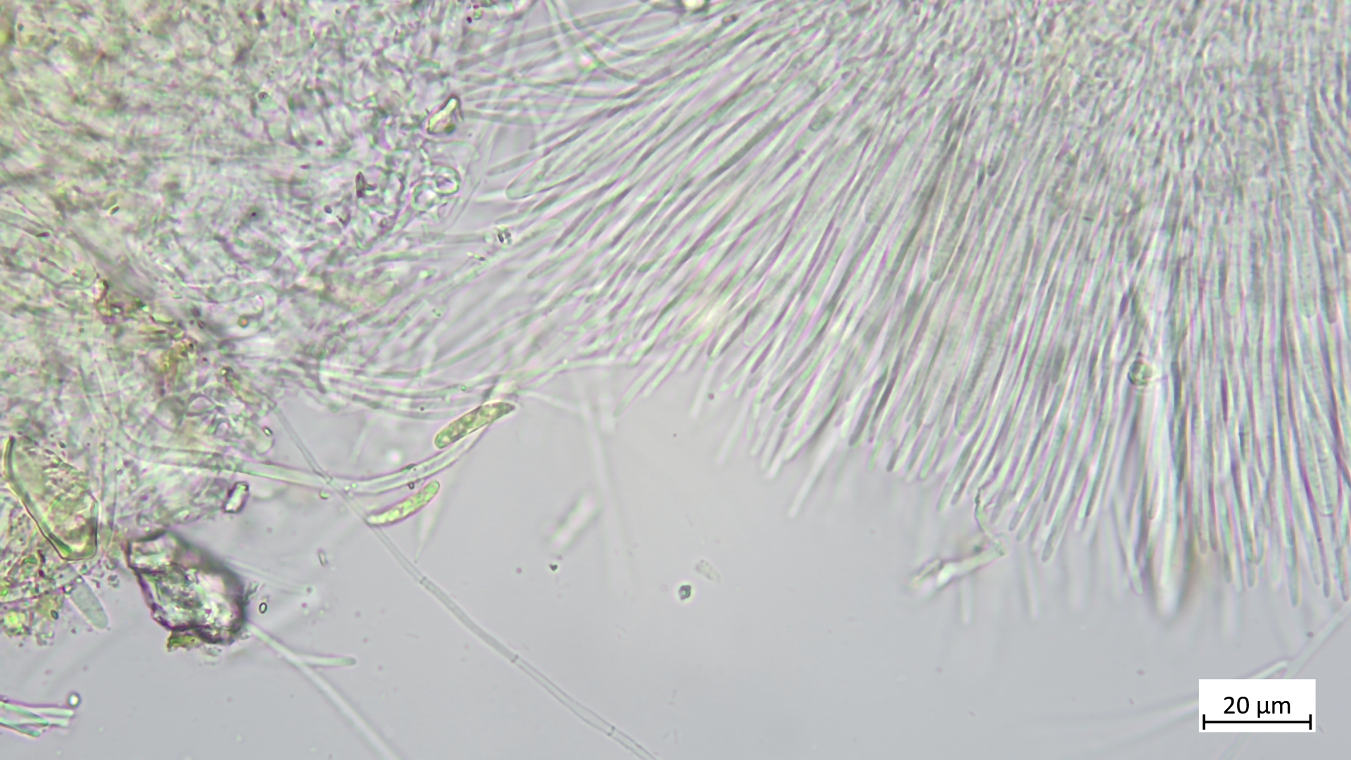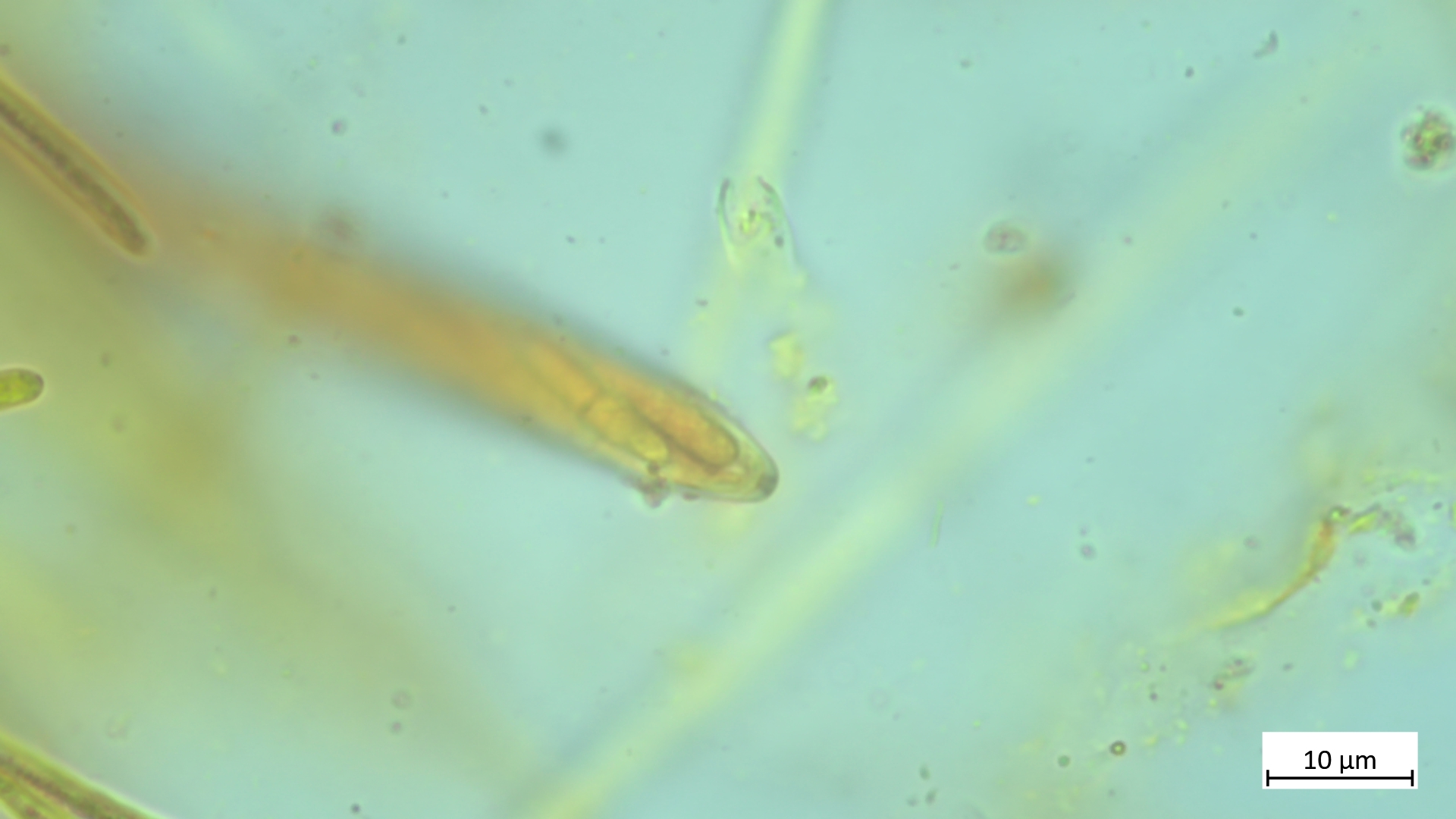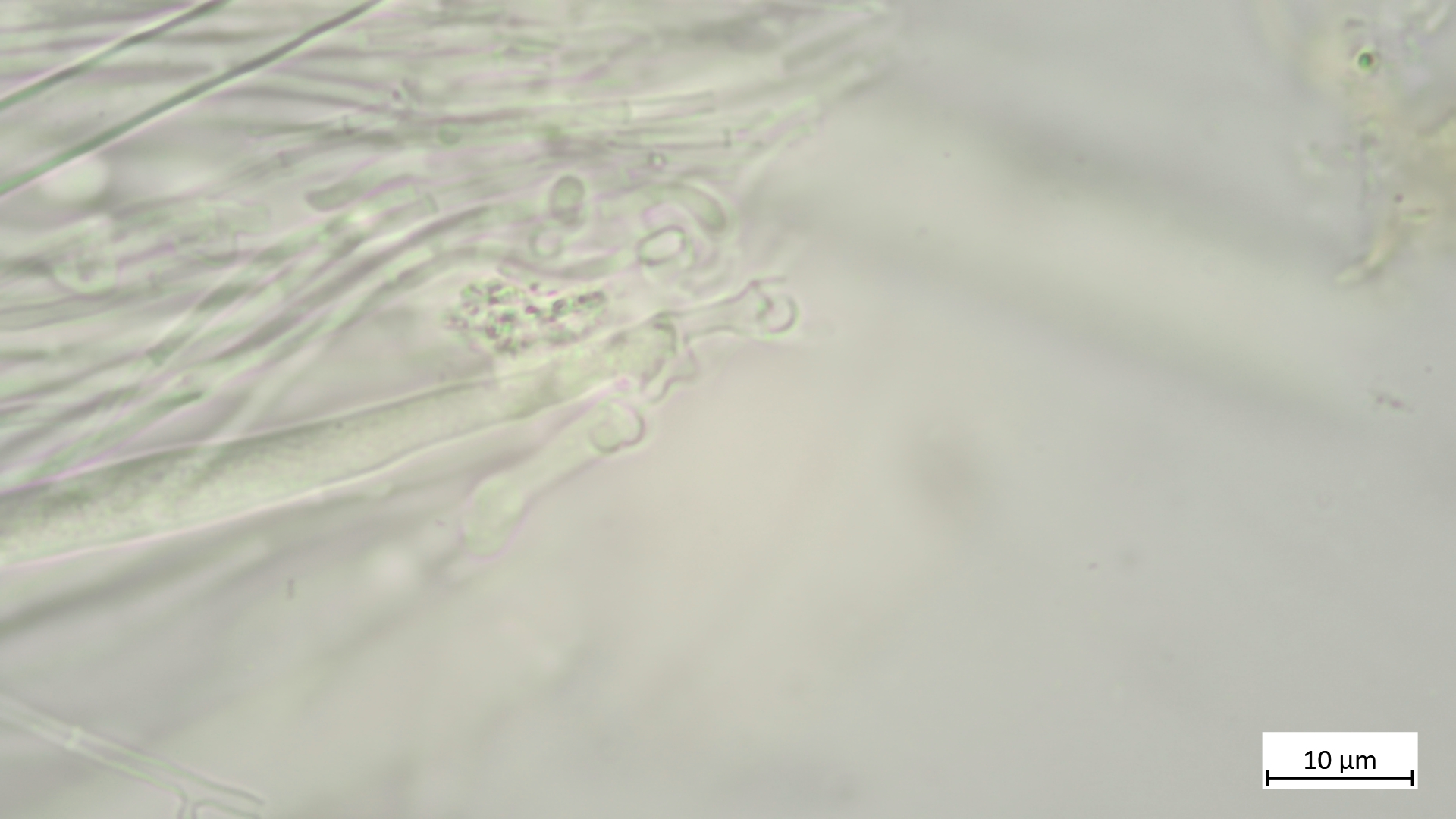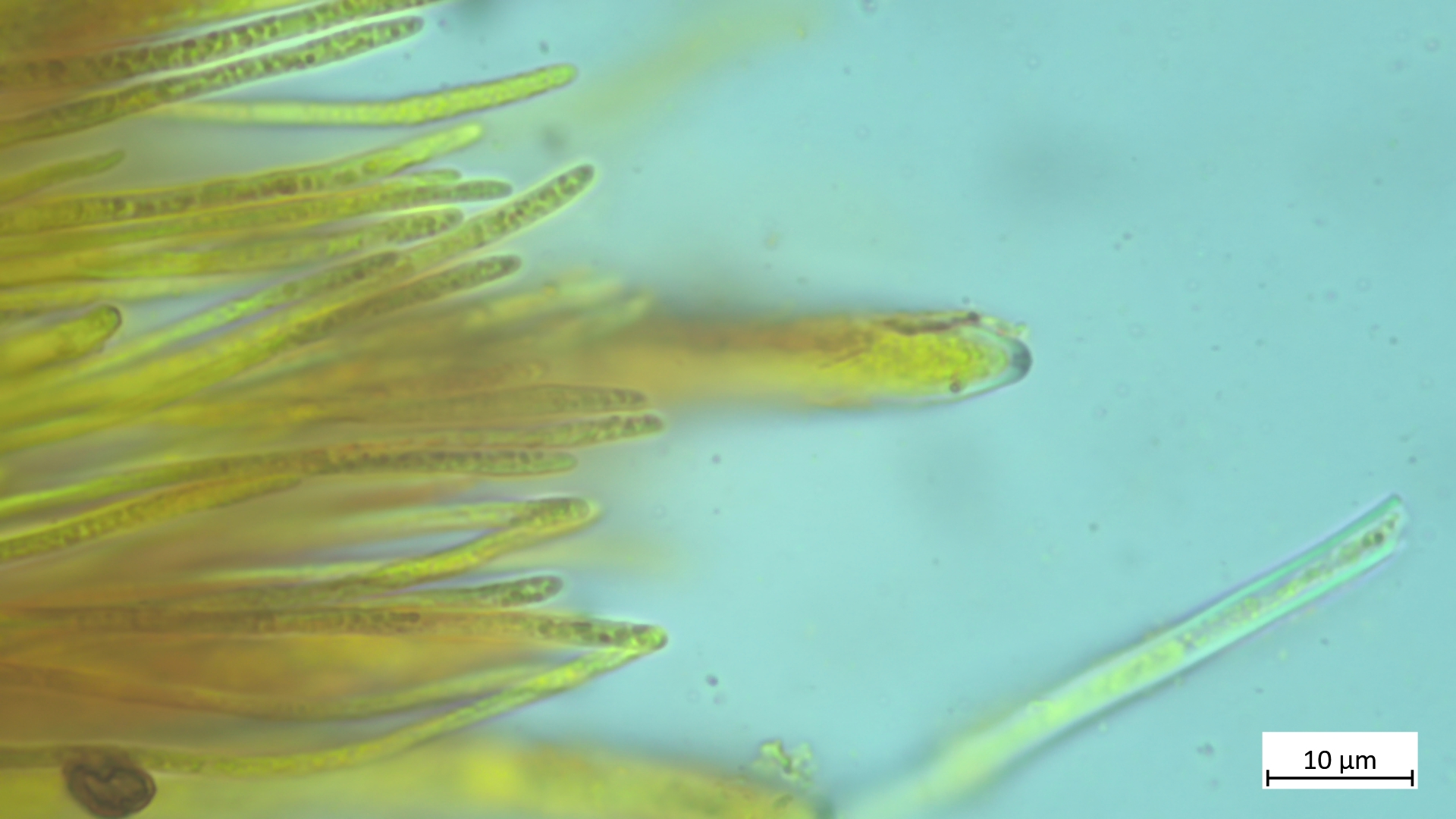 Sporen etwa um die 17µm (vermutlich noch etwas unreif). Die eher elliptischen Sporen grenzen die Art aber sicher von A. aurata ab, die deutlich längere Sporen besitzt.