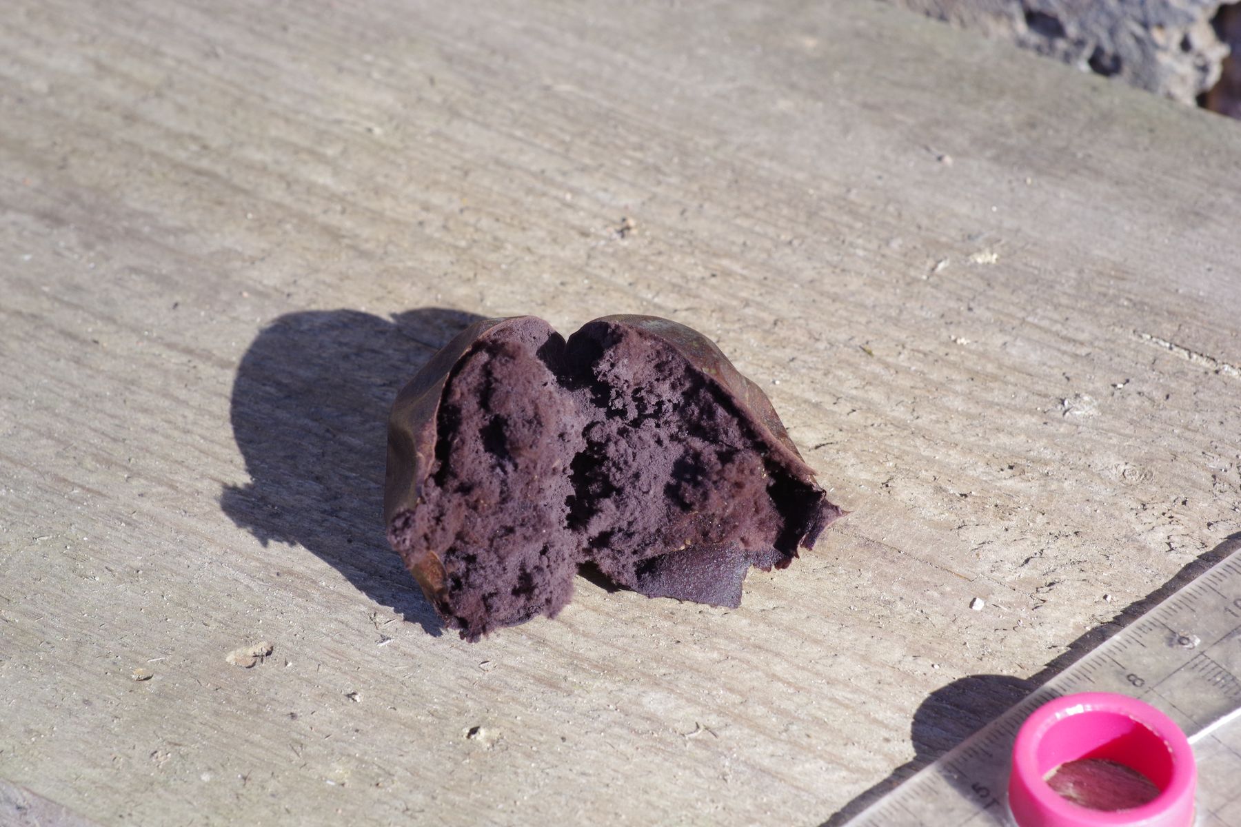 Vom Namen her würde ich an B. nigrescens denken, beim Vergleich mit den Angaben von Hanna Maser passen Sporengröße, die Länge der Sterigmenreste nicht ganz und besonders der Vermerk "Endoperidie pergamentartig steif". Im großen Ganzen recht passend. Würdet Ihr mit dieser Bestimmung mitgehen?