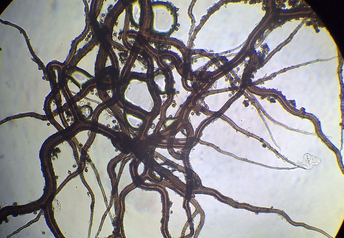 2) von heute aus dem fichtendominierten Mischwald, auf Sand/Kies, leicht kalkhaltig, schwarz, auch innen, ohne Wurzeldinger,