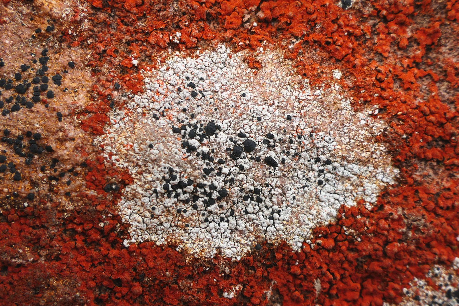 das rote Tischtuch ist vermutlich nur eine "Halbflechte" (= Algen).