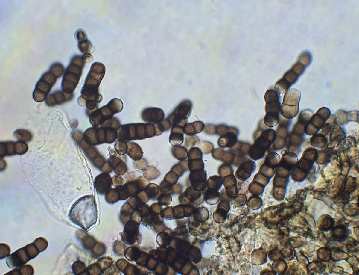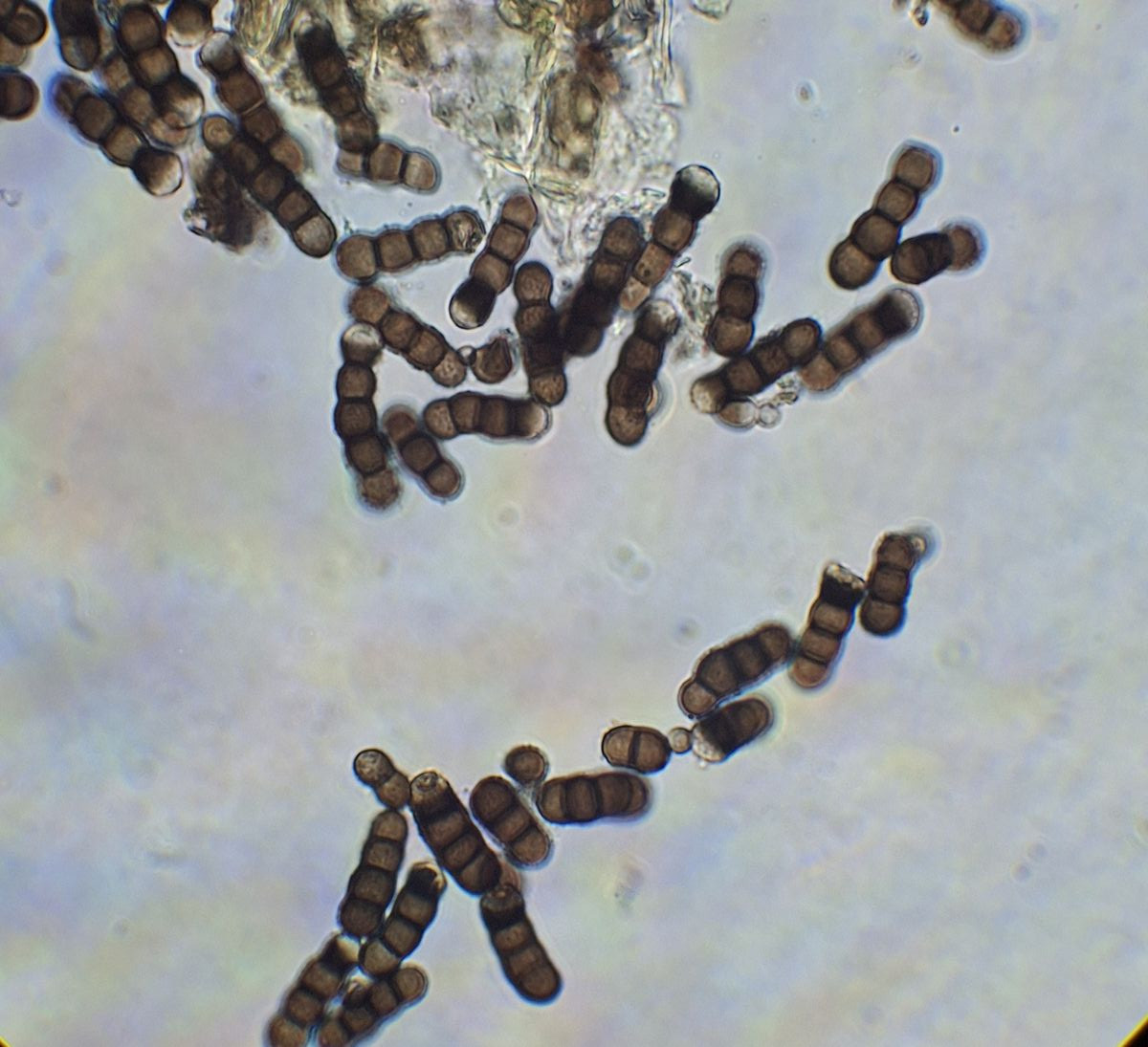 Die Sporen, falls das welche sind, bestehen aus 4-6 µm großen Kullern, die in Linien bis zu 6 Stuck zusammenbacken, meistens 4.