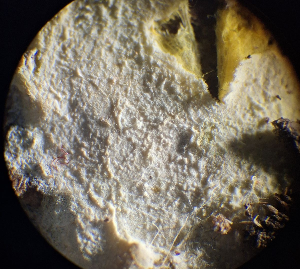 Auf ziemlich morscher Salweide, weißlich/beige, an der Entnahmestelle gelb