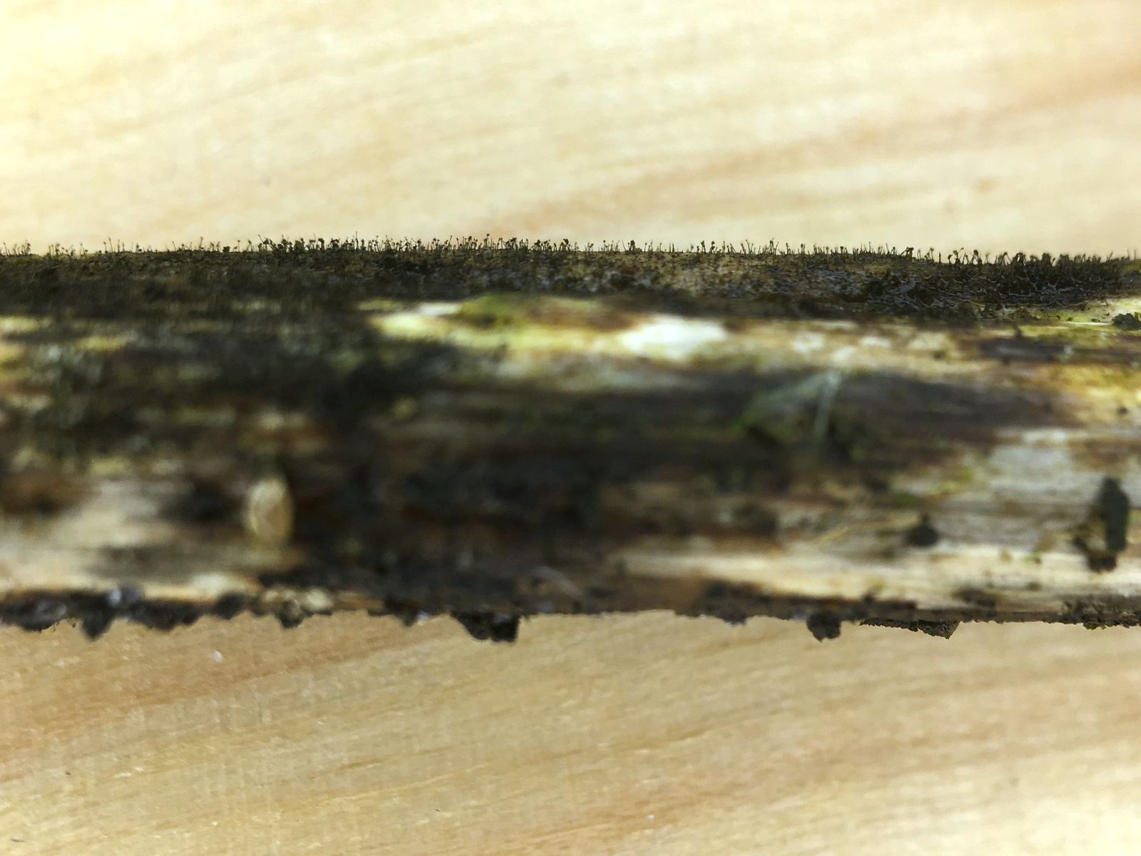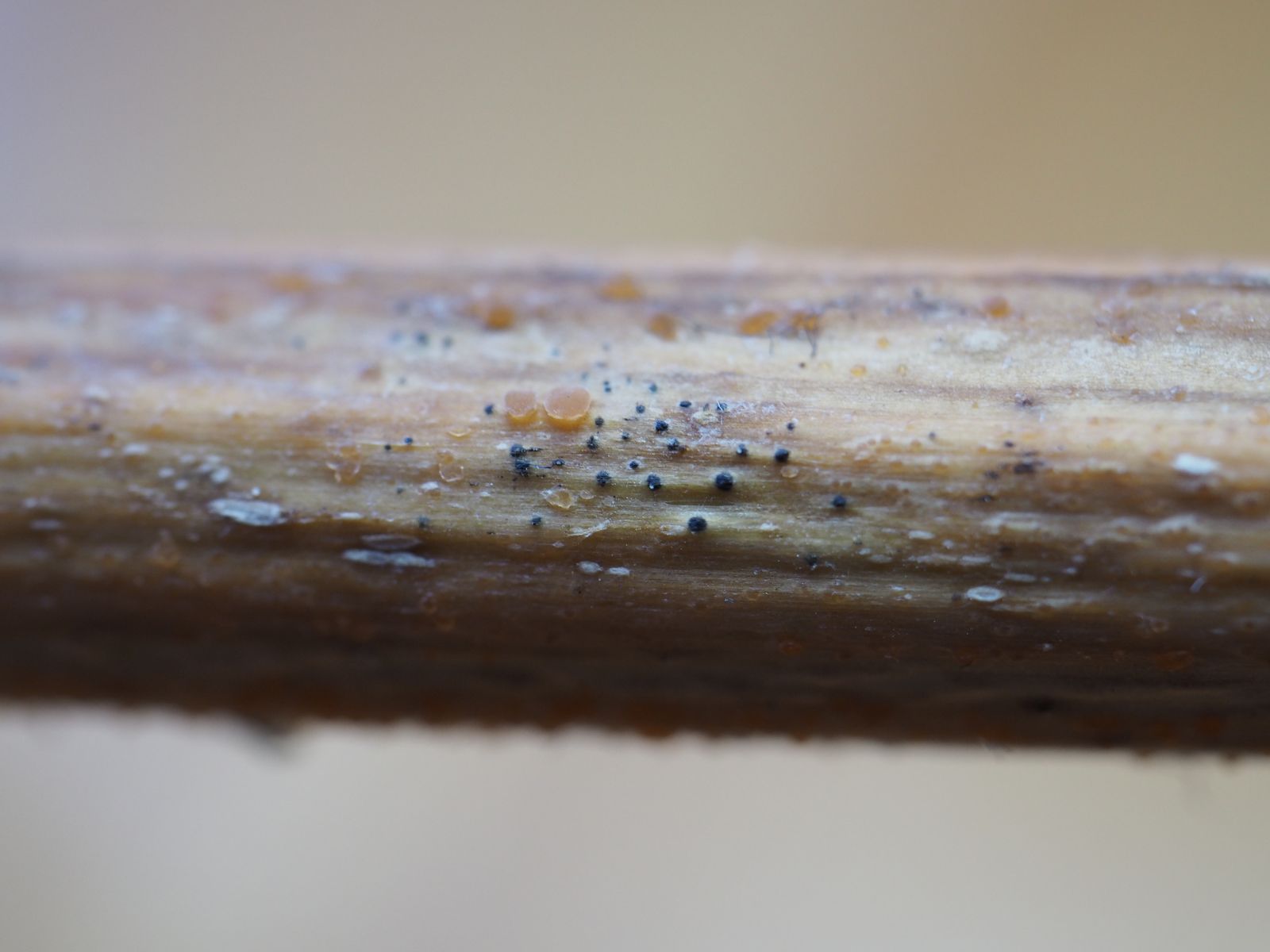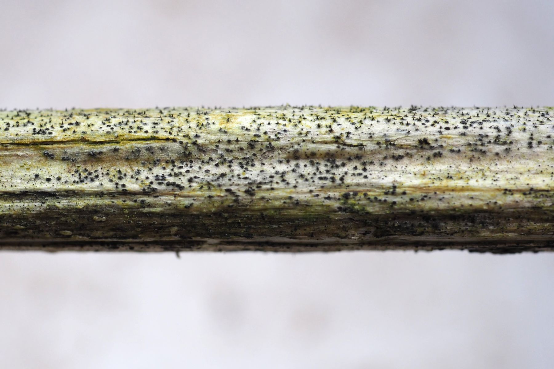 Dein Schnittbild Nobi, illustriert sehr schön die mögliche Lage der Perithecien der Letosphareia acuta. Wenn sie unter der äußersten Rinde liegen und nur die Ostiolen herausschauen, denkt man erstmal gar nicht daran.