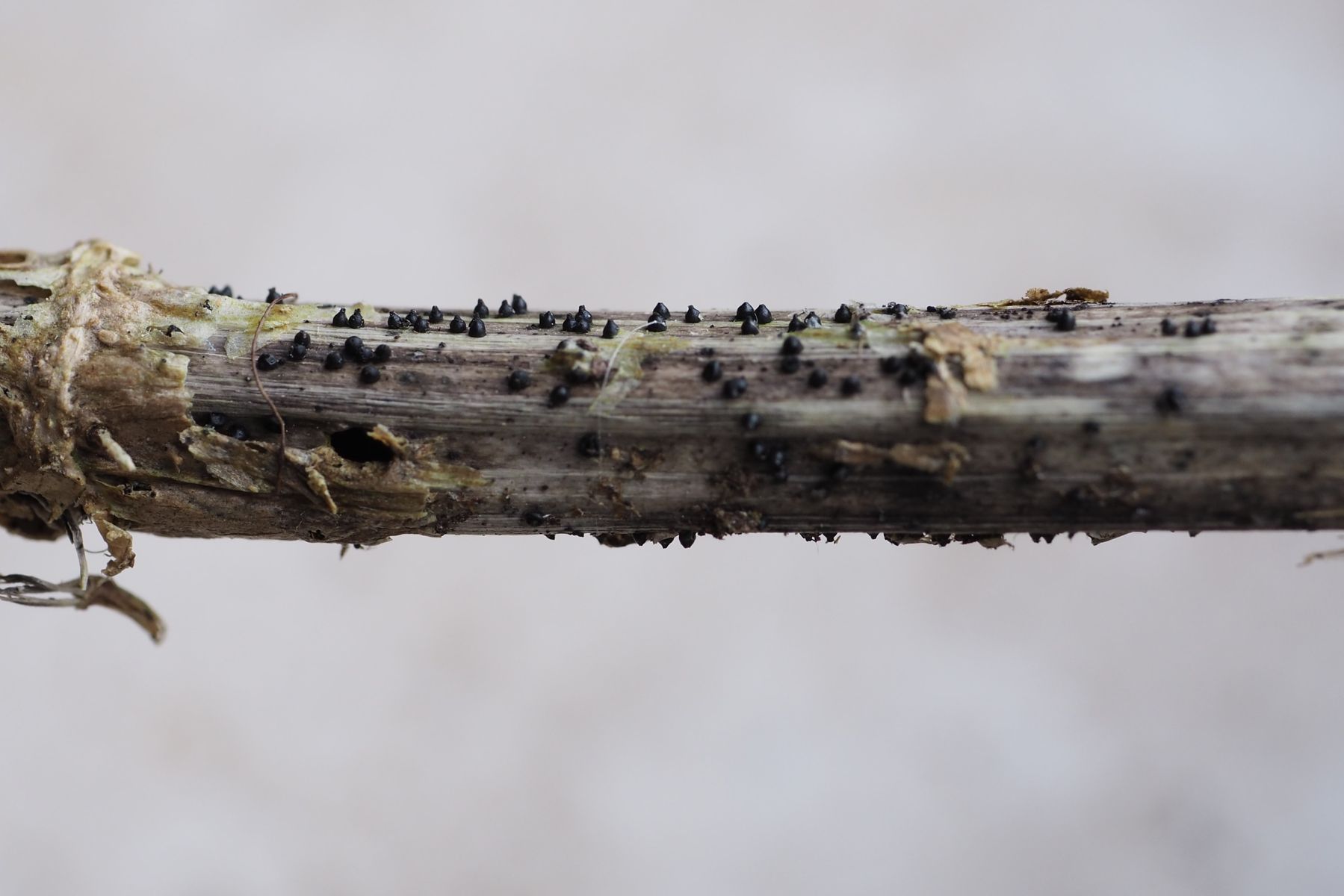 nach längerer unfreiwilliger Pilz-Pause habe ich mir letzte Woche ein paar alte Brennnesselstängel näher angeschaut. Zwar habe ich keine der beiden erhofften Trichopeziza-Arten finden können, aber davon abgesehen an nur einer Hand voll Stängel eine doch recht vielfältige Pilzgemeinschaft. Viele dieser Arten sind ausgesprochen häufig, werden aber anscheinend eher selten beachtet. Dazu möchte ich hier mal einen Anstoß geben.