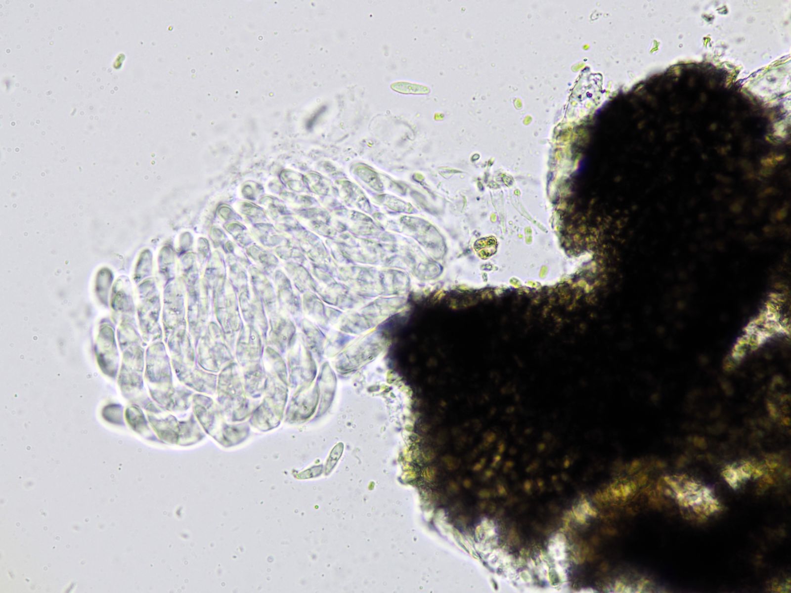 Die einfach Septierten Sporen maß ich kleiner als in der Literatur angegeben, ich denke jedoch dass das an der Unreife des untersuchten FK liegen könnte.