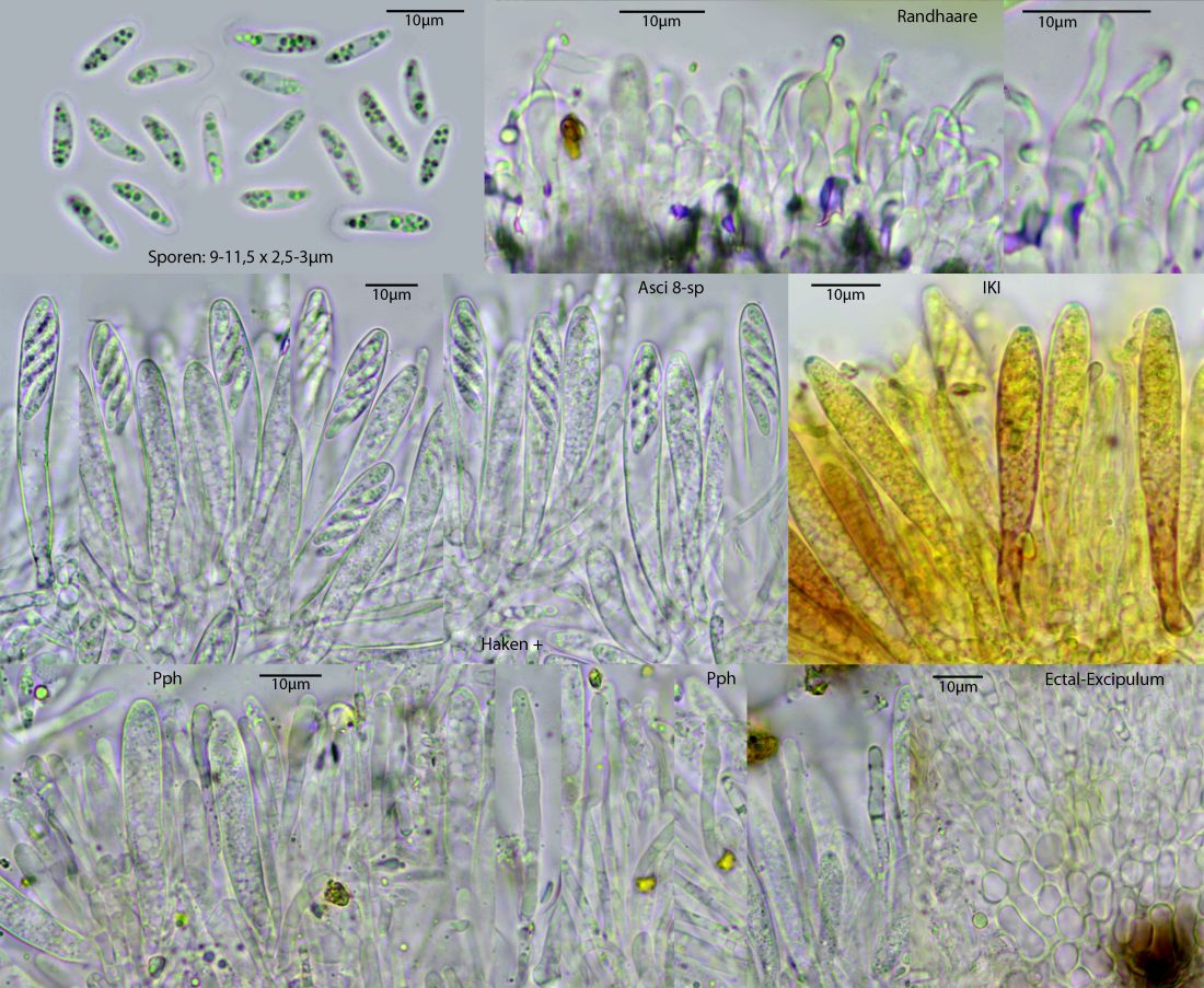 Asci u. Sporen (11) 11.8 - 14.2 (14.4) × (3.3) 3.4 - 4.1 (4.3) µm Q = (3.2) 3.23 - 3.87 (3.9) ; N = 12