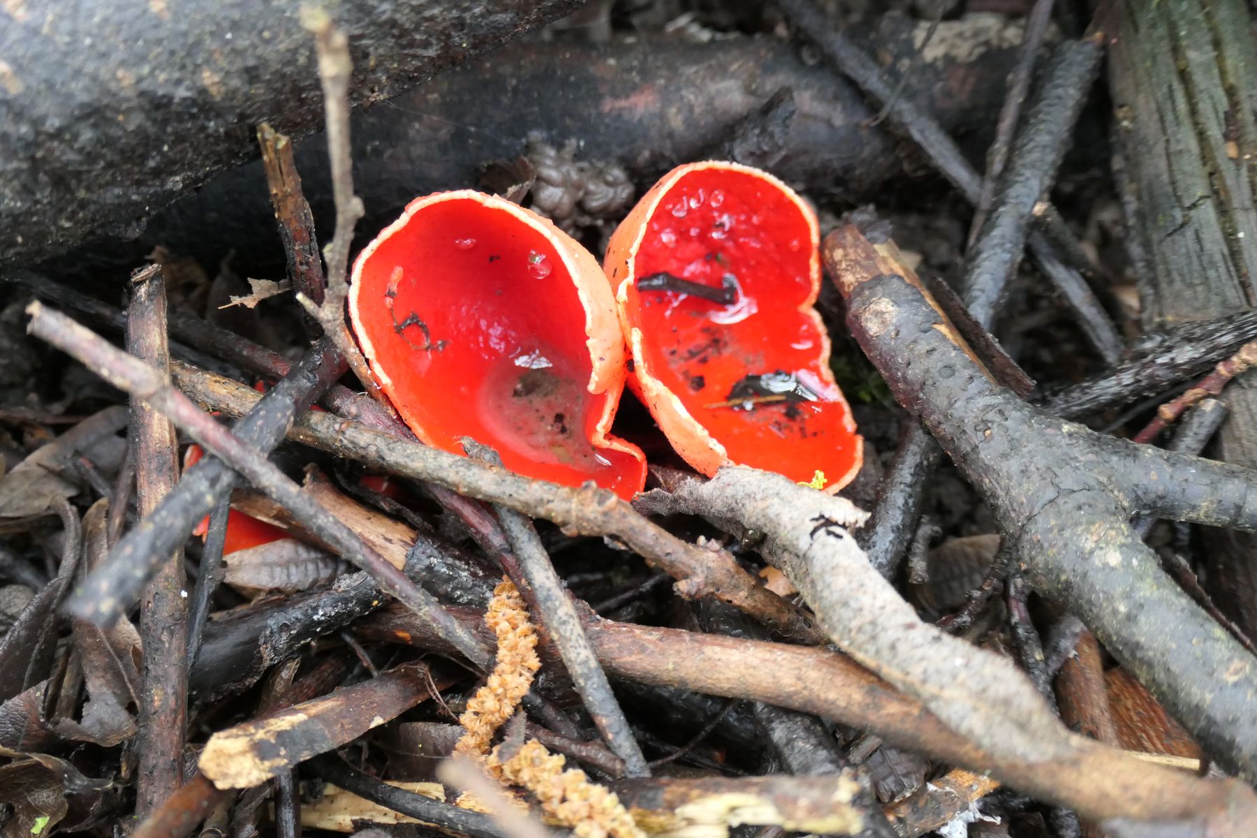 gut ein Dutzend von diesen prächtigen Becherlingen. Beim Kippen von zwei Expl. entluden sich graue Wölkchen von Sporen.