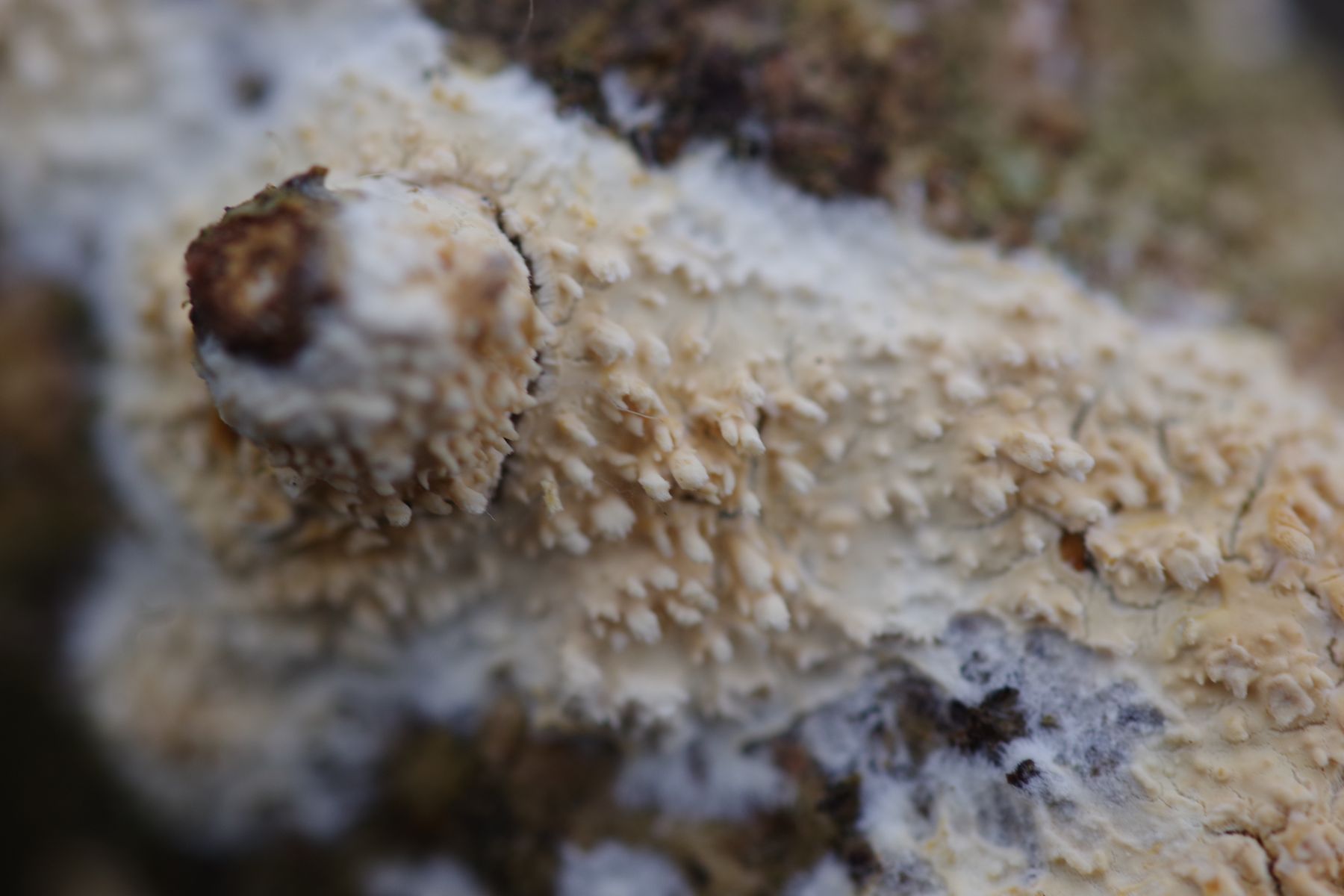 Wächst an noch stehender und berindeter morscher Eberesche in Augenhöhe. Die Stacheln sind nicht länger als 2 mm.