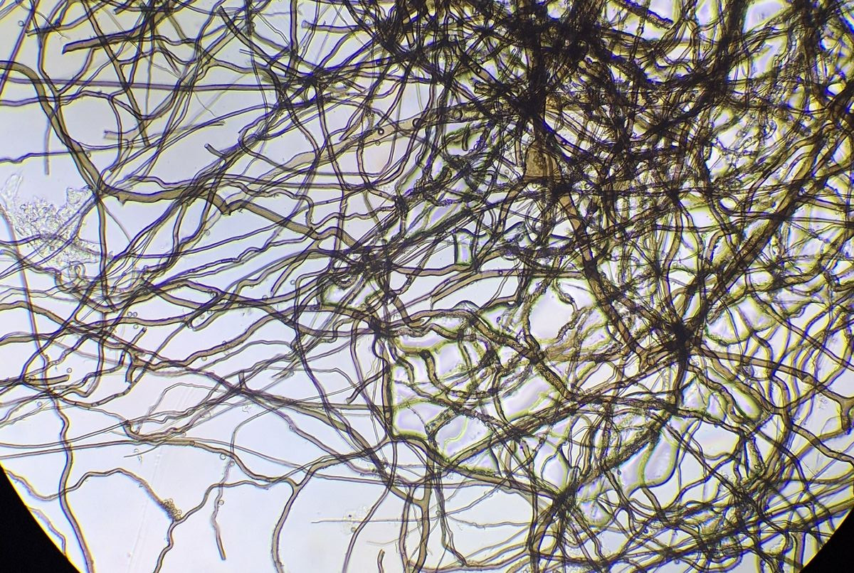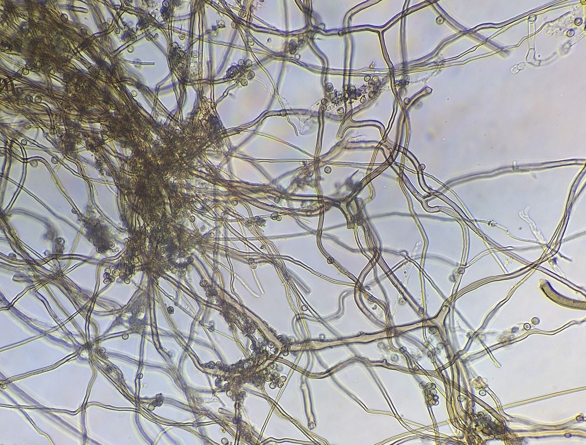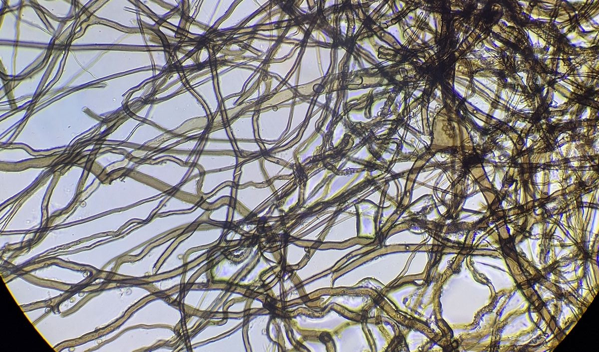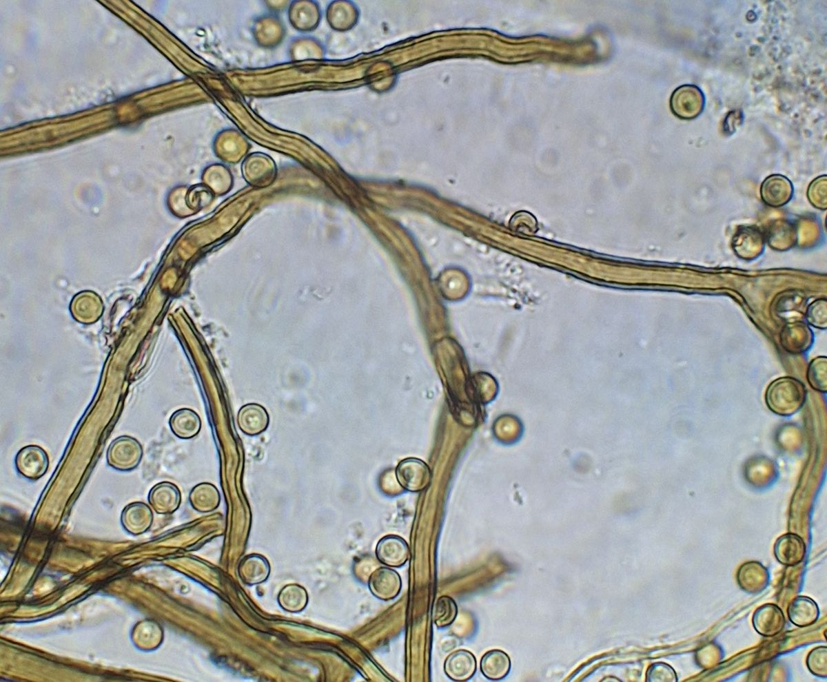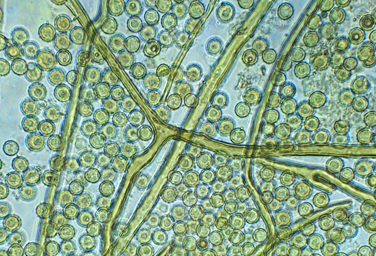 Hyphen gelegentlich verzweigt, nicht septiert, mäßig dicke Wände, die nicht unterbrochen sind. Gelegentlich mit vereinzelten Bläschen/Tropfen.