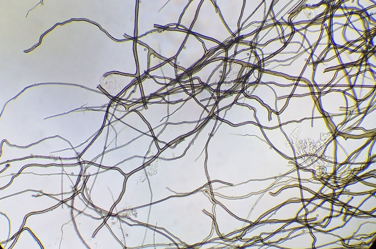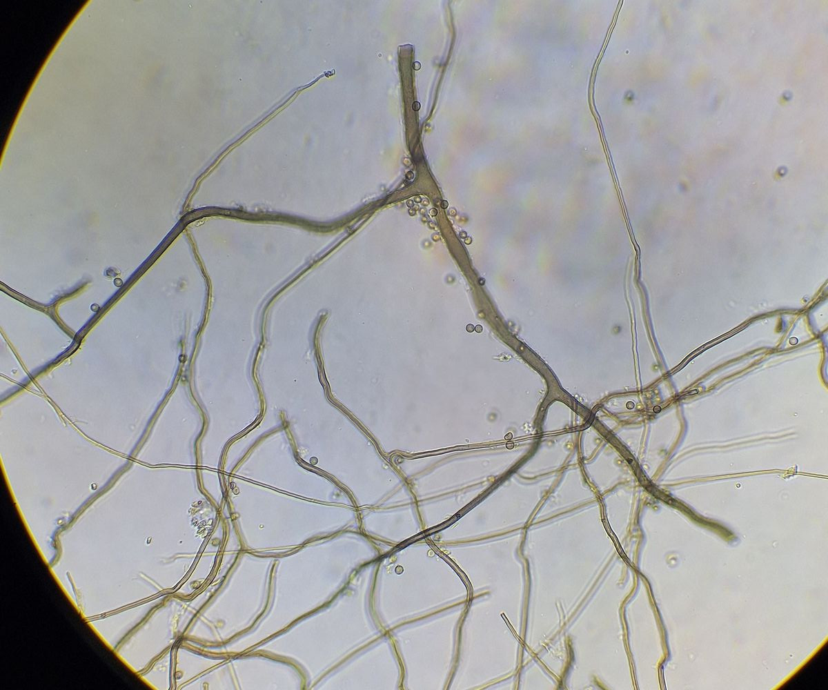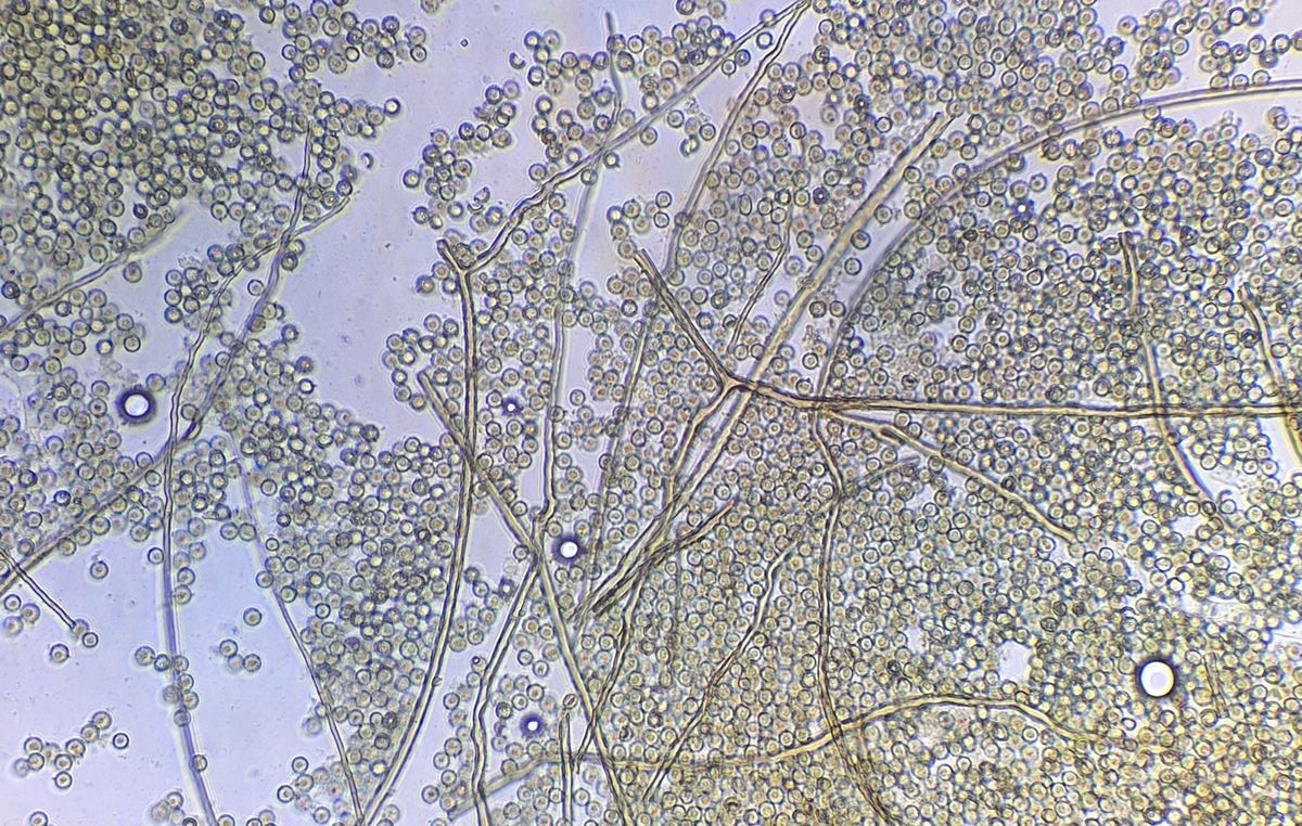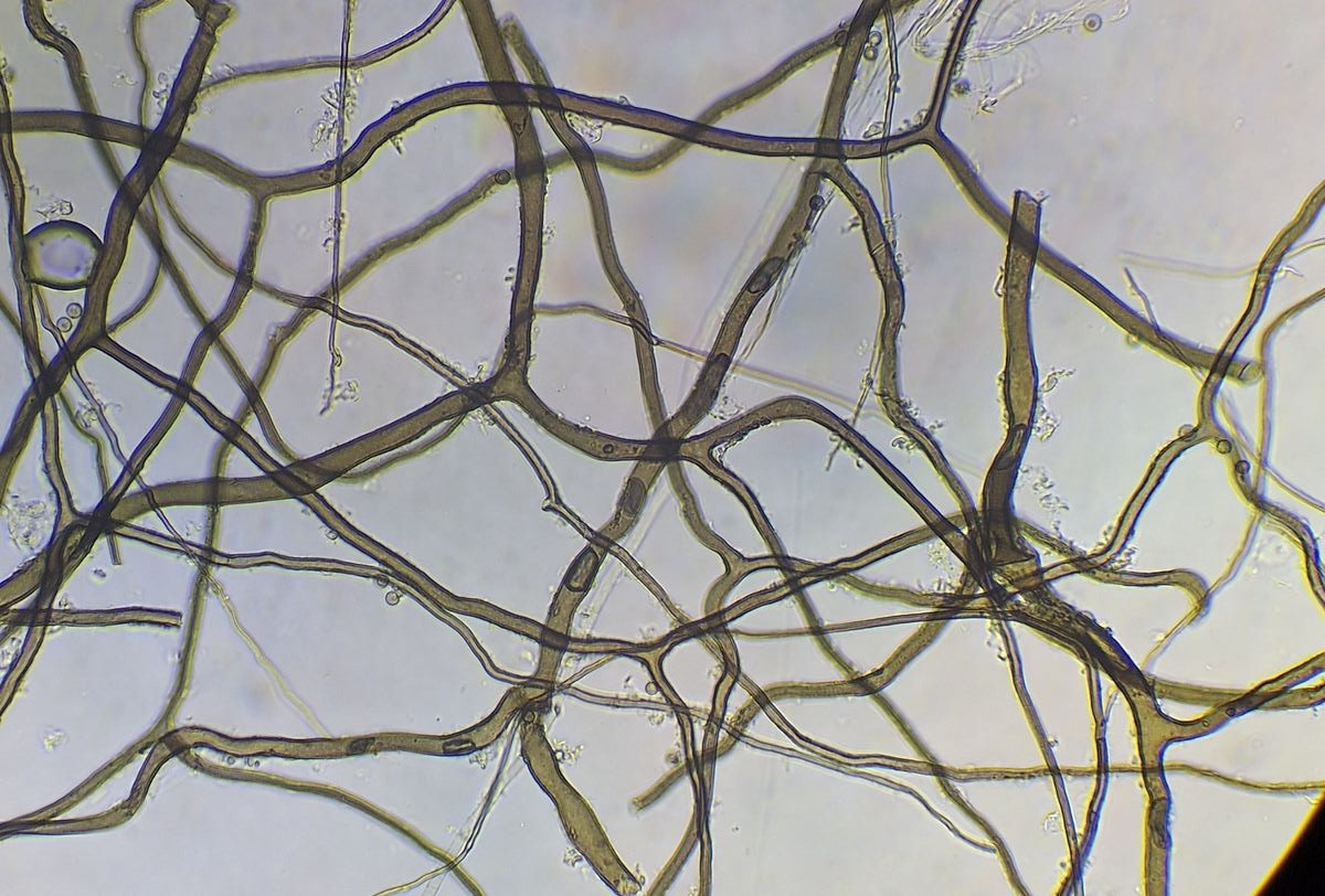 Hyphen gelegentlich verzweigt, nicht septiert, mäßig dicke Wände, die nicht unterbrochen sind. Gelegentlich mit vereinzelten Bläschen/Tropfen.