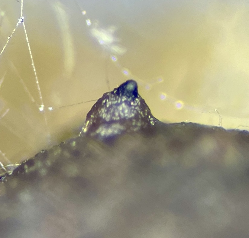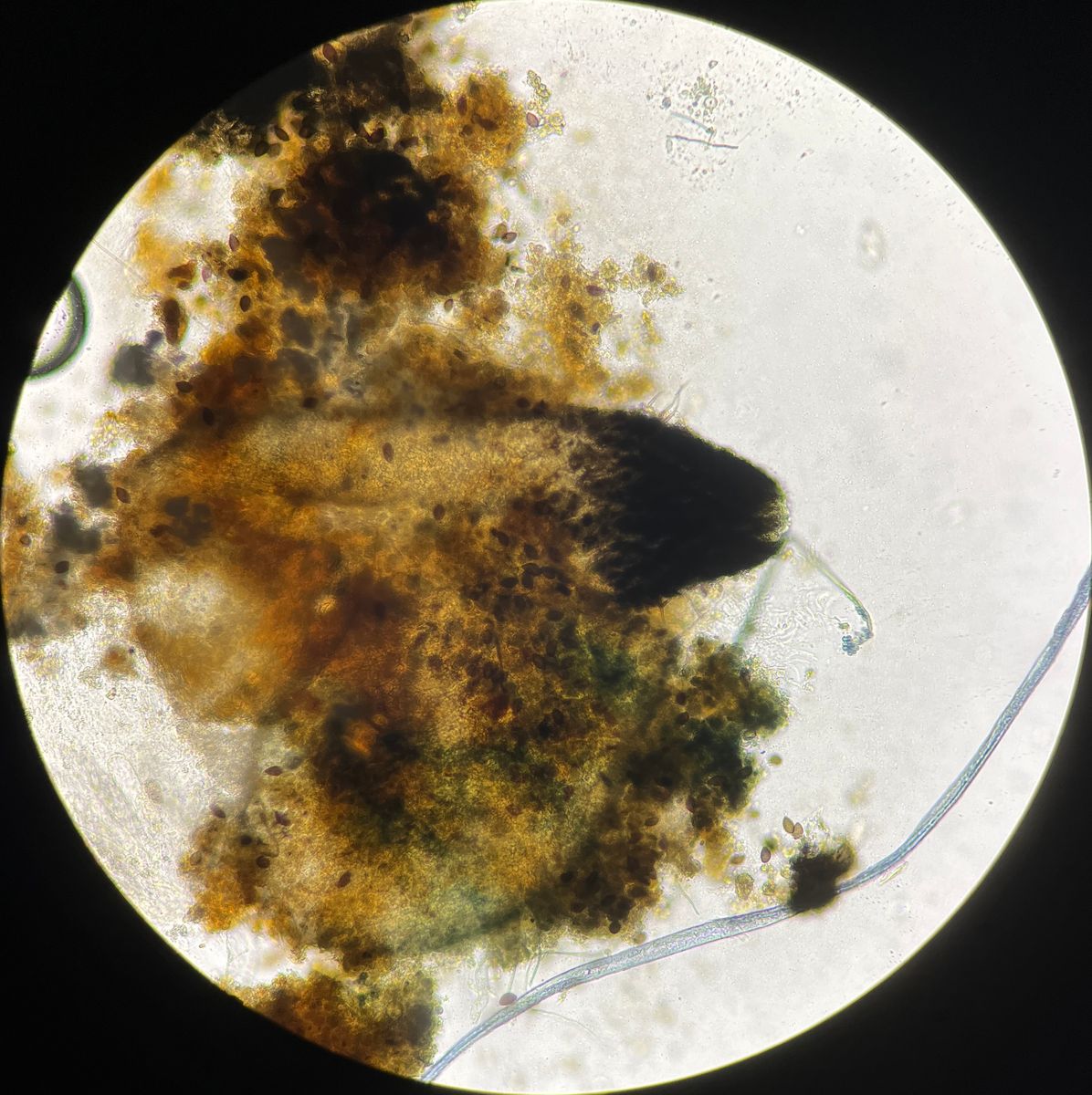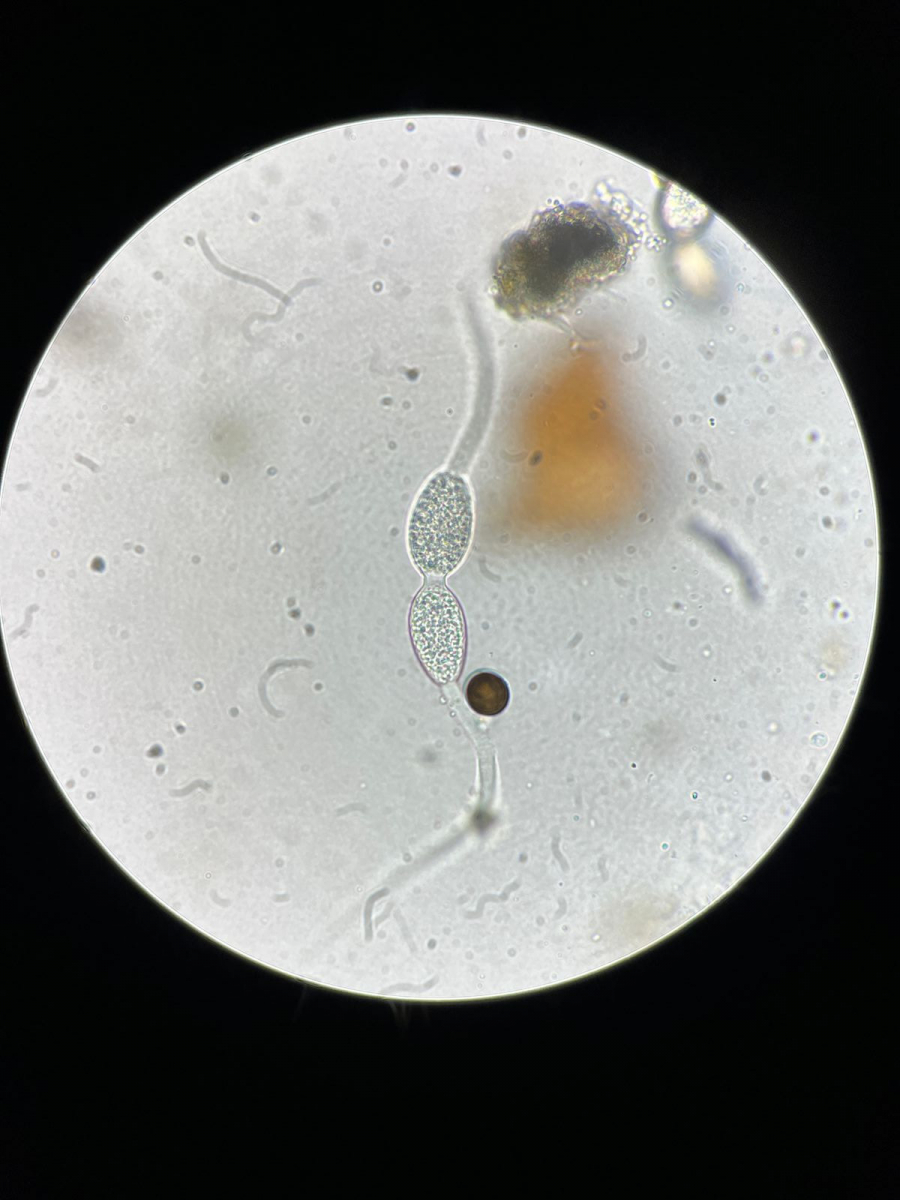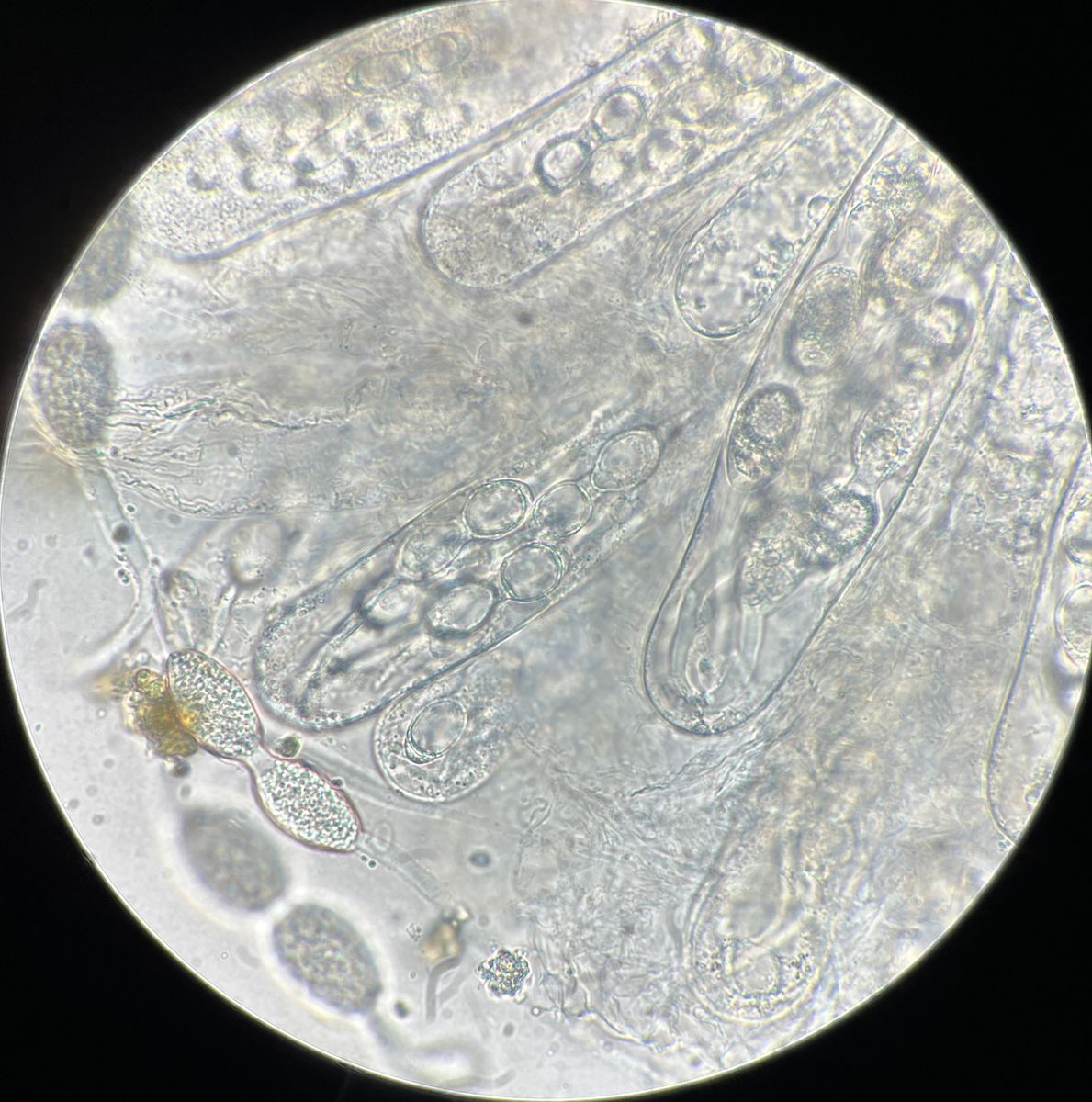 Mir fällt gerade auf, daß die Sporen bei Deinem Fund nur eine mittlere Septe haben und ansonsten keine Zeichnung haben. Bei meinen Funden hatten die reifen braunen Sporenzellen jeweils noch einen dünnen dunkelbraunen Querstreifen in der Nähe der Septe. Die Sporenzellen waren bei meinen Funden gefühlt länger und schlanker und die Anhängsel breiter.