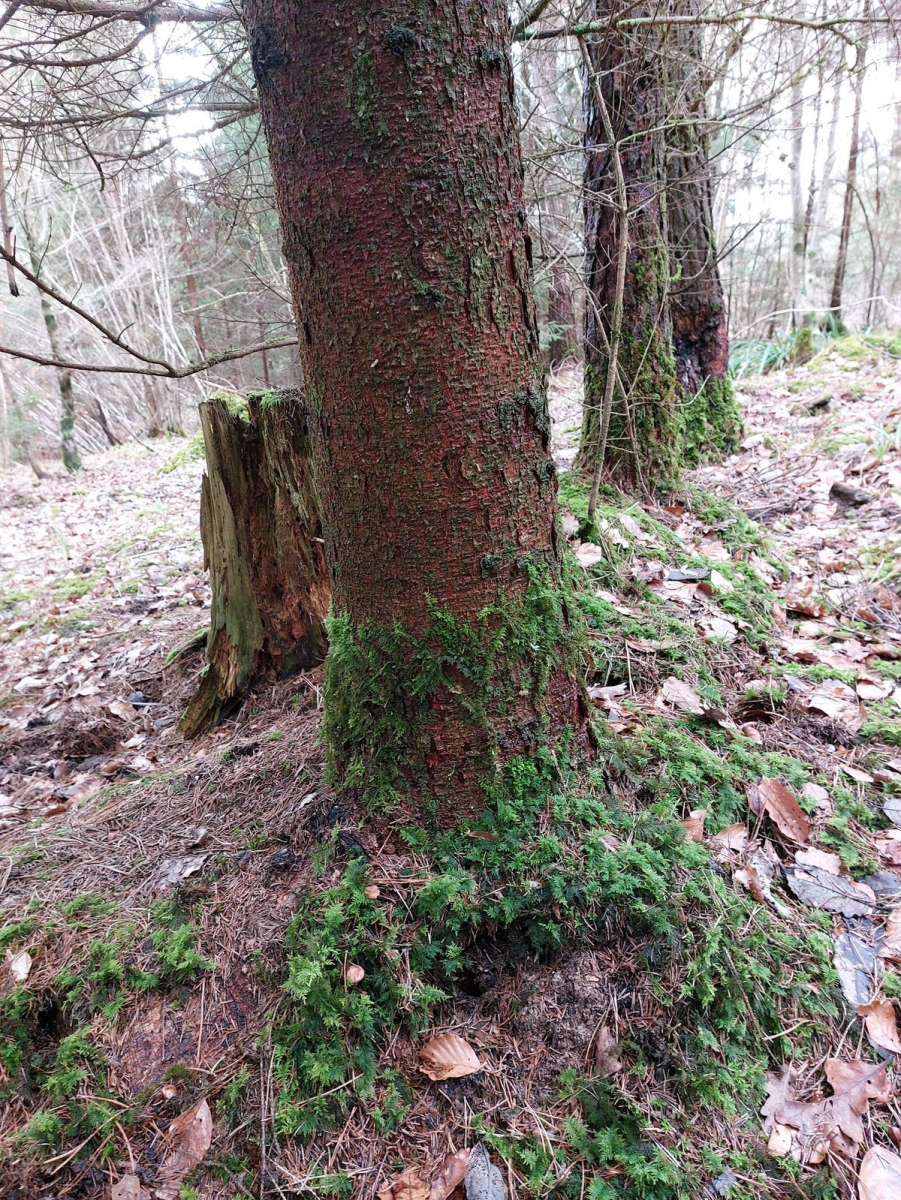 • Der stand leider so tief im Boden dass ich keinen Zapfen ausmachen konnte. Aber es dürfte Kiefer sein. Anbei stehen nämlich nur 5 Nadelbäume derselben Sorte. Der Rest ist laubwald.