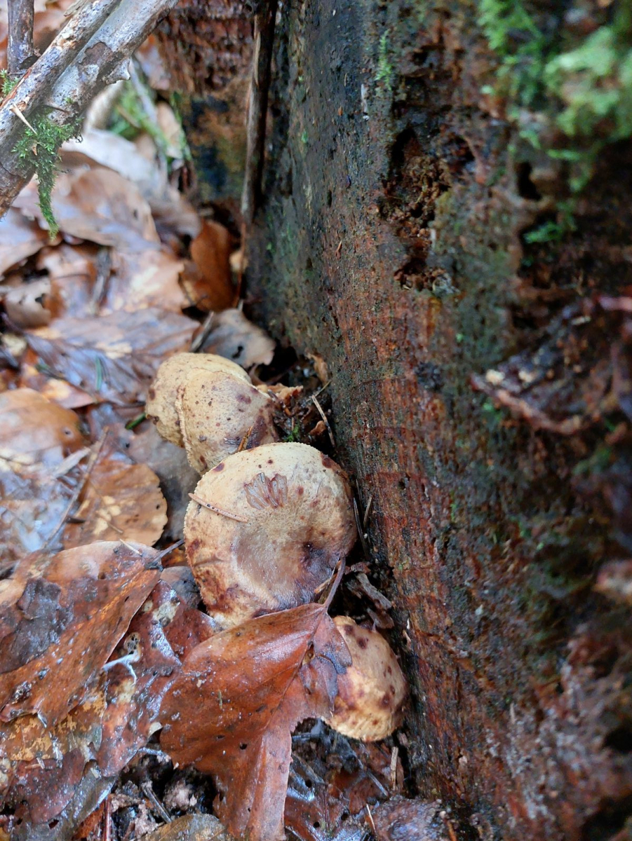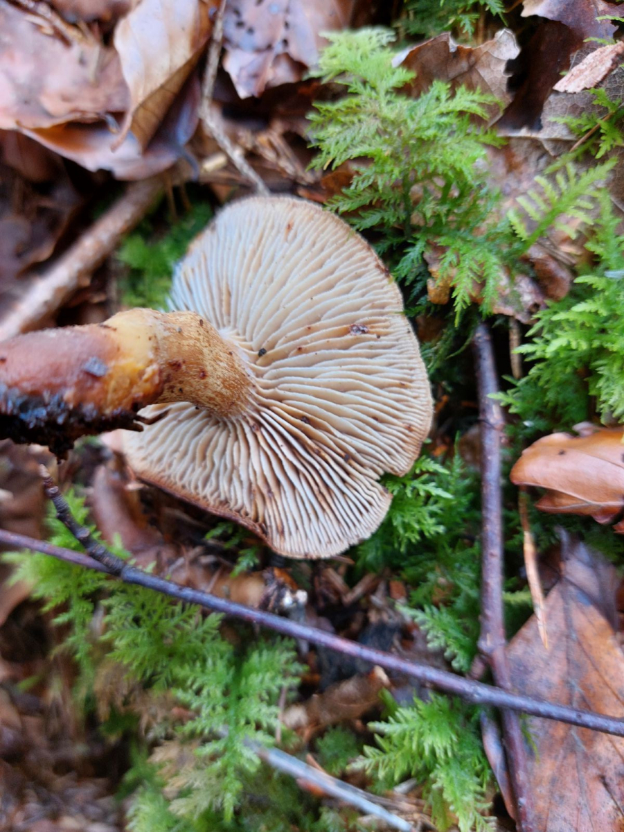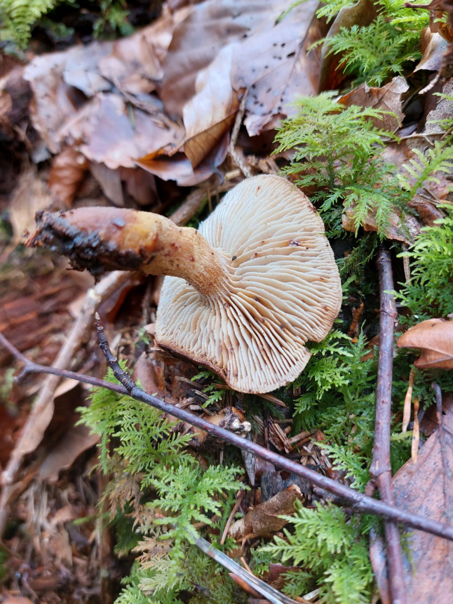 anhand der vor Ort vorhandenen Zapfen darf man ruhig ein wenig spekulieren, zur exakten Bestimmung sollte man bei Zapfenrüblingen selbstverständlich die Zystiden unter dem Mikroskop anschauen. Mit Ohrlöffelstacheling, Würzelchen-Trichterling und Harzigem Sägeblättling kann ich mich hier anfreunden, vor allem wenn die Lamellen des Sägeblättlings auffallend klebrig waren.
