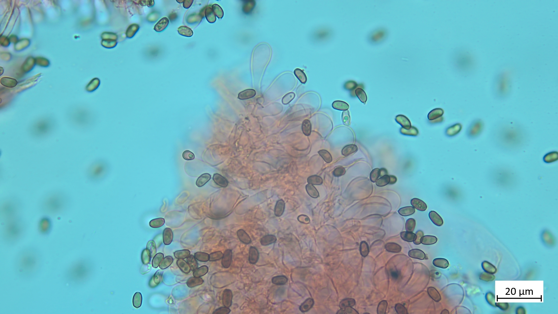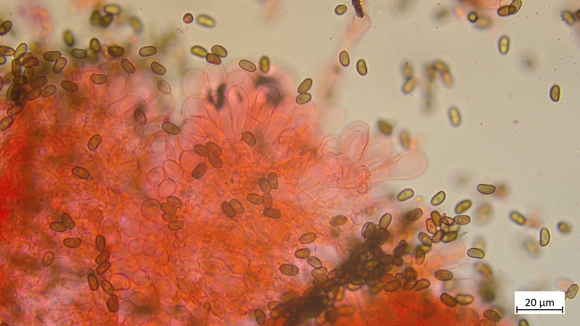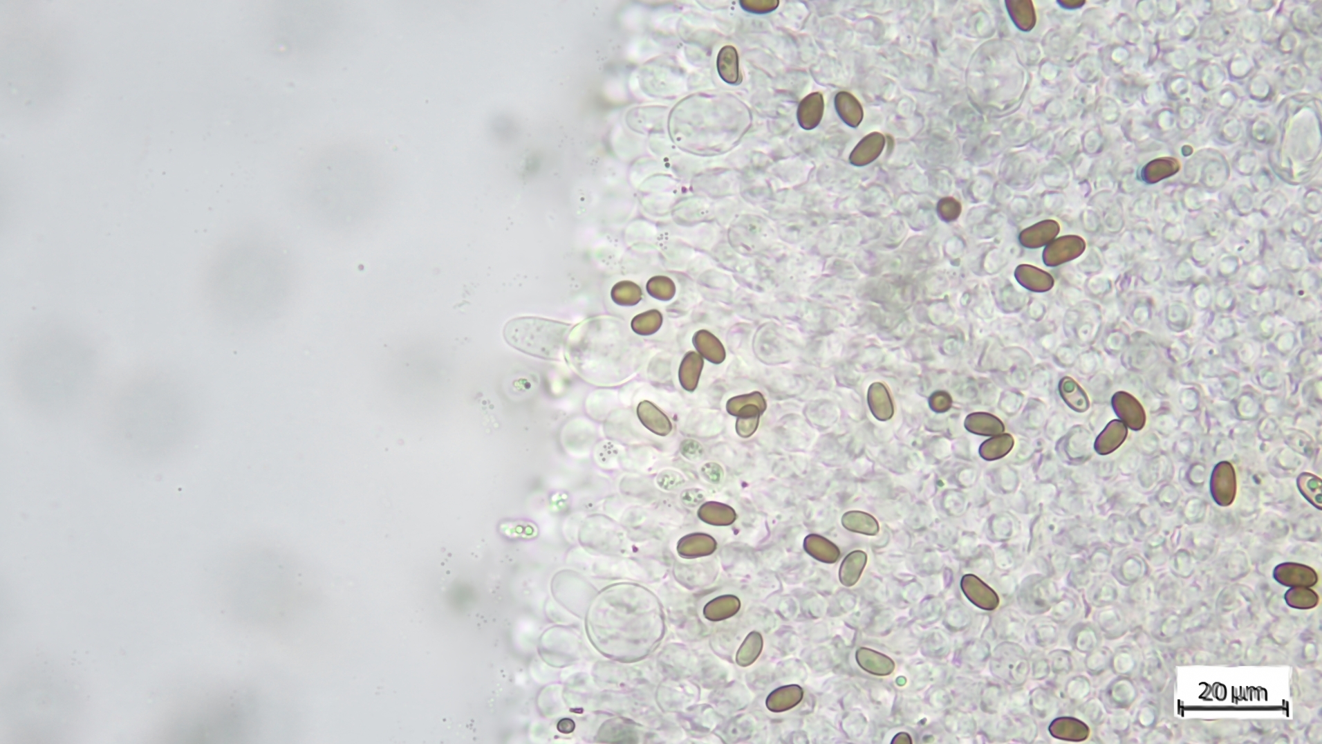 Sporen phaseoliform mit deutlichem KP, hier in KOH 3%: