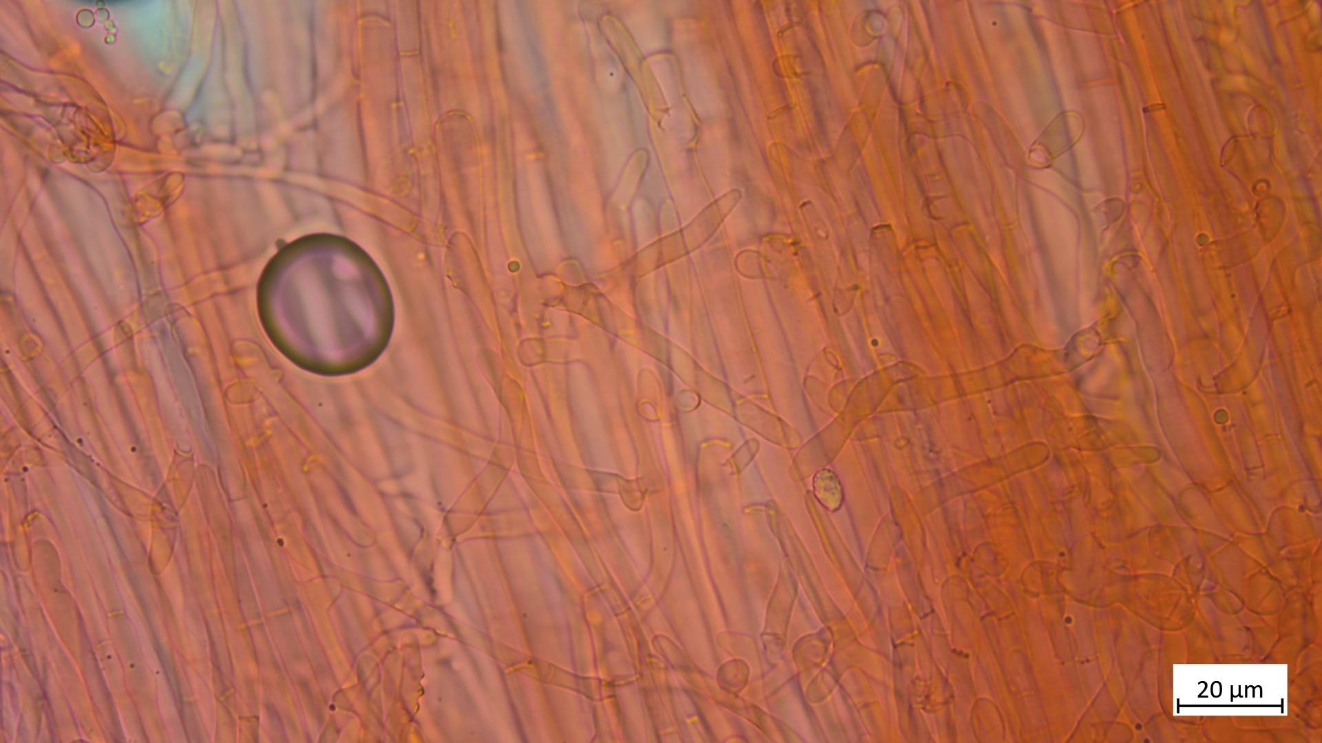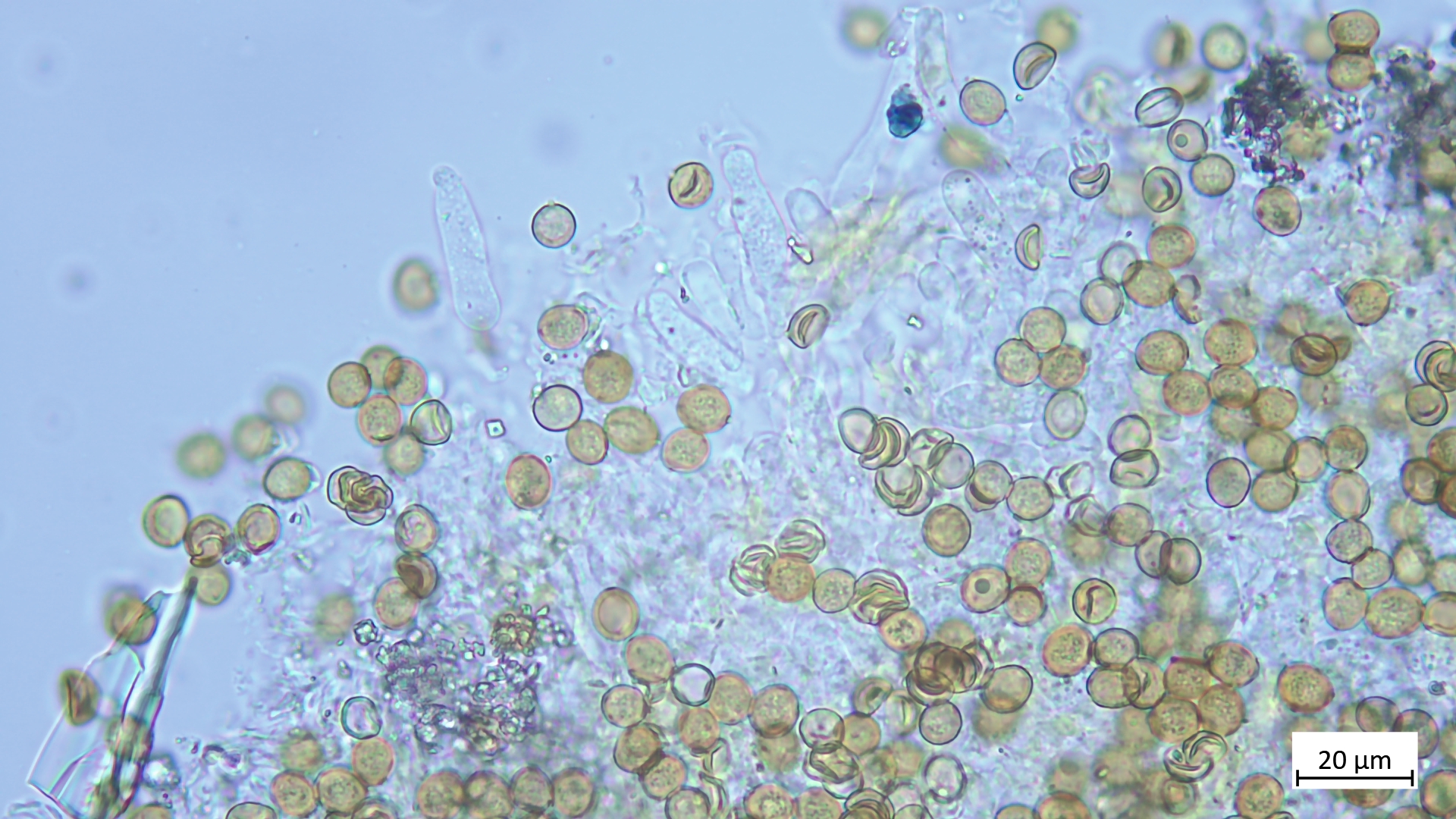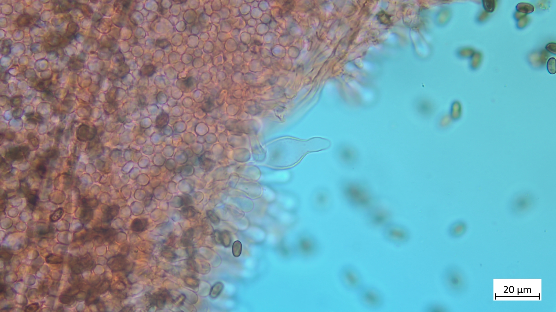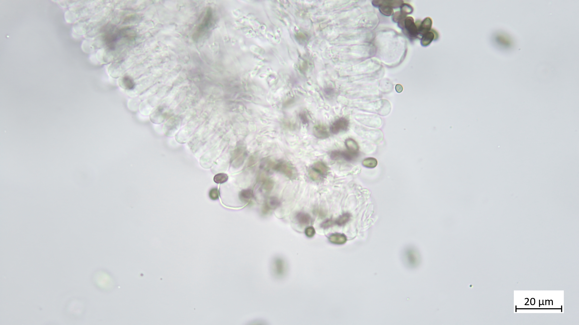 ... an Holz und recht dunkel mit schmalem Velumrand dachte ich erst an niveobadia. Die Pleurozystiden haben aber keinerlei Schleimkappen, so das ich das mal bei P.spadiceogrisea s.l. belasse. Mikromerkmale passen ja sonst zu beiden Arten.