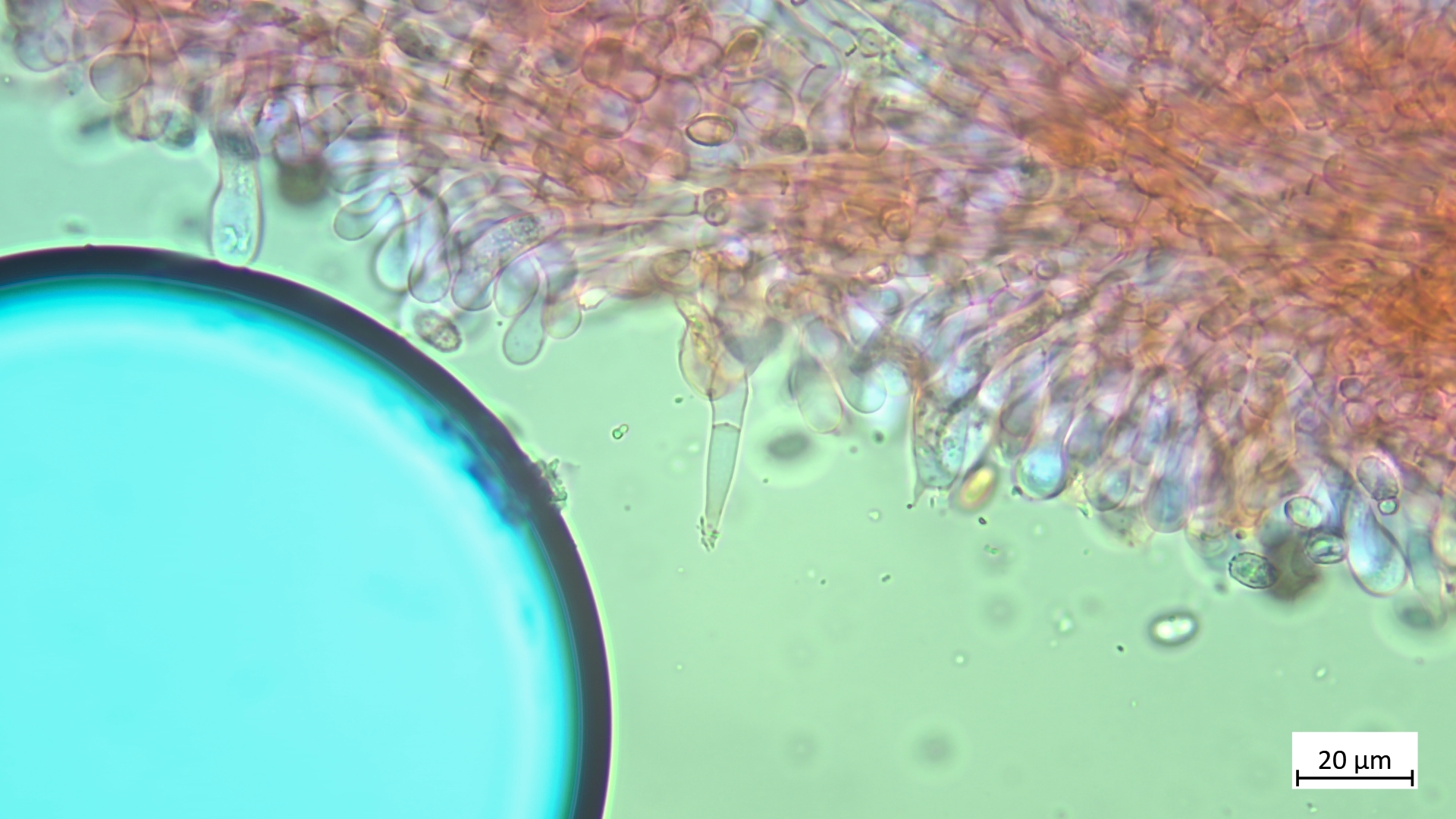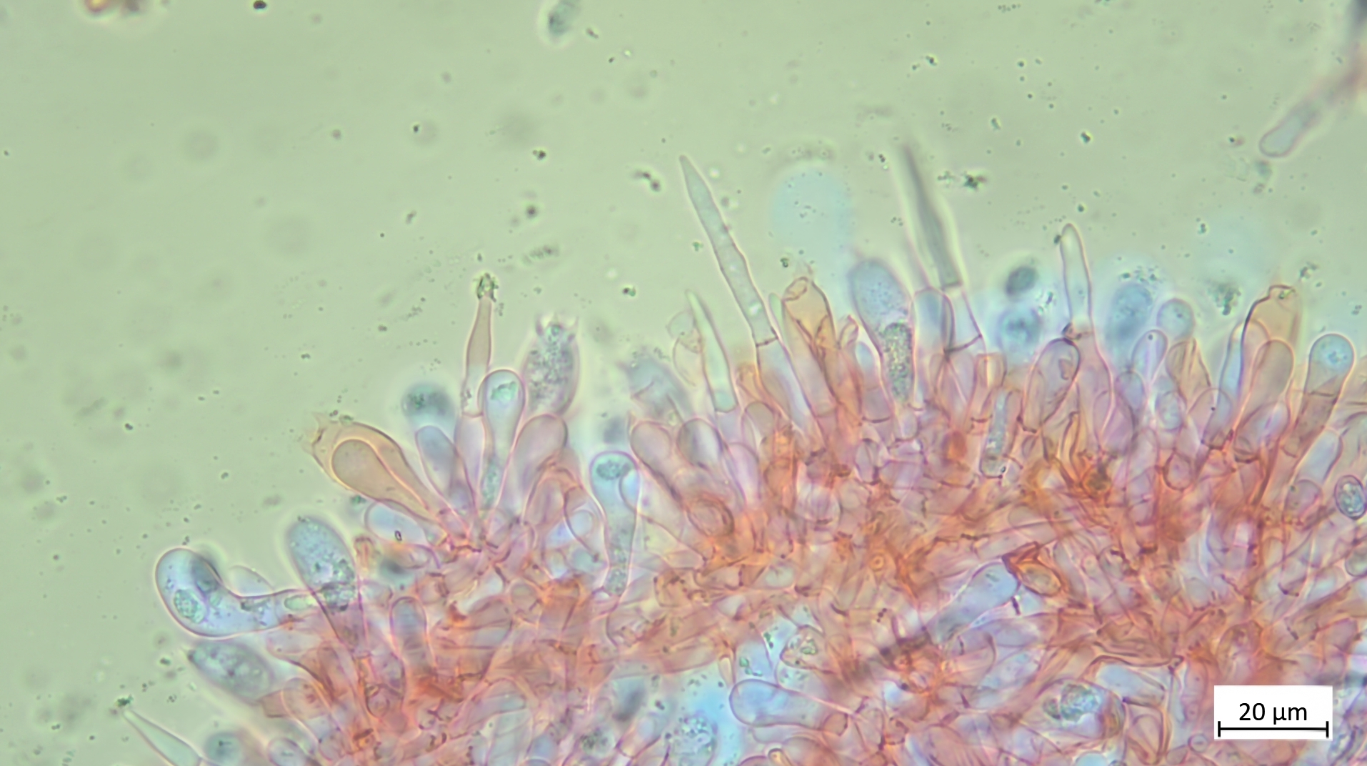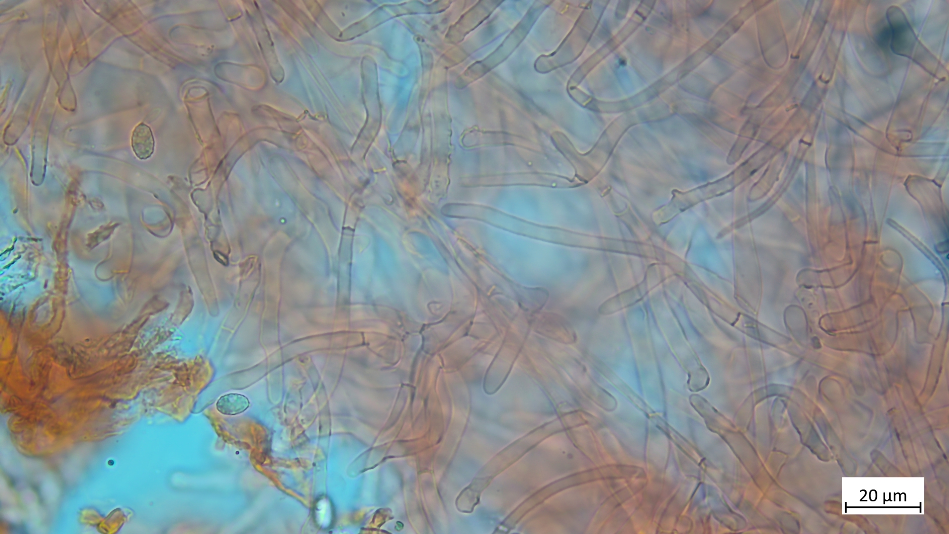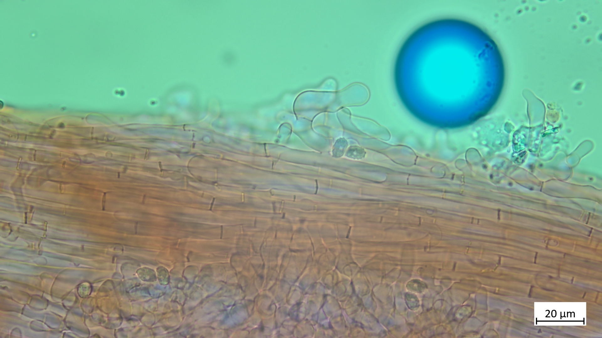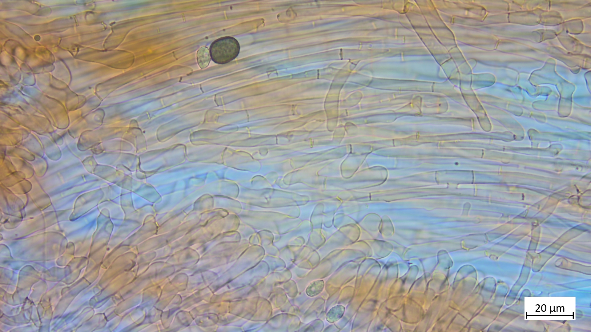 ... an Holz und recht dunkel mit schmalem Velumrand dachte ich erst an niveobadia. Die Pleurozystiden haben aber keinerlei Schleimkappen, so das ich das mal bei P.spadiceogrisea s.l. belasse. Mikromerkmale passen ja sonst zu beiden Arten.