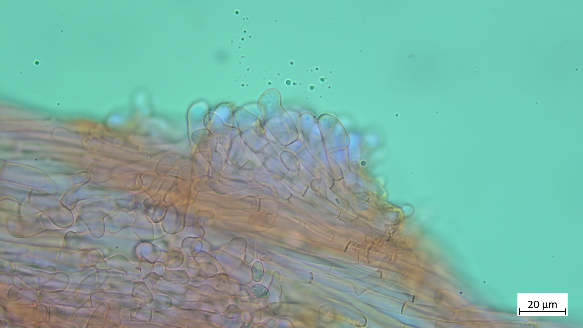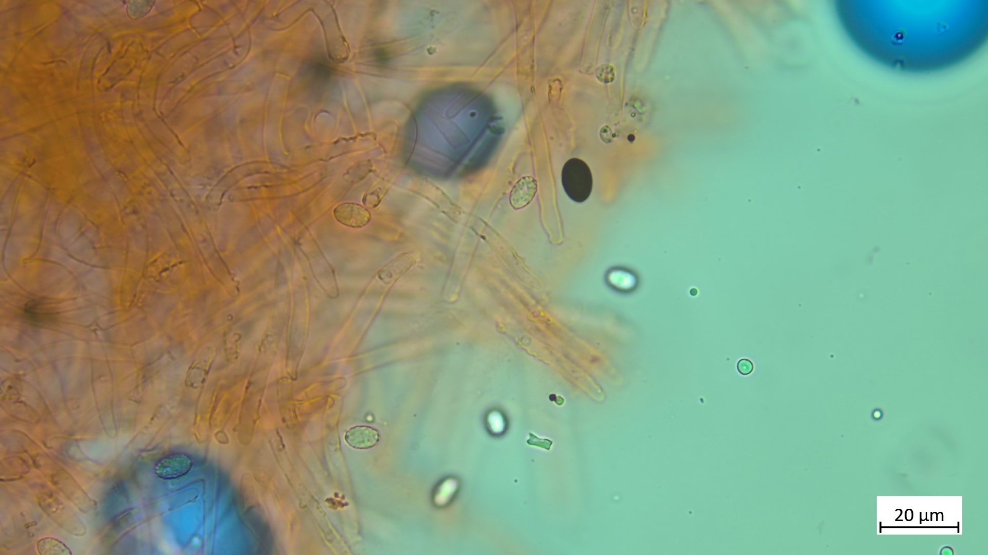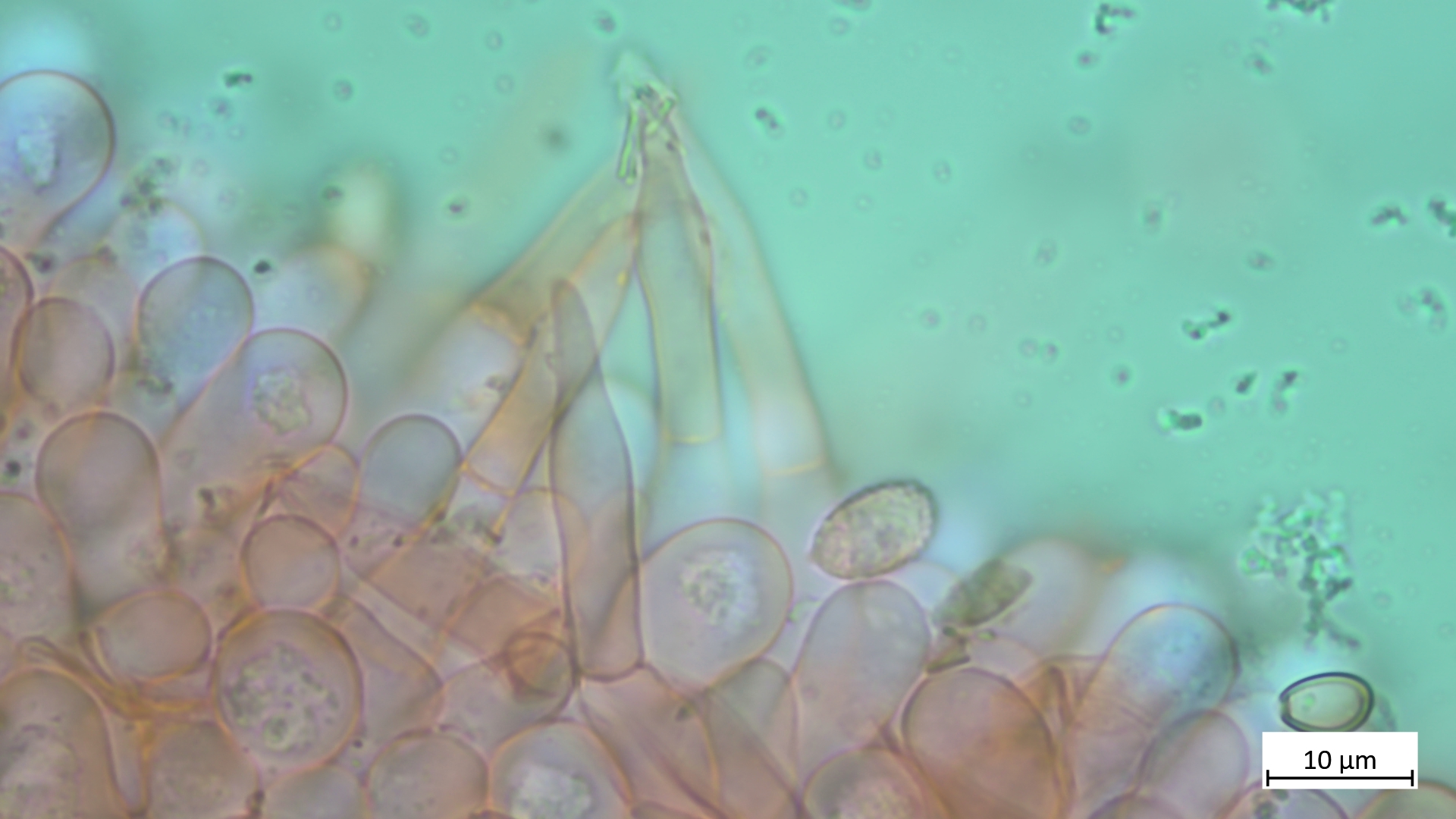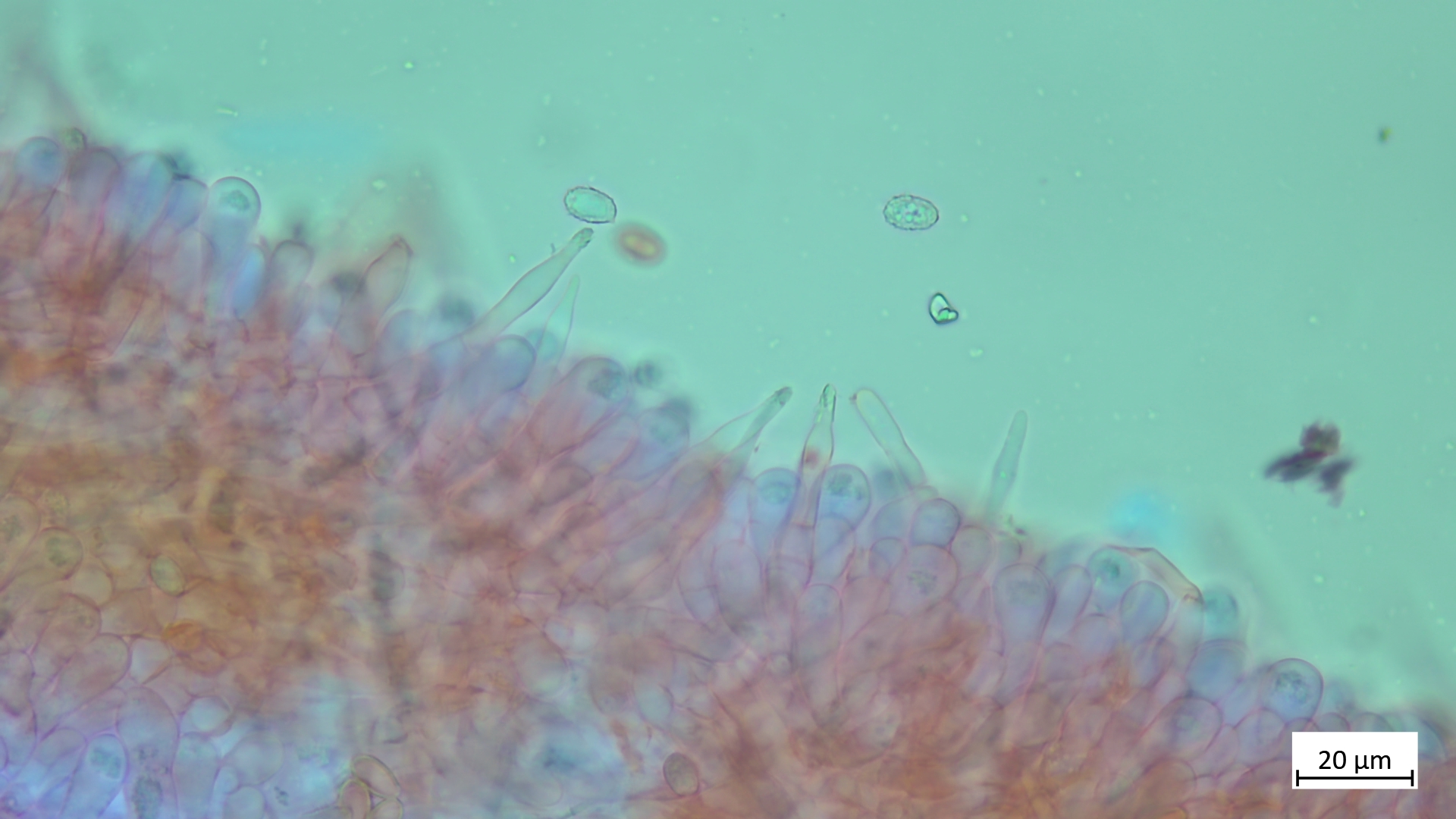 ... an Holz und recht dunkel mit schmalem Velumrand dachte ich erst an niveobadia. Die Pleurozystiden haben aber keinerlei Schleimkappen, so das ich das mal bei P.spadiceogrisea s.l. belasse. Mikromerkmale passen ja sonst zu beiden Arten.