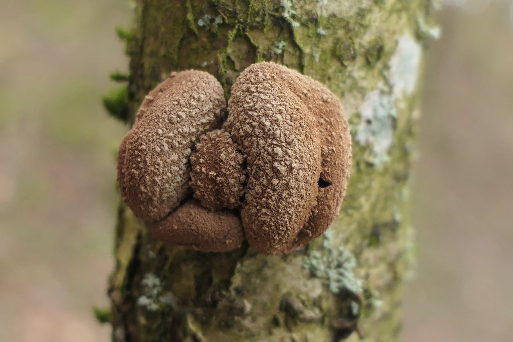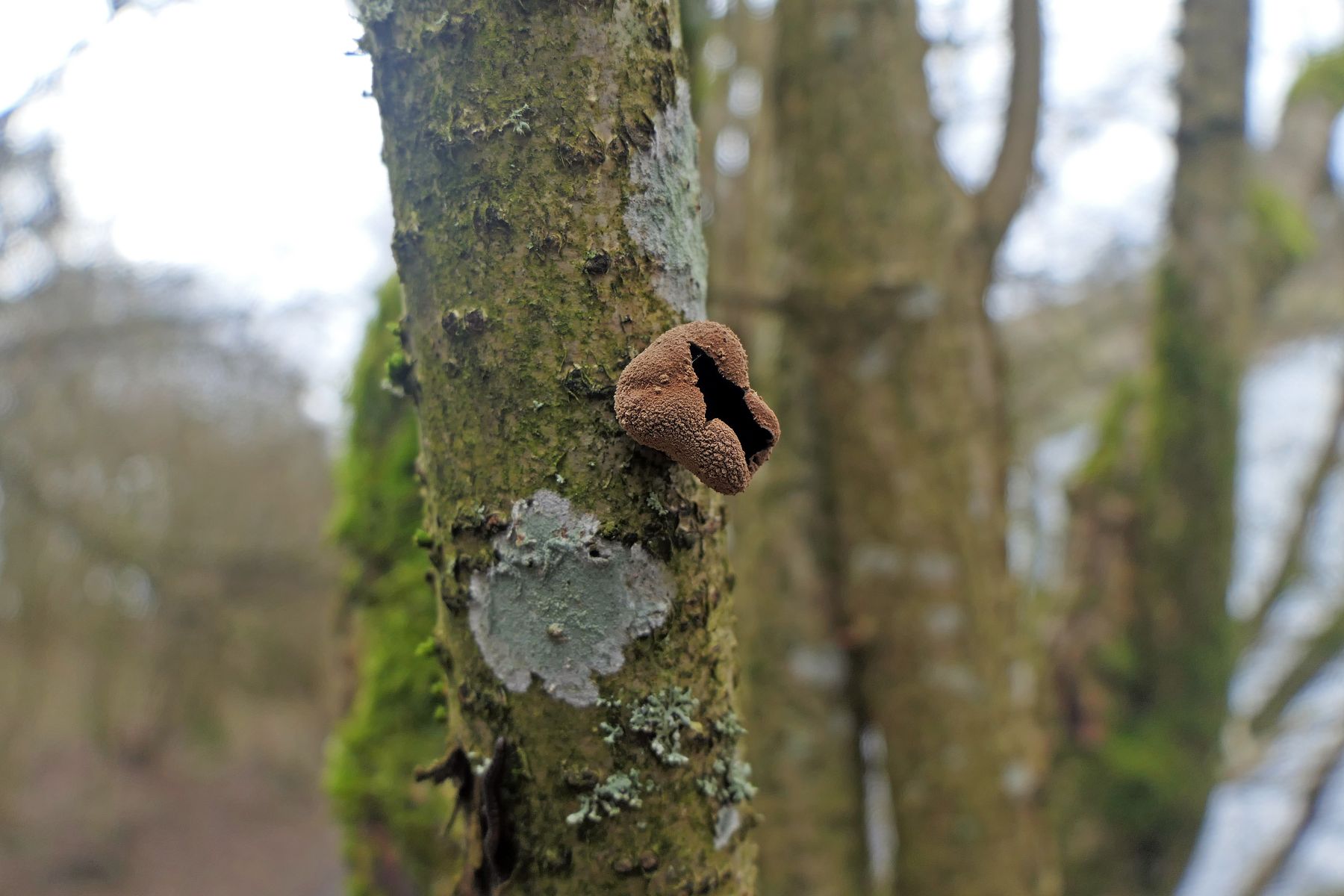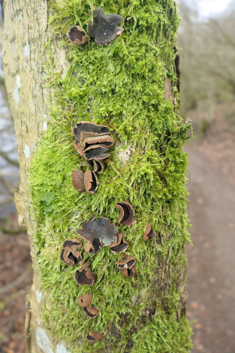 Weiter ging es mit einem spannenden Erstfund für mich, den ich erst gar nicht richtig einordnen konnte. Und wie es so ist, wenn man in der Gruppe unterwegs ist habe ich dann leider auch keine gescheiten Bilder vom Fundort gemacht vom Einzelfruchtkörper, worüber ich mich im Nachhinein ärgere. Dennoch zeige ich den für mich seltenen Fund dennoch gerne: