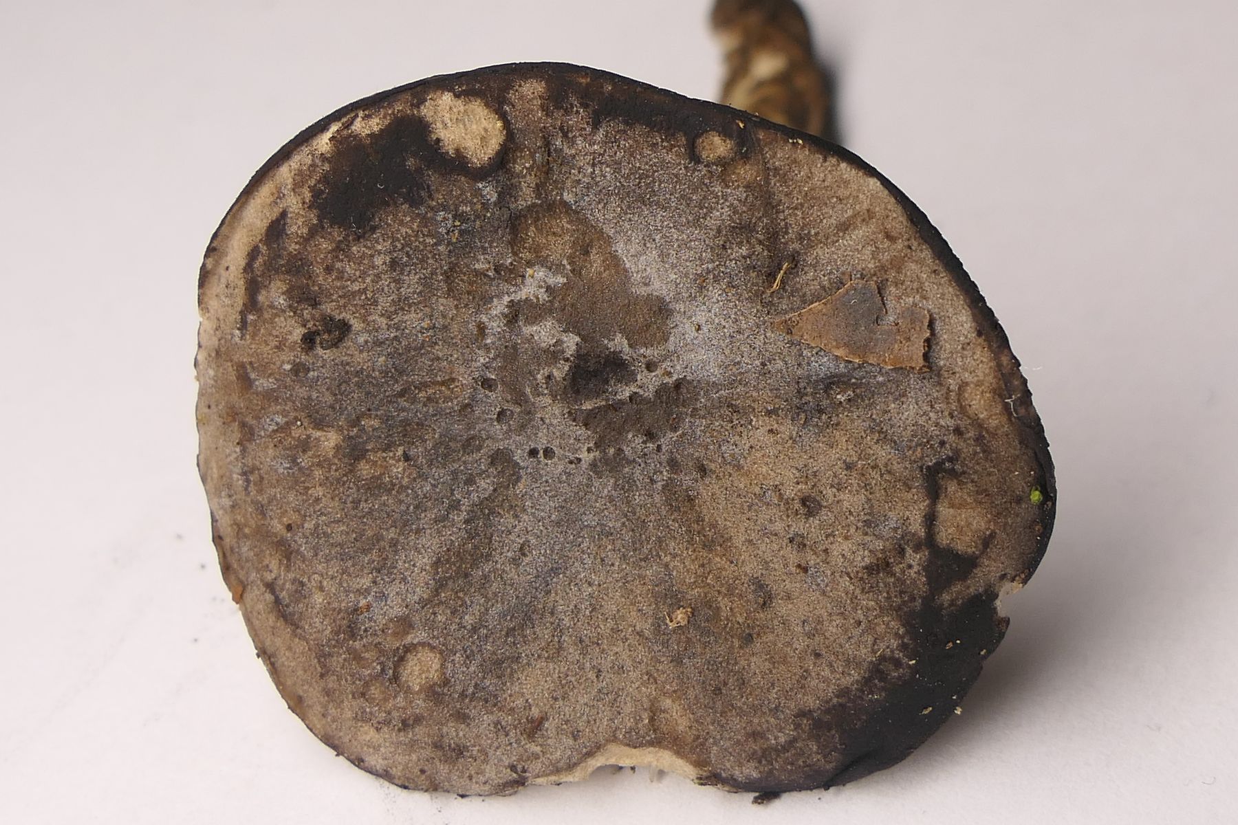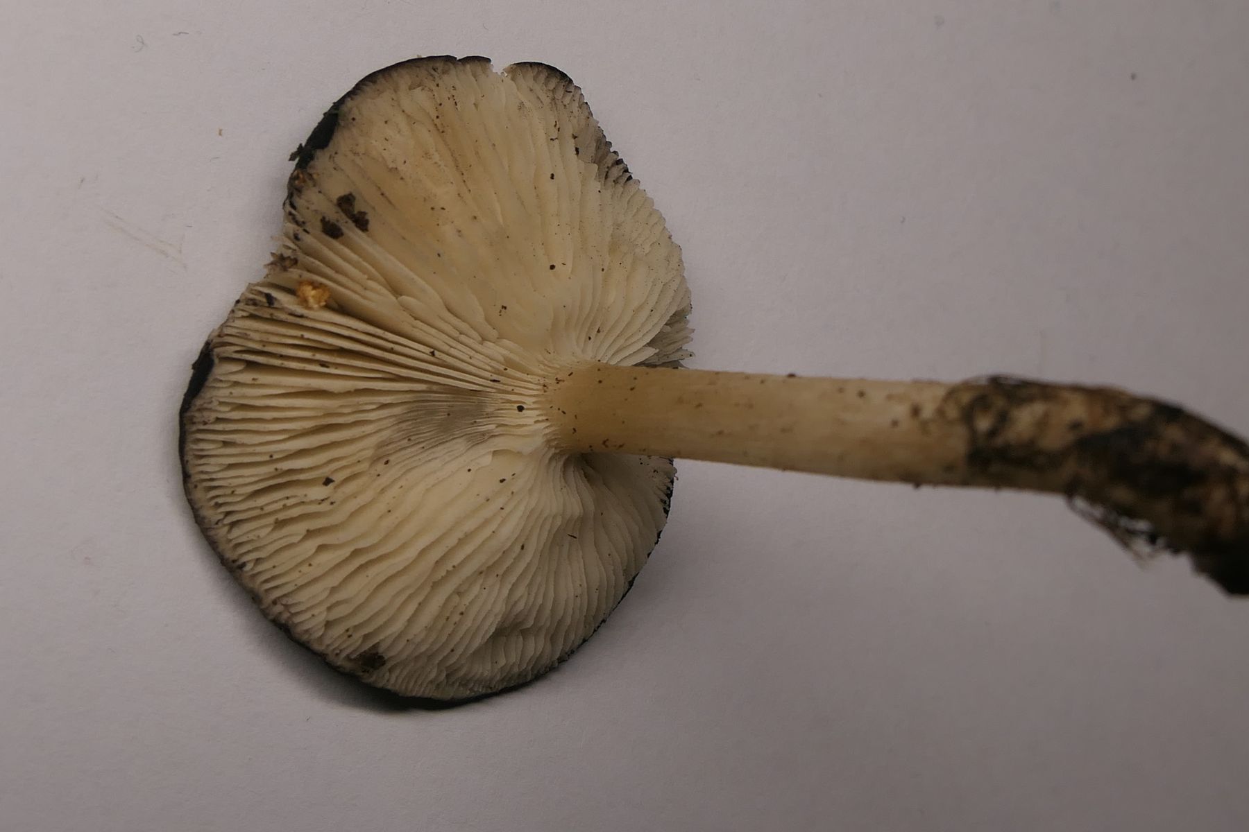 Kam im Feld eher grau daher, was im Kunstlicht (Studiobild) leider nicht gut rüberkommt. Hut aber deutlich bereift, war direkt sehr auffällig. Stiel creme, weiß überfasert. Lamellen ausgebuchtet angewachsen. Dachte zuerst irgendwie an einen Erdritterling. Konnte aber insgesamt nicht passen. Aus der Gruppe kam schnell der entscheidende Hinweis auf Melanoleuca und dann war der Fund auch schnell bestimmt: