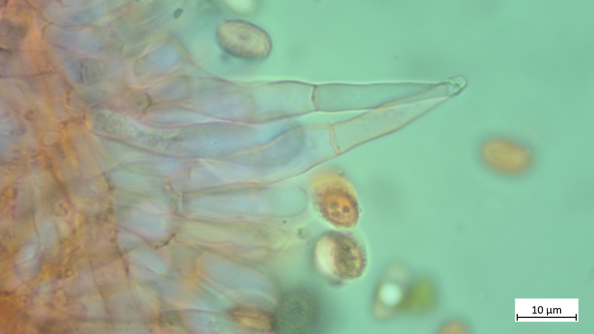 Typische Brennhaarzystiden vom Exscissa-Typ (vgl. Münzmay):