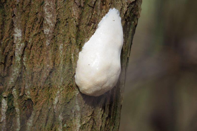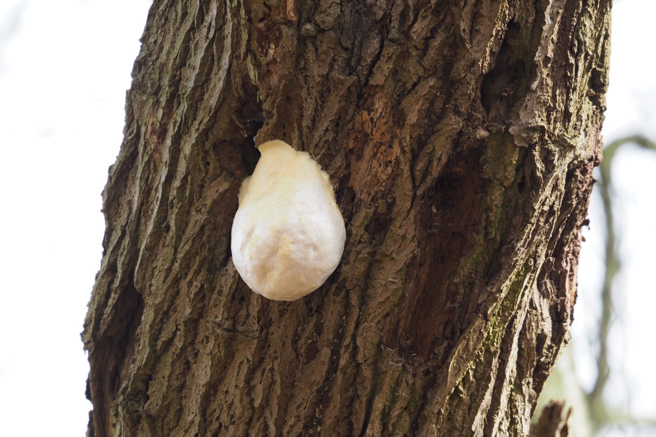 Ein paar Schritte weiter ein weiterer ziemlich großer Stäublings-Schleimpilz an dickem Weidenstamm