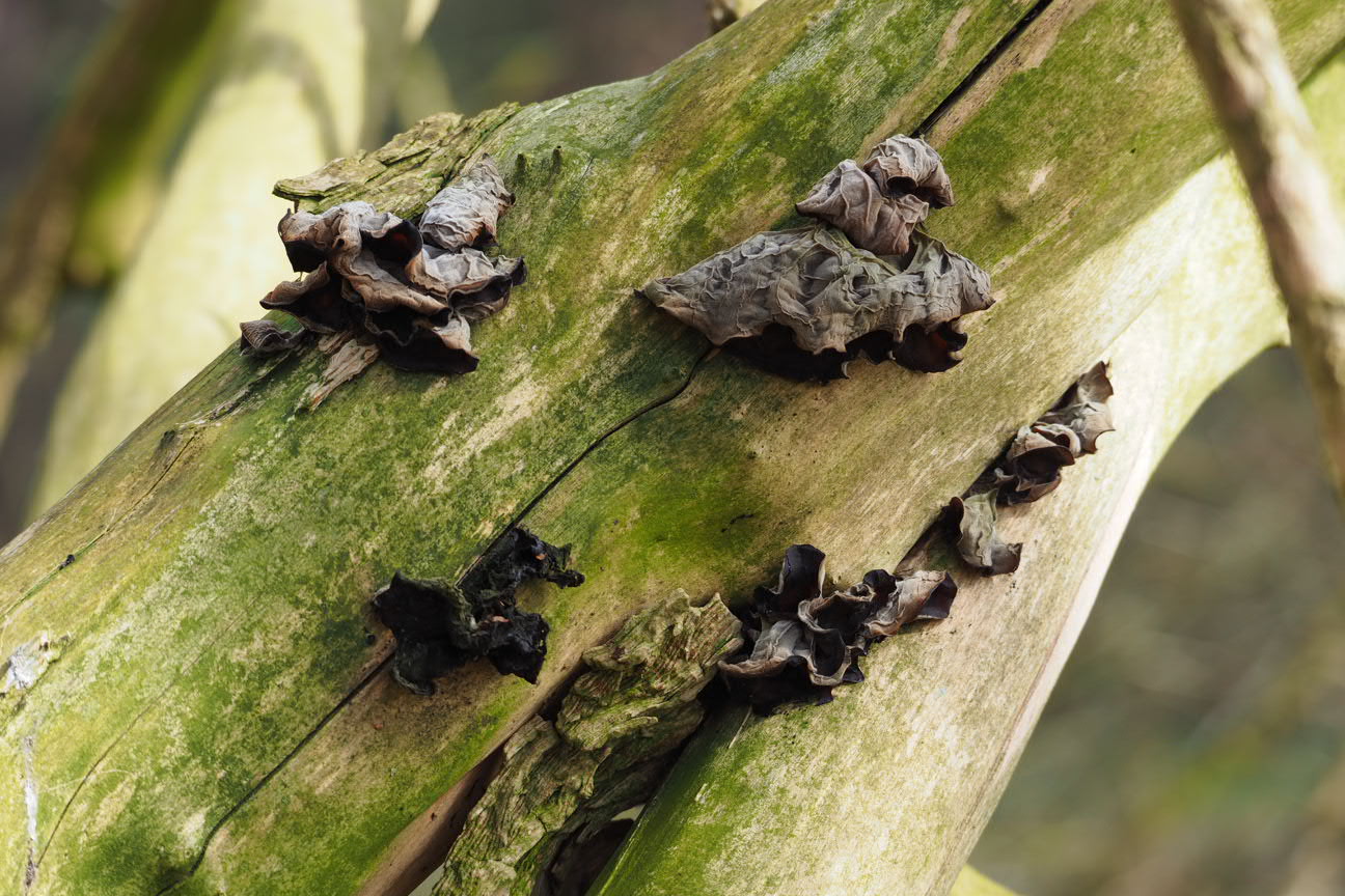 Bei weiterer Suche zeigten sich an Holunder alte aber noch weiche Judasohren Auricularia auricula-judae