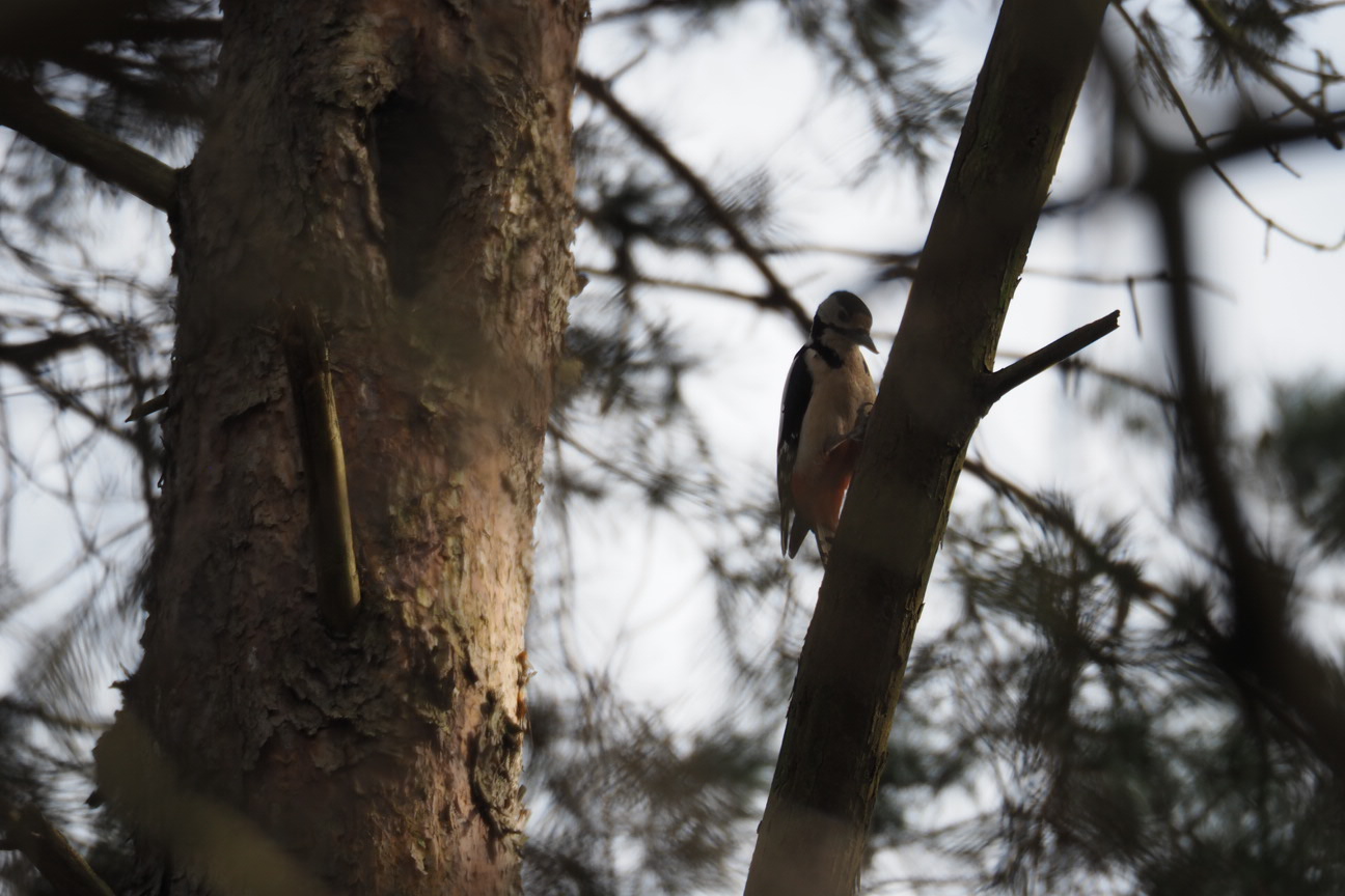 Bei der Rückkehr zum Auto klopfte über mir der Buntspecht