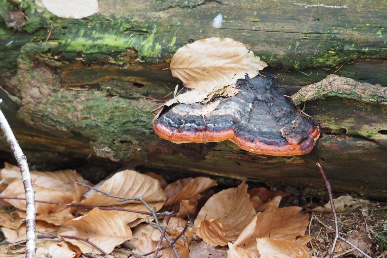 An liegendem Nadelholzstamm leuchtete mir der Rotrandige Baumschwamm Fomitopsis pinicola entgegen