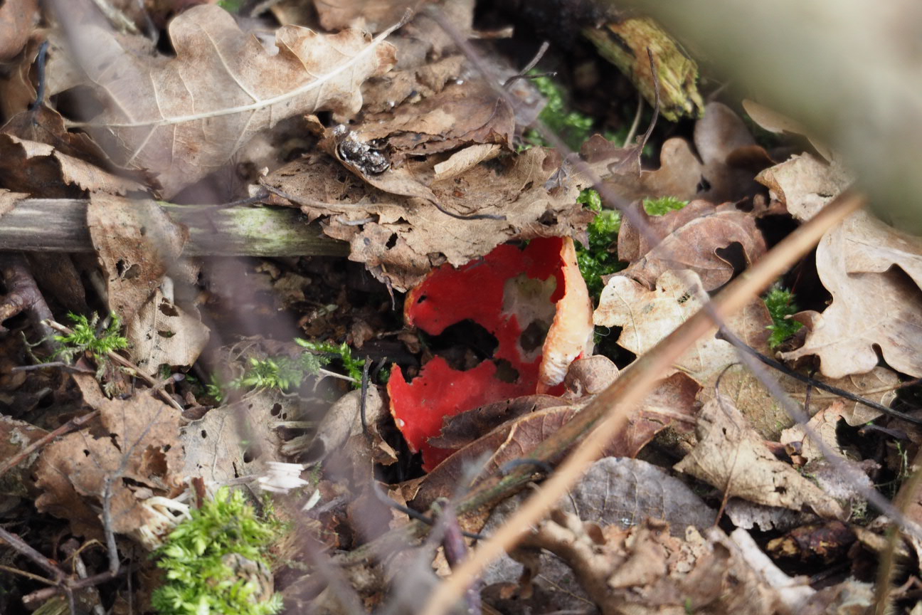 Und dann für mich das Highlight des Jahres, mein Perser (persönlicher Erstfund): Einer der roten Prachtbecherlinge Sarcoscypha.