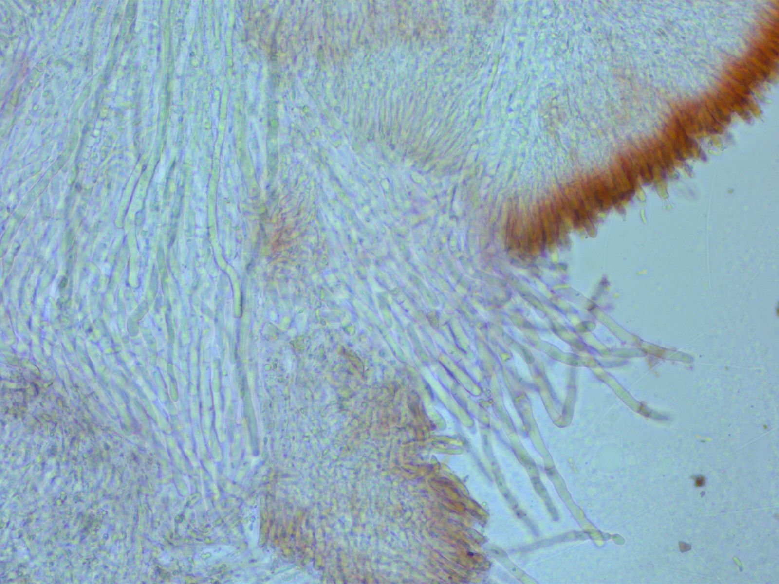 Lamellenschneide mehr oder weniger steril mit zahlreichen zylindrisch-kopfigen Zystiden.