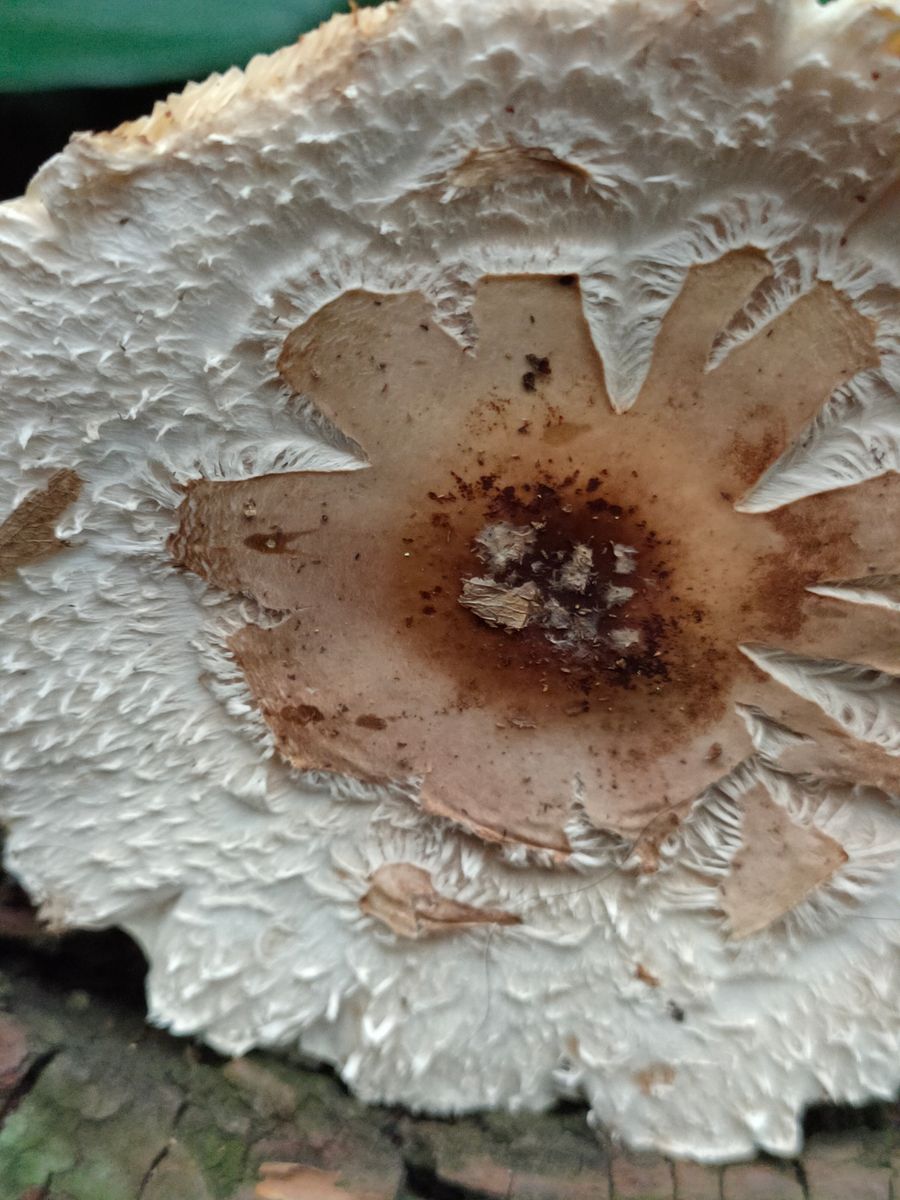 Damit ist es das vermutete Chlorophyllum brunneum. Leider also nix Exotisches, aber trotzdem interessant.