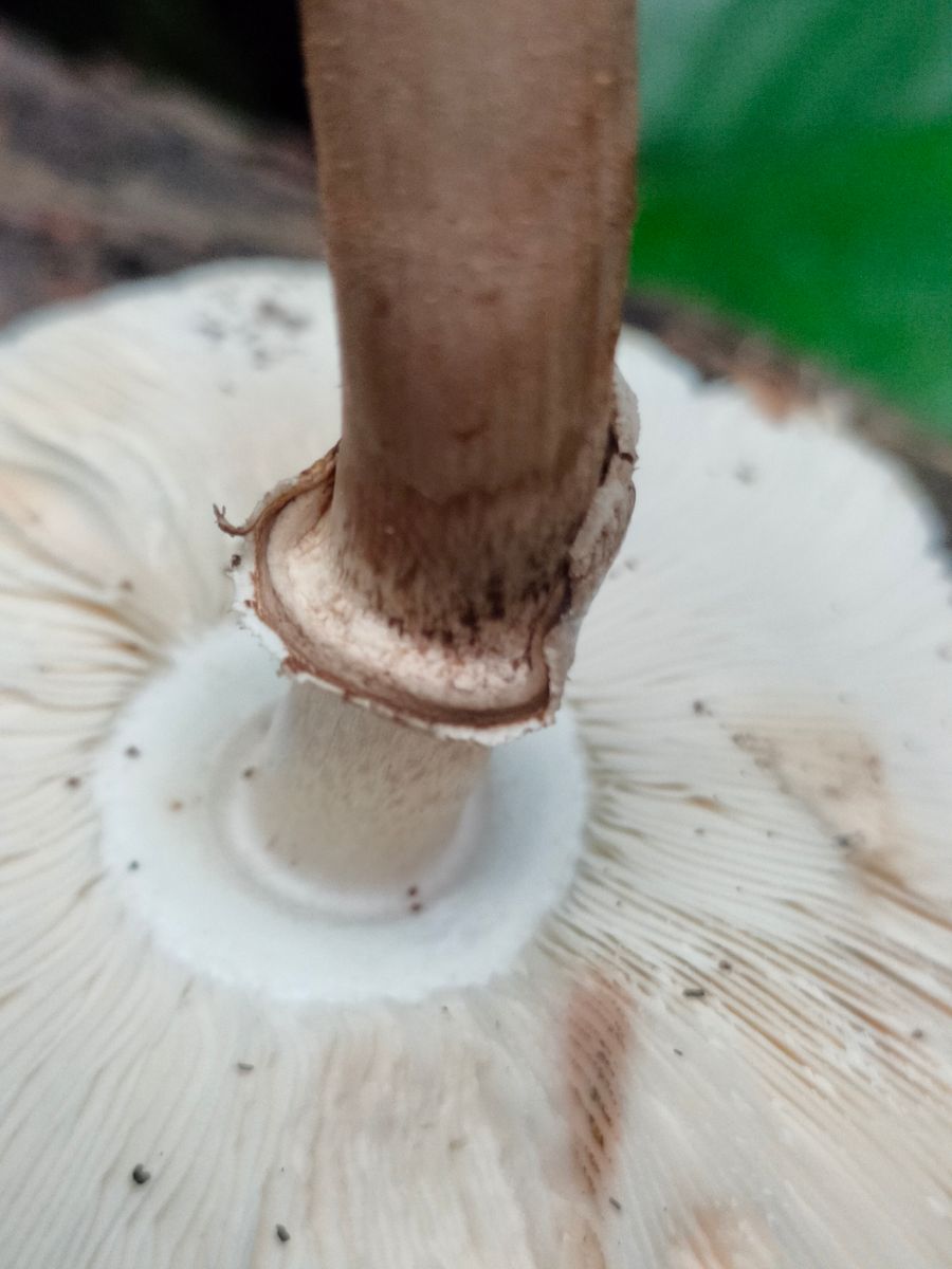 Der einfache dünnhäutige würde fùr einen Ackerling oder Zitzen Riesenschirnling sprechen. Der Ring ist nur sehr schwer vom Stiel zu verschieben. Der Hut zeigt aus meiner Sicht keine Erhebung, die für einen Zitzenschirmling sprechen könnte.