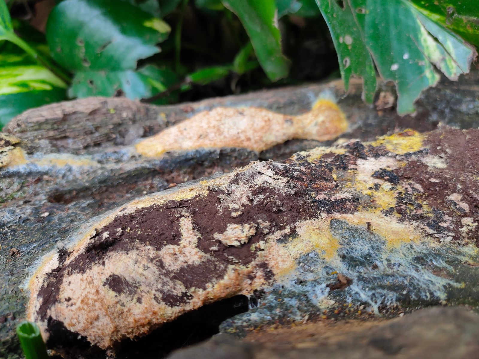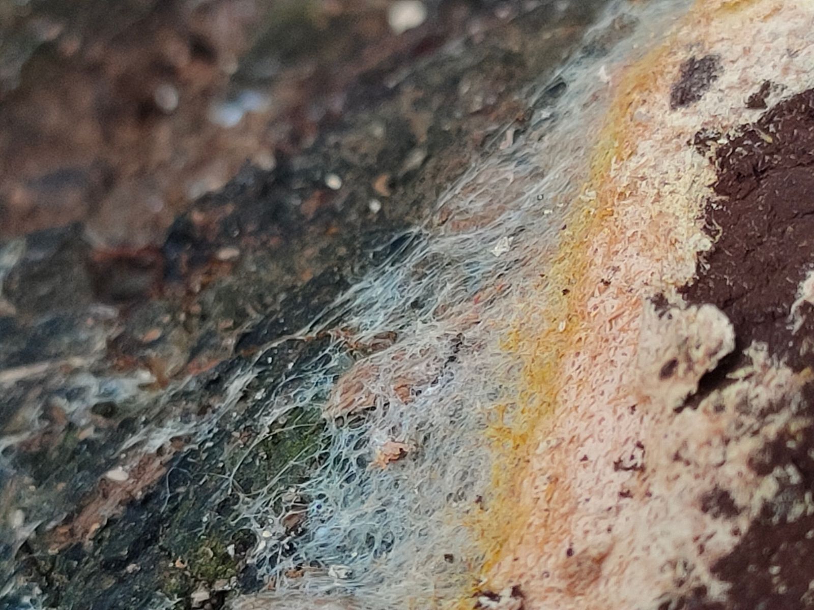 die letzten 3 Bilder zeigen einen Schleimpilz, der sein Sporen gebildet hat, könnte ein Stäublingsschlleimpilz gewesen sein.