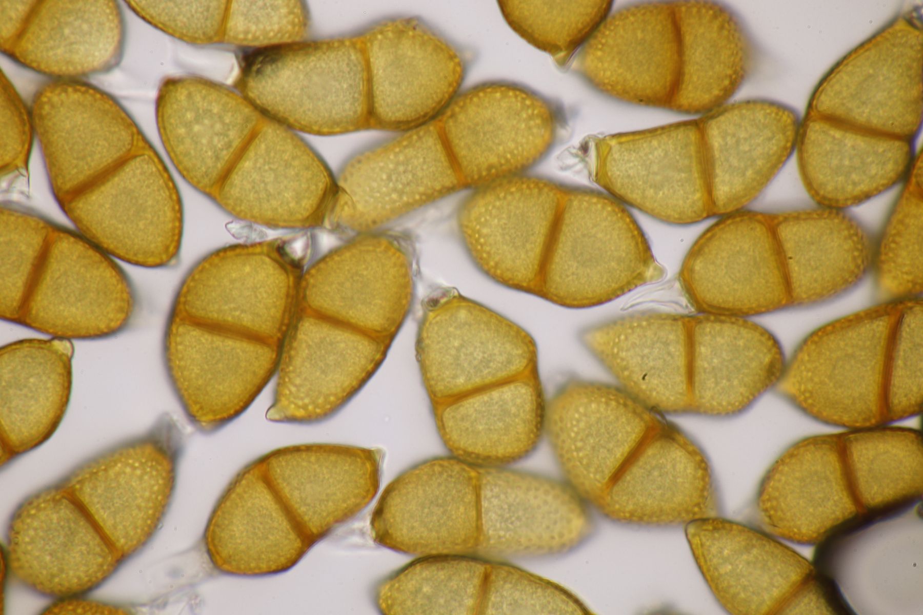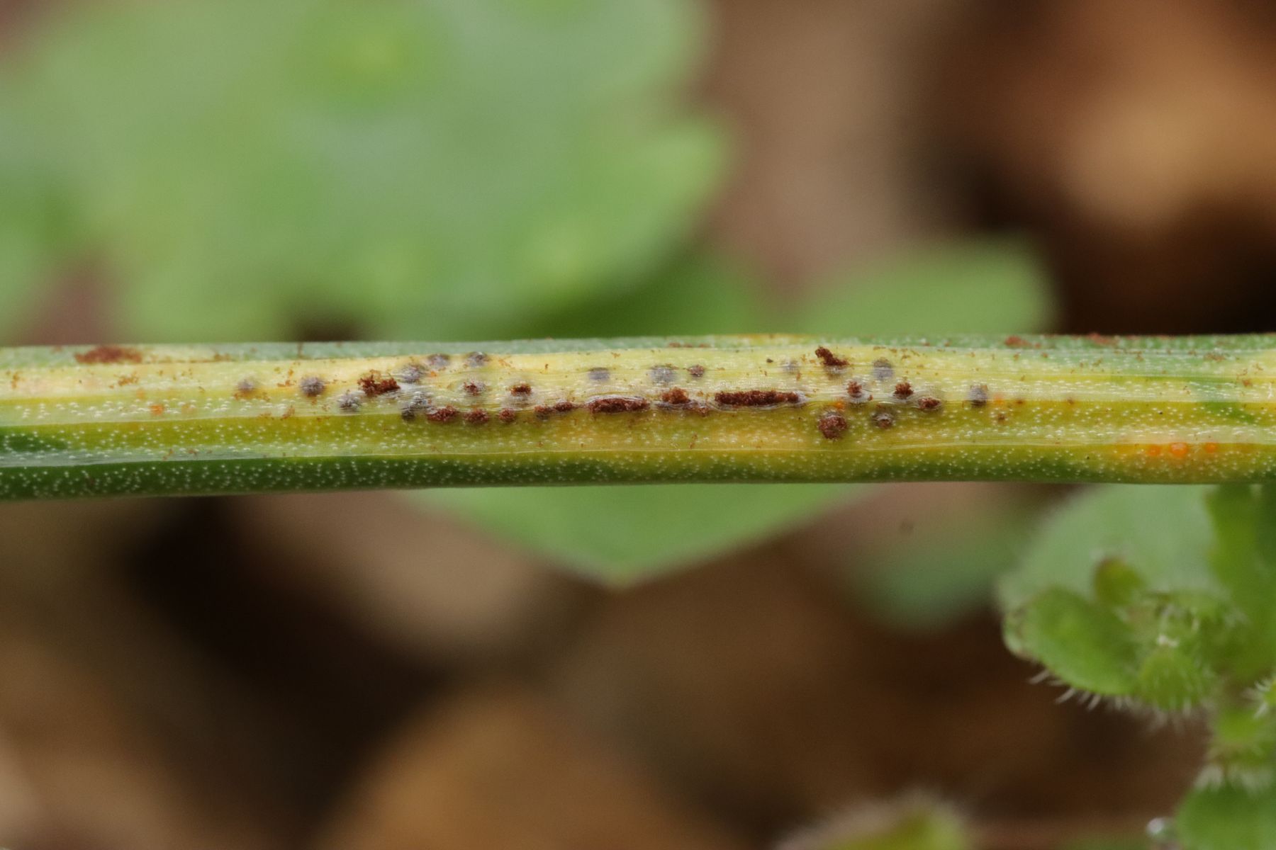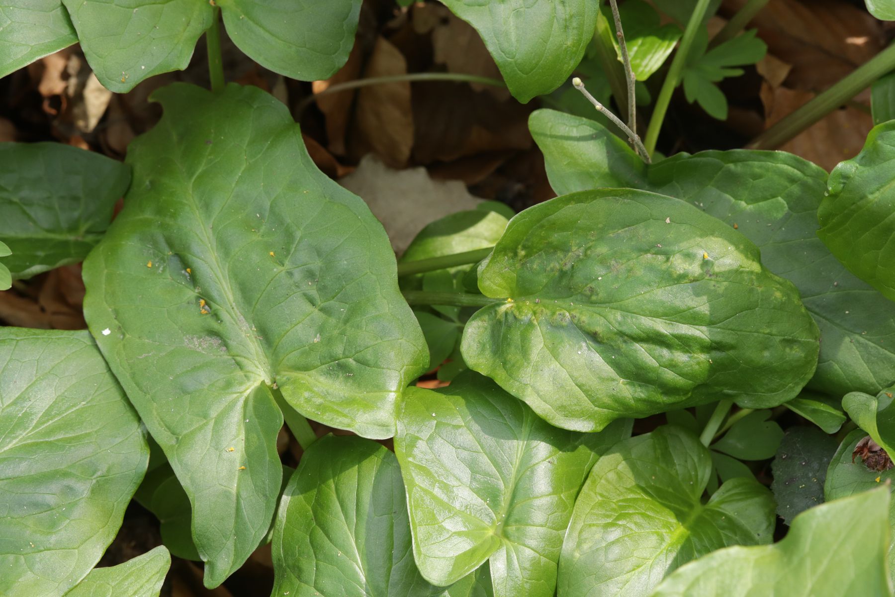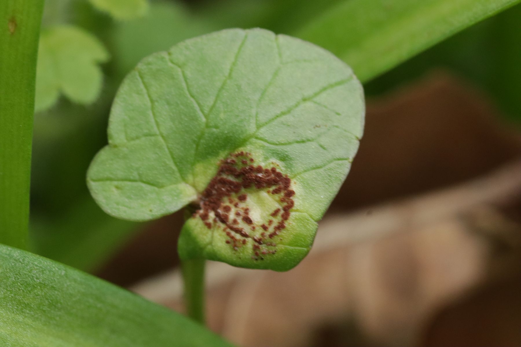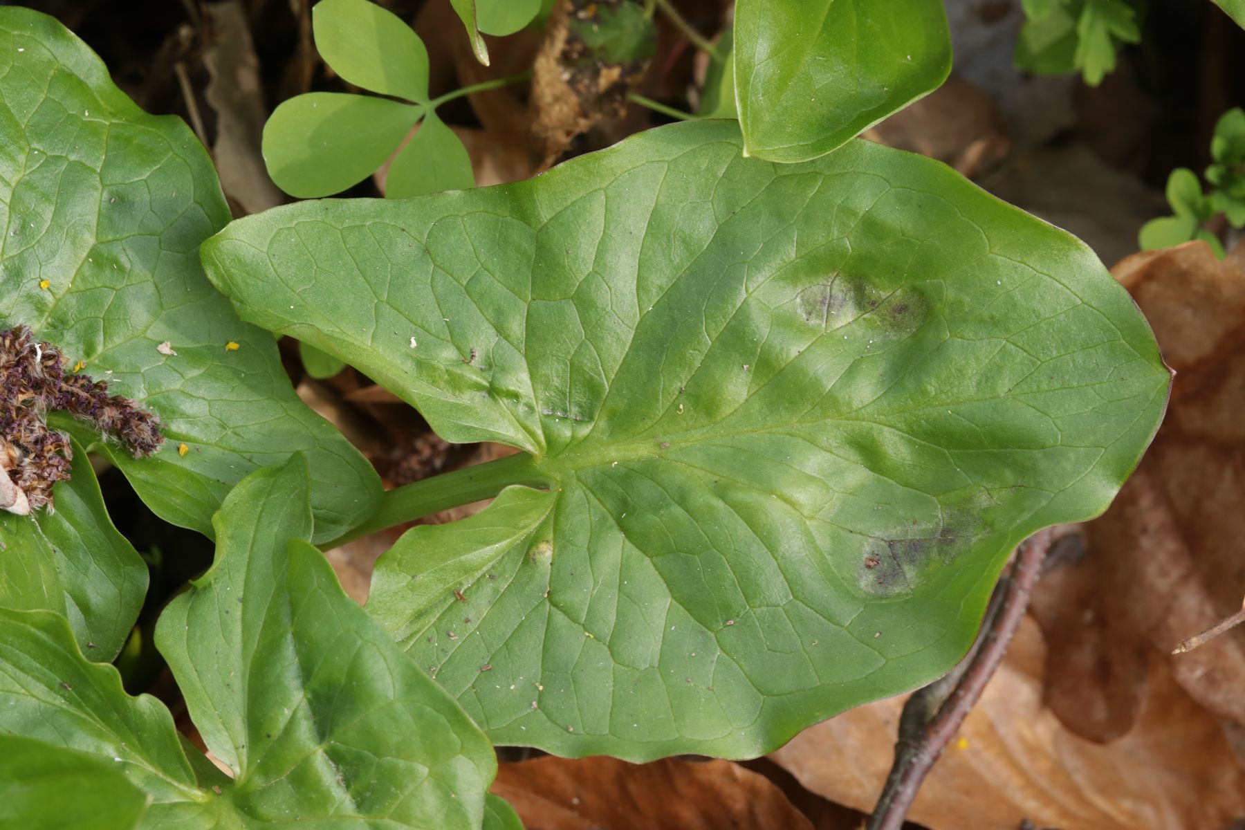 2. Melanustilospora ari ex Arum maculatum. Das war ein härteres Stück Arbeit. Der Fund war bei inaturalist im Botanischen Garten verzeichnet. Ich habe die markierte Stelle intensiv abgesucht: Nichts. Dann in der weiteren Umgebung des Fundorts: Nichts. Schließlich fiel mir auf, daß die Fotos bei inaturalist auch Buchenblätter zeigten. Also mußte man unter Buchen suchen. Und in der Tat, da wurde ich dann auch direkt fündig. Dann der nächste Schock: Ich hatte morgens etwas in Eile meine Kamera eingesteckt und nicht gesehen, daß die Speicherkarte noch im Rucksack steckte. Also am nächsten Tag in der Mittagspause noch einmal schnell in den Botanischen Garten und das Objekt der Begierde ausgiebig abgelichtet: