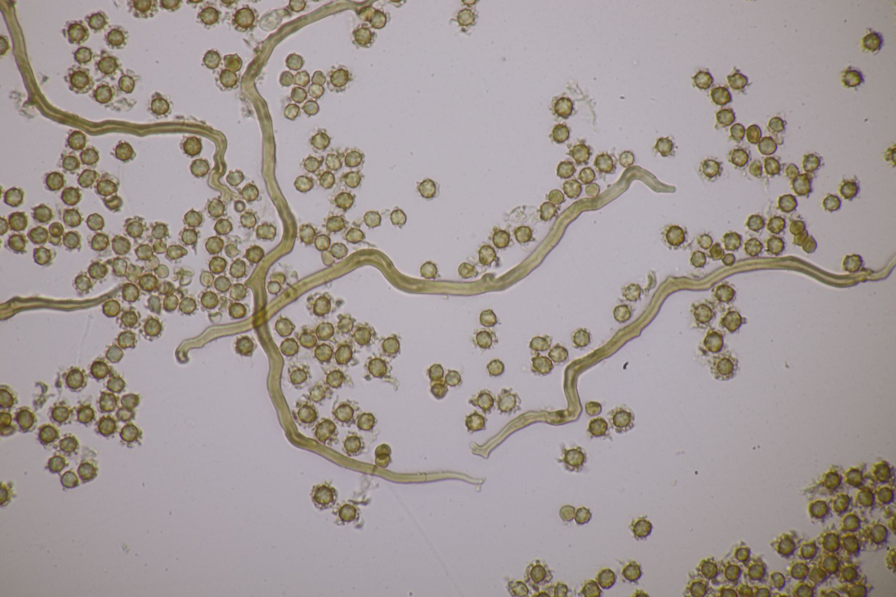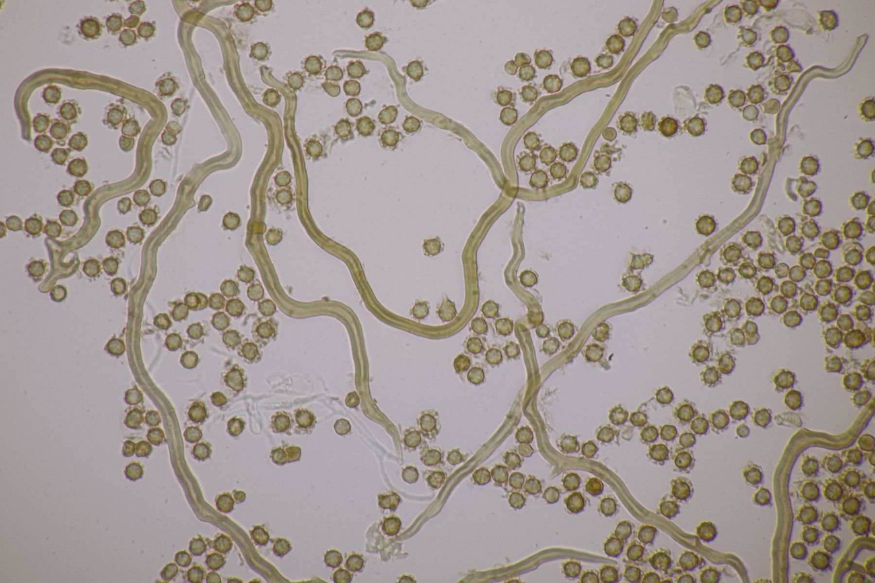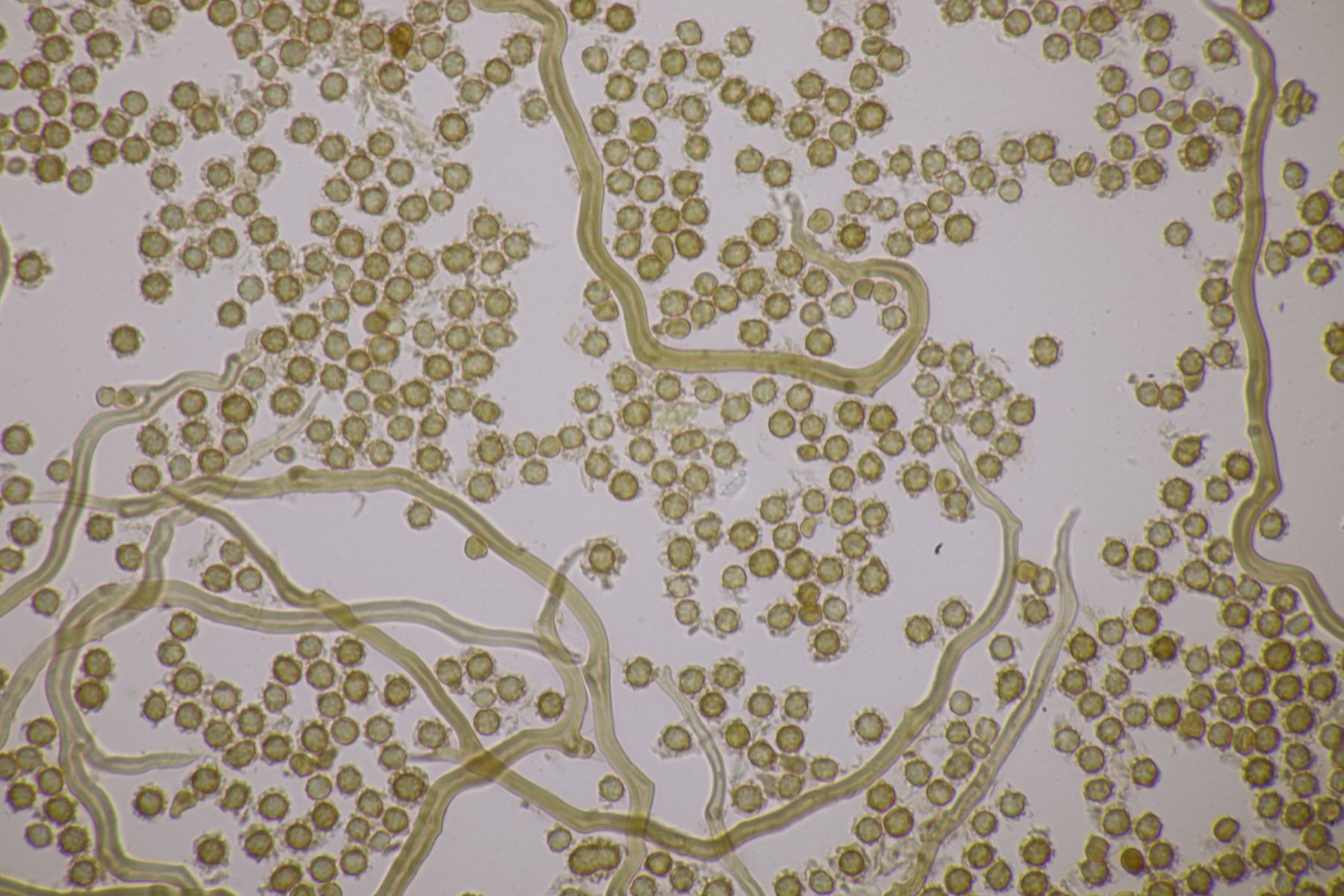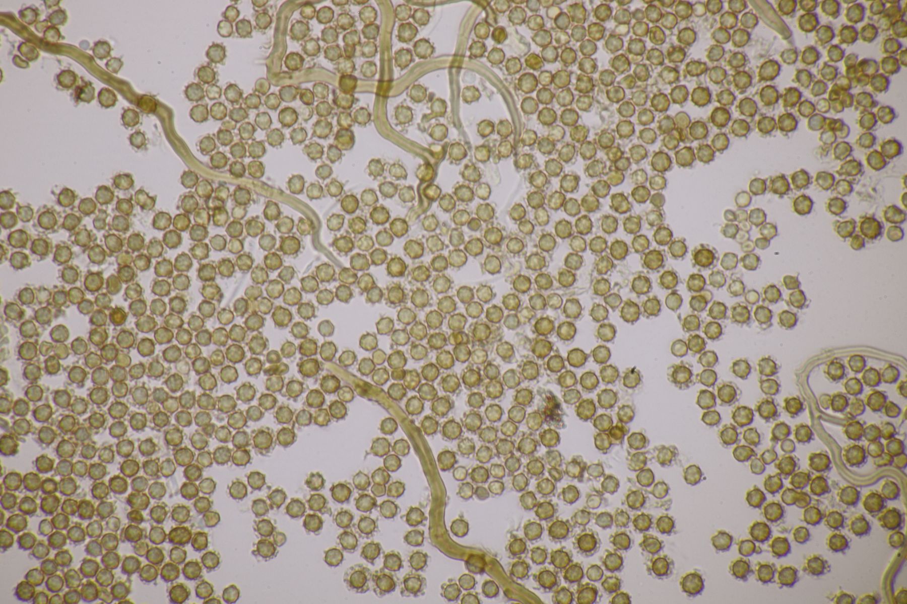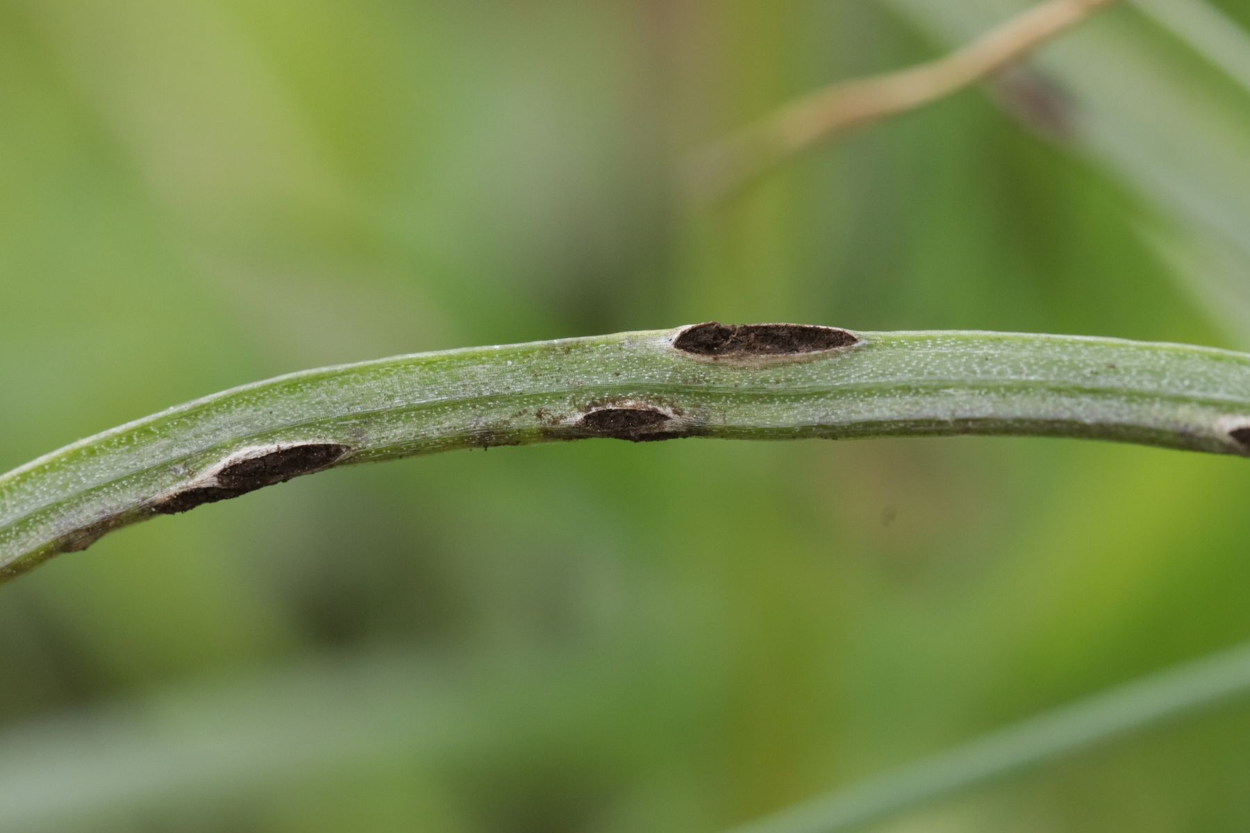 2. Melanustilospora ari ex Arum maculatum. Das war ein härteres Stück Arbeit. Der Fund war bei inaturalist im Botanischen Garten verzeichnet. Ich habe die markierte Stelle intensiv abgesucht: Nichts. Dann in der weiteren Umgebung des Fundorts: Nichts. Schließlich fiel mir auf, daß die Fotos bei inaturalist auch Buchenblätter zeigten. Also mußte man unter Buchen suchen. Und in der Tat, da wurde ich dann auch direkt fündig. Dann der nächste Schock: Ich hatte morgens etwas in Eile meine Kamera eingesteckt und nicht gesehen, daß die Speicherkarte noch im Rucksack steckte. Also am nächsten Tag in der Mittagspause noch einmal schnell in den Botanischen Garten und das Objekt der Begierde ausgiebig abgelichtet: