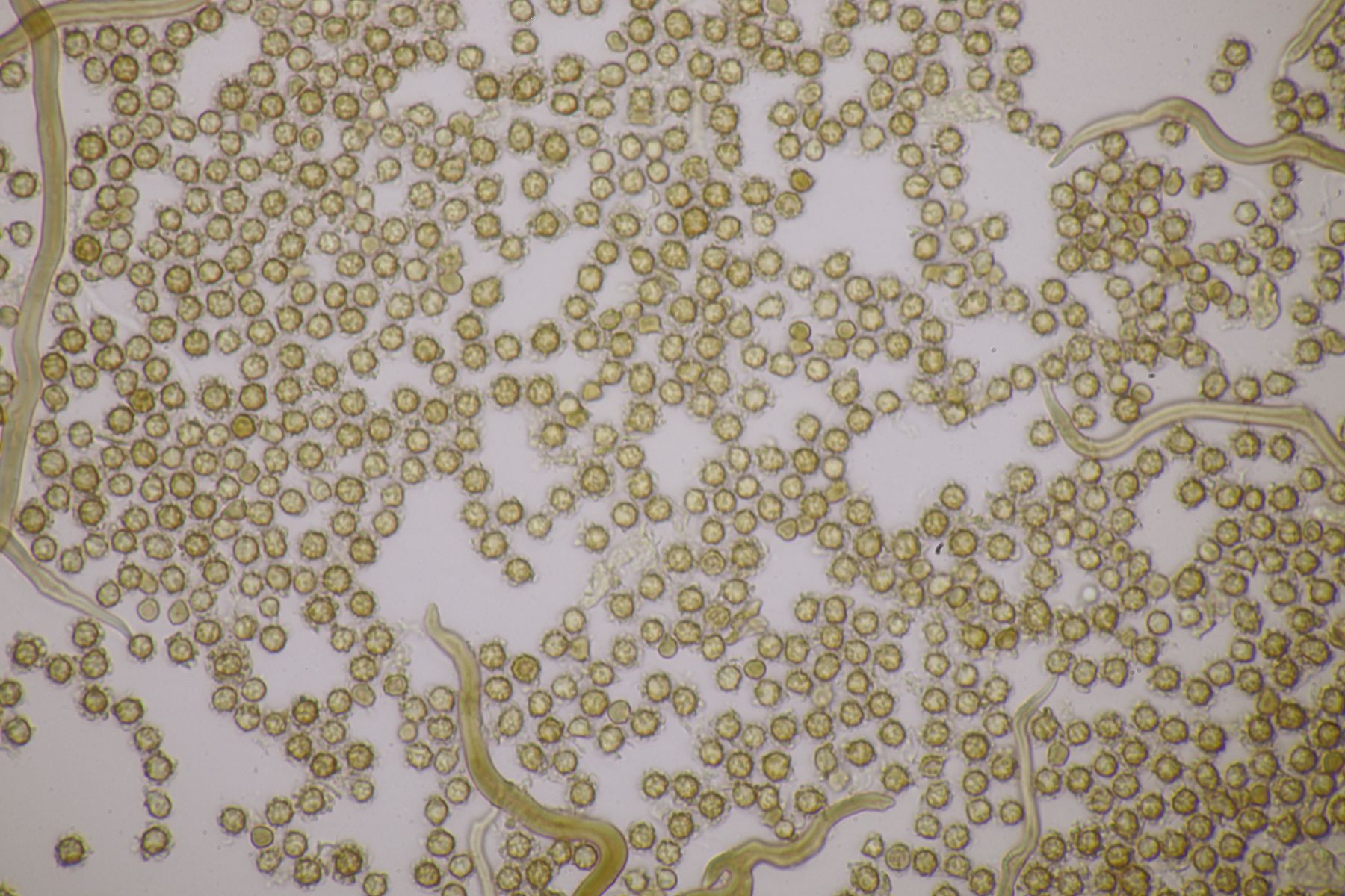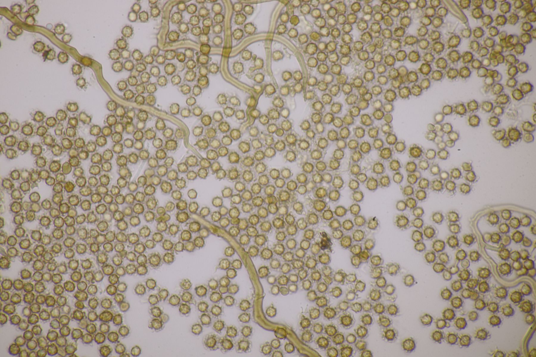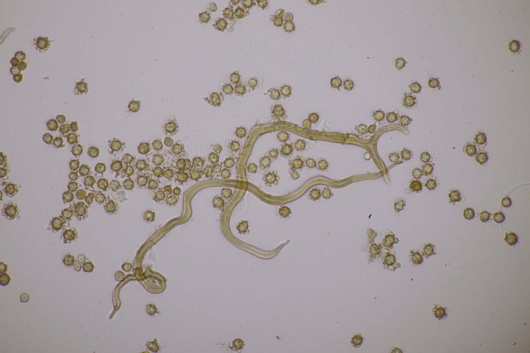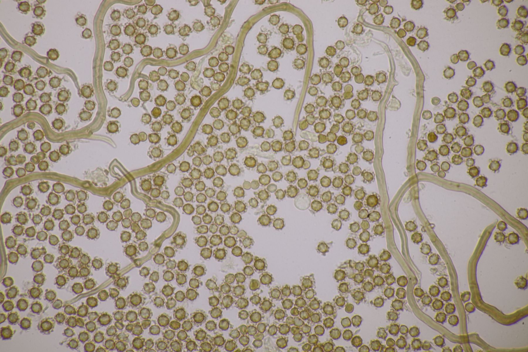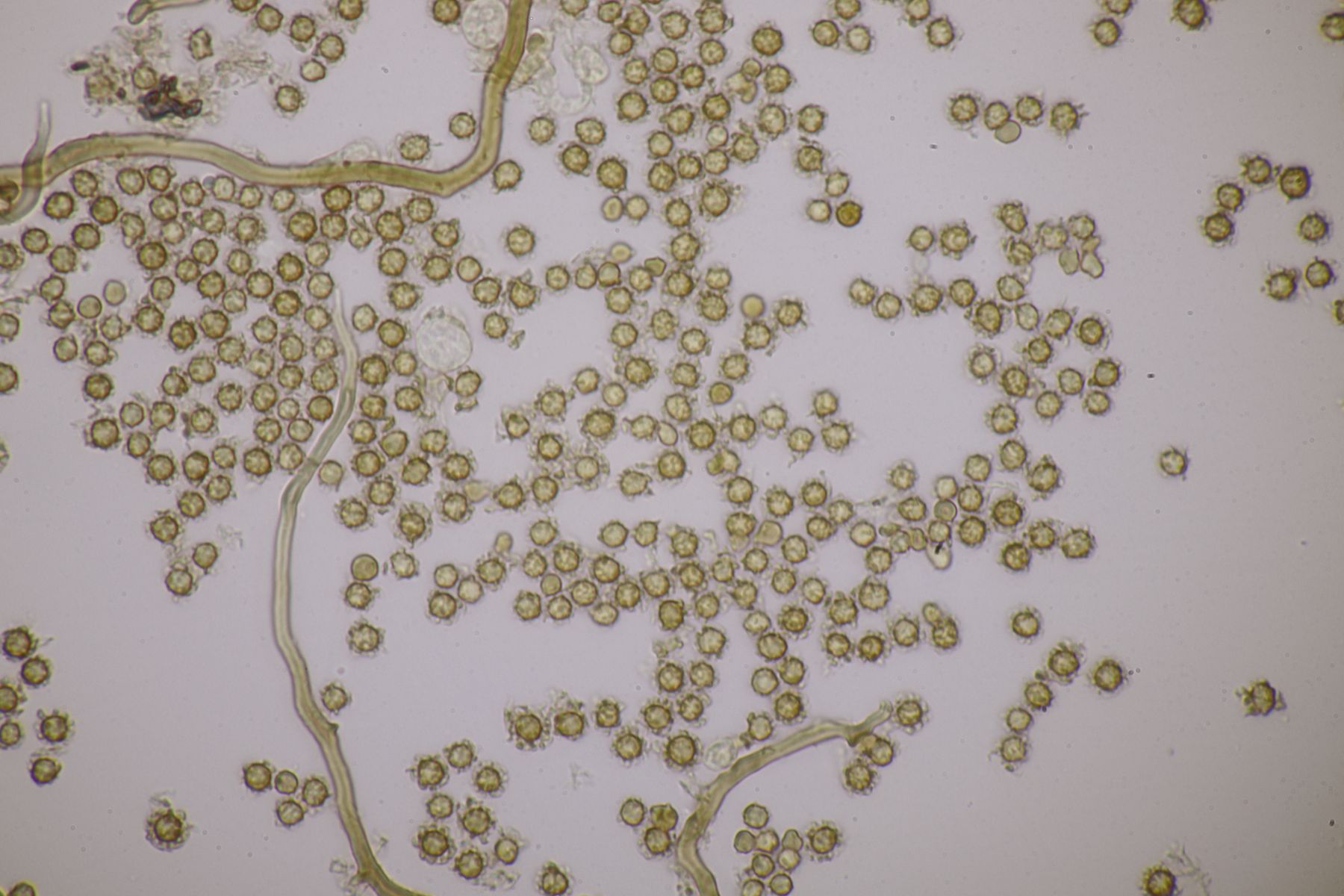 2. Melanustilospora ari ex Arum maculatum. Das war ein härteres Stück Arbeit. Der Fund war bei inaturalist im Botanischen Garten verzeichnet. Ich habe die markierte Stelle intensiv abgesucht: Nichts. Dann in der weiteren Umgebung des Fundorts: Nichts. Schließlich fiel mir auf, daß die Fotos bei inaturalist auch Buchenblätter zeigten. Also mußte man unter Buchen suchen. Und in der Tat, da wurde ich dann auch direkt fündig. Dann der nächste Schock: Ich hatte morgens etwas in Eile meine Kamera eingesteckt und nicht gesehen, daß die Speicherkarte noch im Rucksack steckte. Also am nächsten Tag in der Mittagspause noch einmal schnell in den Botanischen Garten und das Objekt der Begierde ausgiebig abgelichtet: