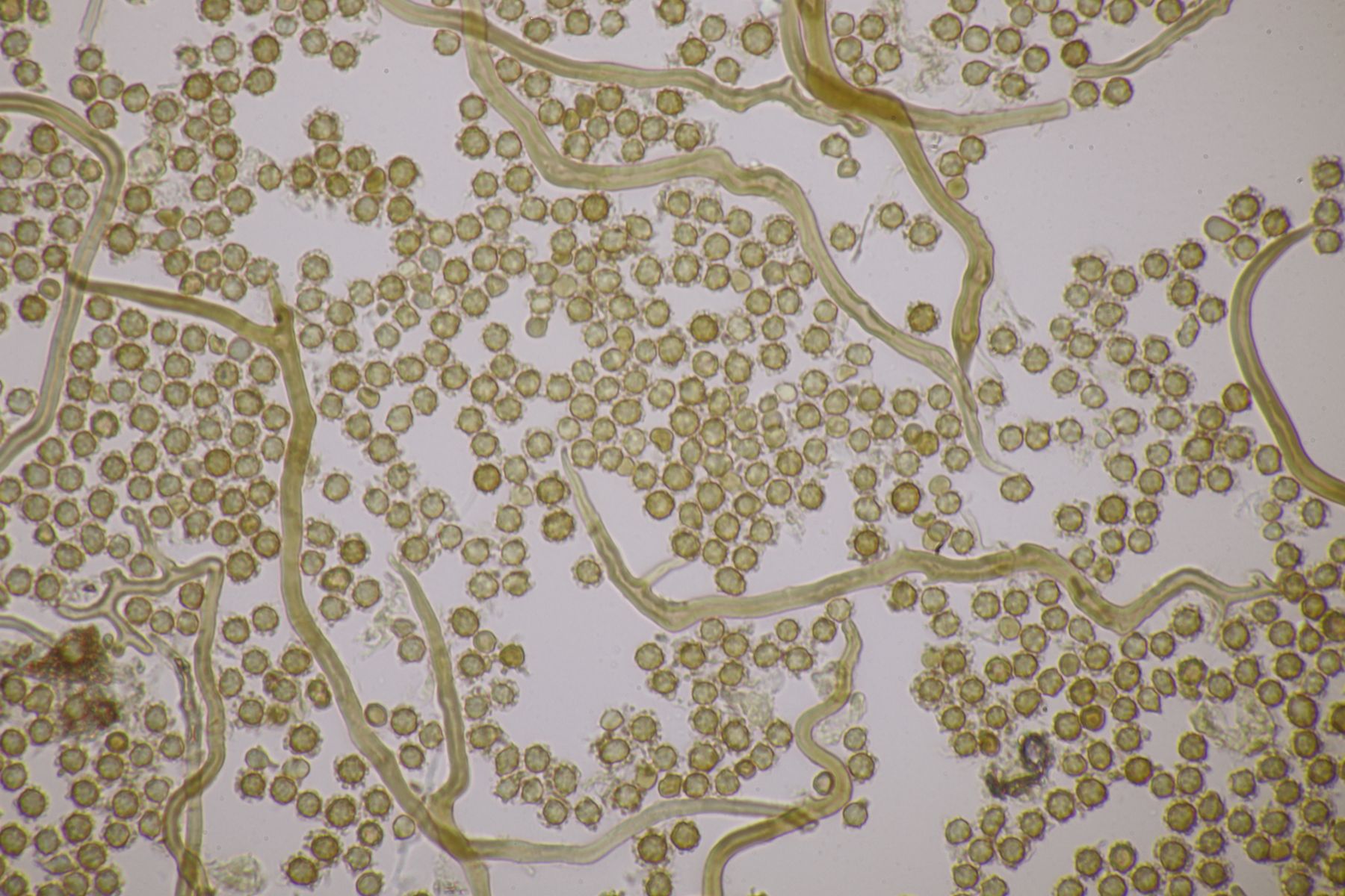 2. Melanustilospora ari ex Arum maculatum. Das war ein härteres Stück Arbeit. Der Fund war bei inaturalist im Botanischen Garten verzeichnet. Ich habe die markierte Stelle intensiv abgesucht: Nichts. Dann in der weiteren Umgebung des Fundorts: Nichts. Schließlich fiel mir auf, daß die Fotos bei inaturalist auch Buchenblätter zeigten. Also mußte man unter Buchen suchen. Und in der Tat, da wurde ich dann auch direkt fündig. Dann der nächste Schock: Ich hatte morgens etwas in Eile meine Kamera eingesteckt und nicht gesehen, daß die Speicherkarte noch im Rucksack steckte. Also am nächsten Tag in der Mittagspause noch einmal schnell in den Botanischen Garten und das Objekt der Begierde ausgiebig abgelichtet:
