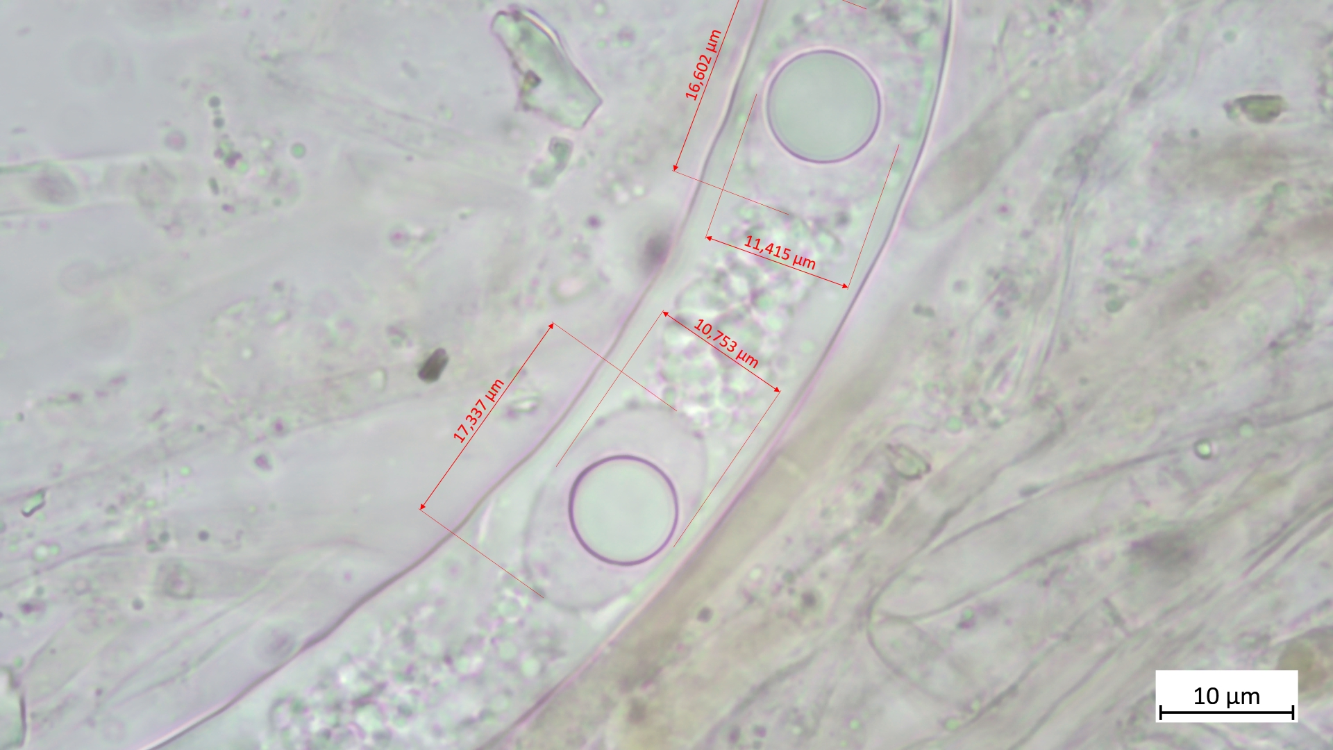 Die Sporen sind leider maximal unreif, teilweise gar nicht zu beurteilen, weil sich der ASCI-Inhalt blasig zeigt. Versuche die nachreifen zu lassen: