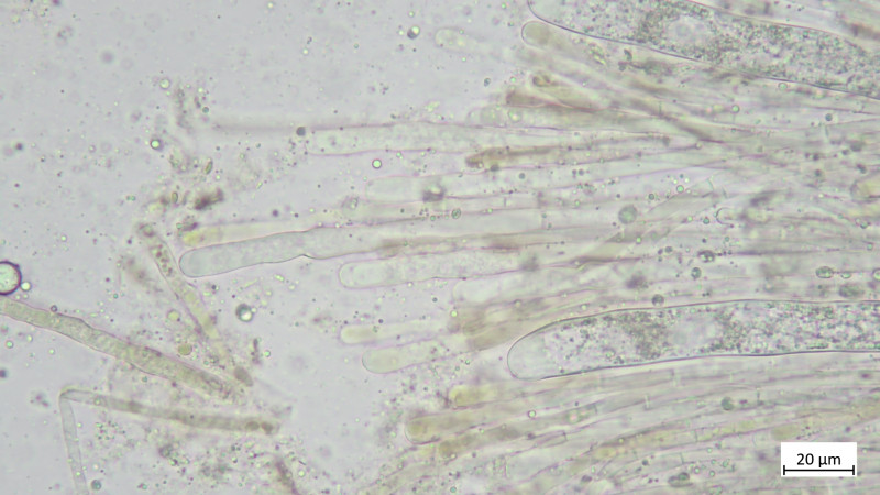 Sporen: 7,6-8,0 µm (av. 7,9 µm, SD 0,2 µm) x 4,8-5,2 µm (av. 5,0 µm, SD 0,1 µm); Q = 1,5-1,7 (av. 1,6, SD 0,1)(n = 5)