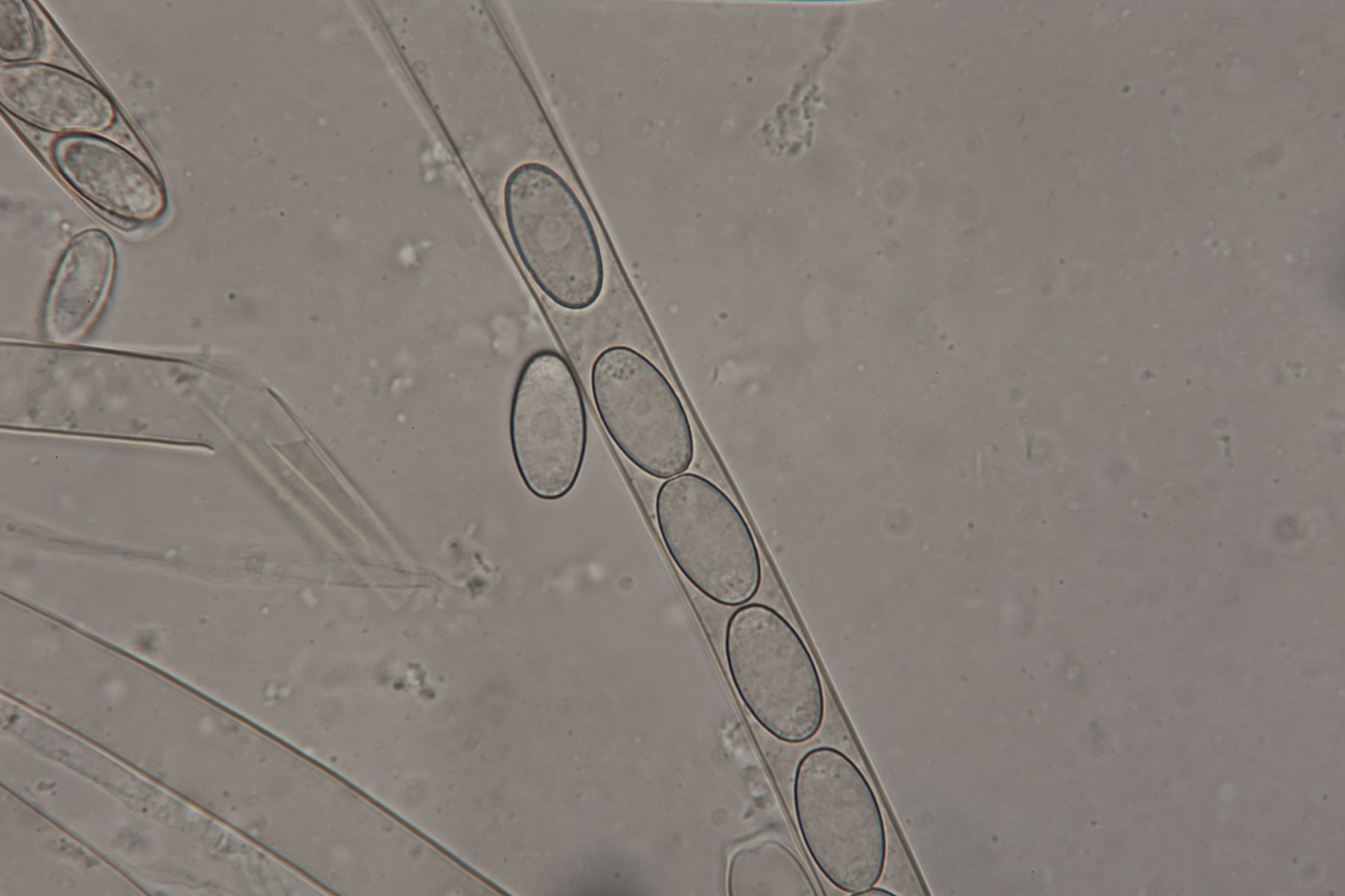 Sporen ca. 15-16 x 7-8, feinwarzig ornamentiert