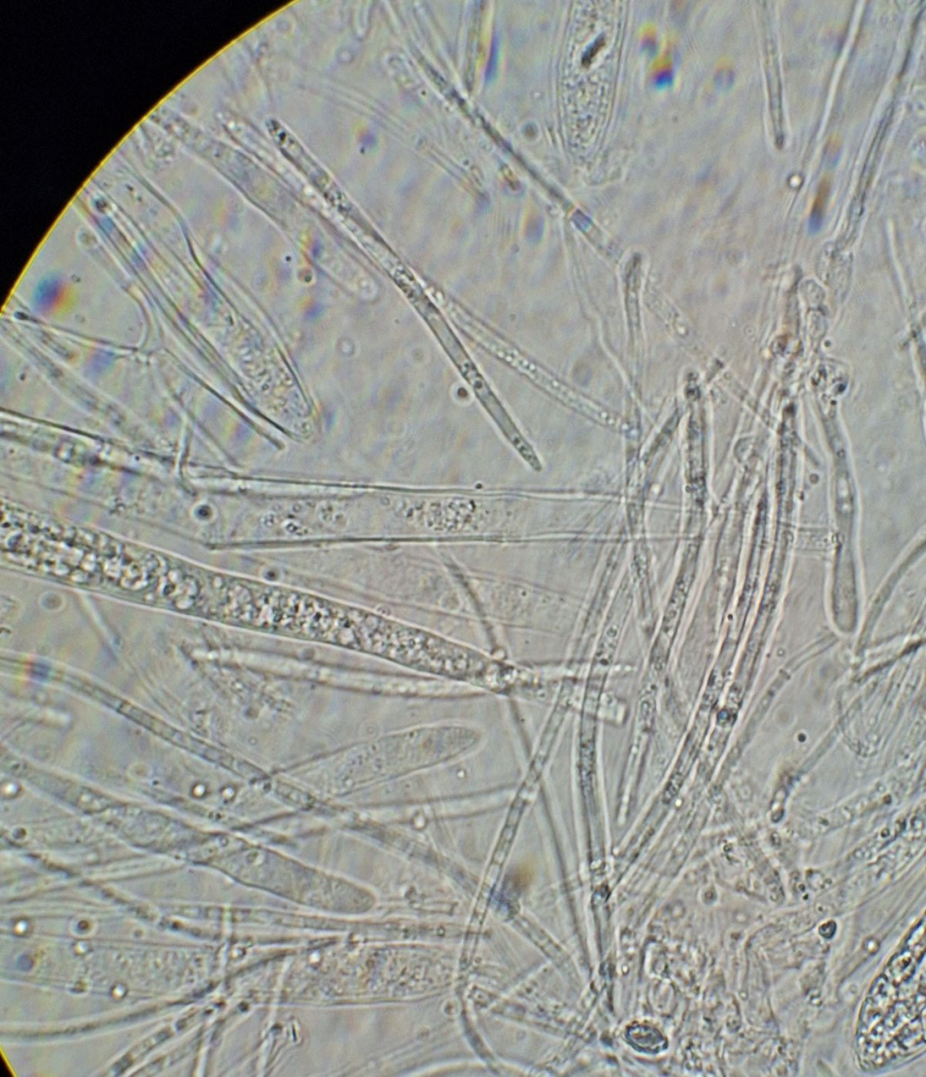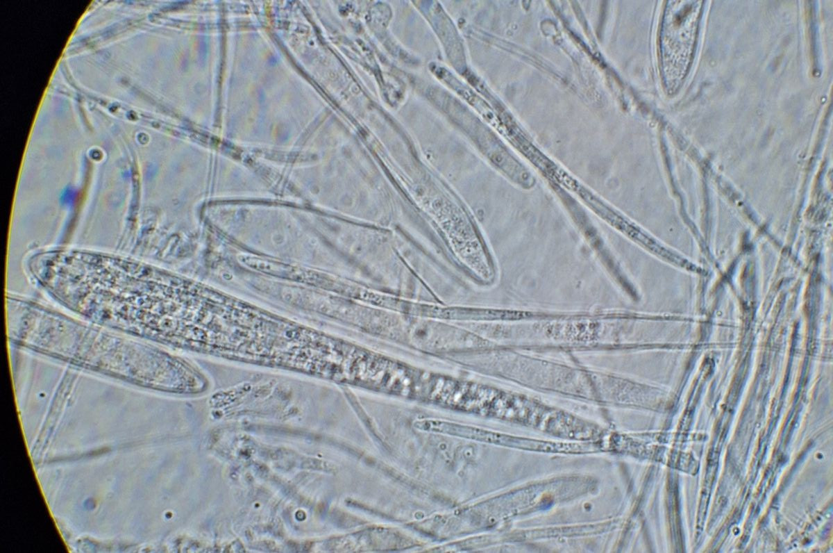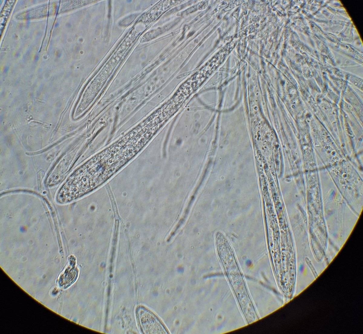 J+, leicht violett gefärbte Ascus-Spitze, Ascus ~85 µm lang