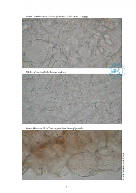 in der mitte Textura intricata und außen Textura globulosa mit braunem Pigment.