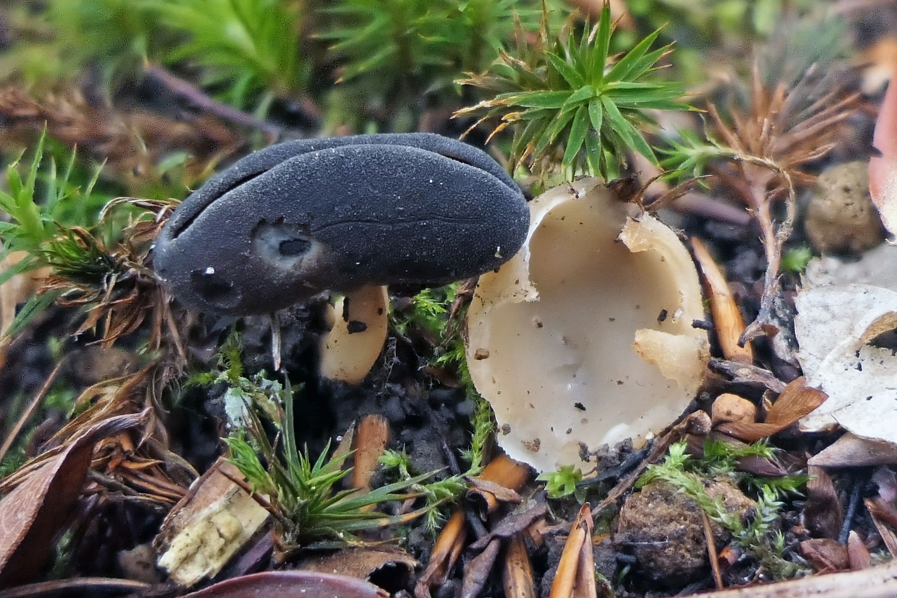 Unter Eiche, Buche, Lärche 06 Helvella solitaria - die rippenstielige Becherlorchel (die einen Erstfund für mich darstellt):