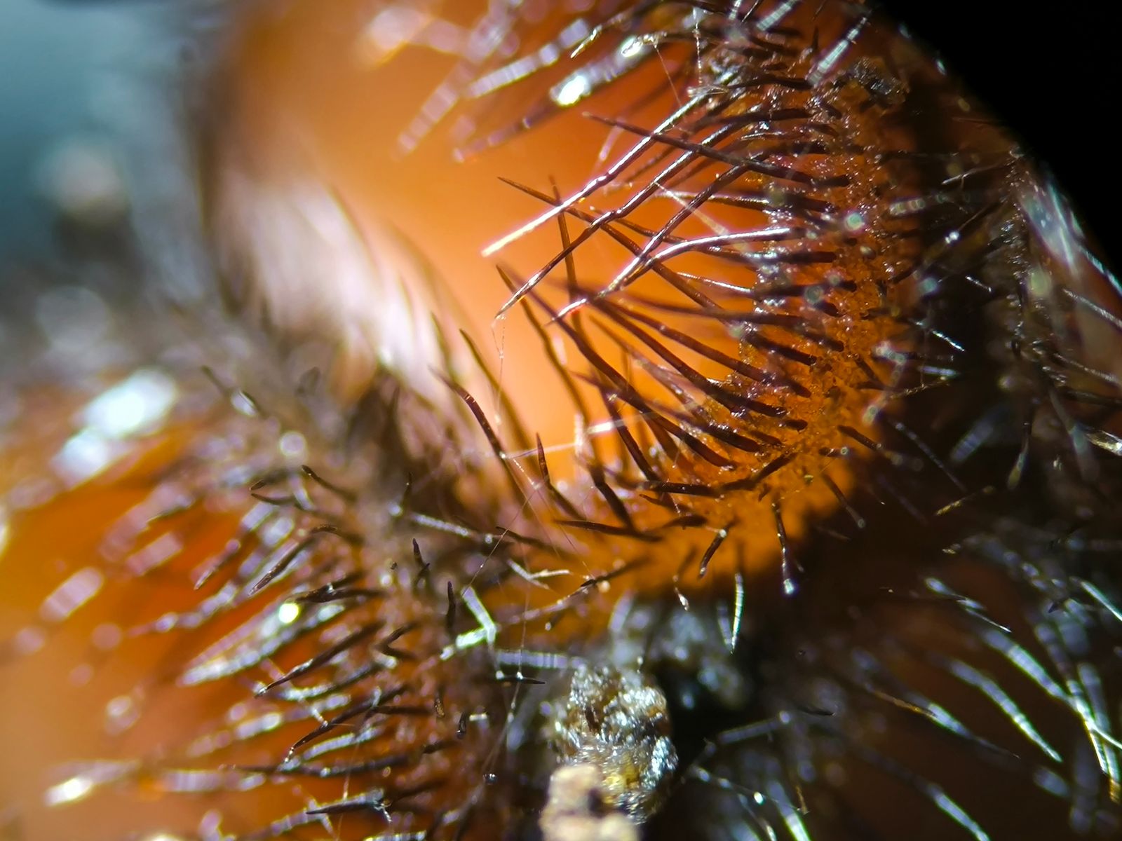 Dann noch ein kleines Schauspiel. Gestern nach dem Laufen kam ich vorbei an einem liegenden Eichenstamm (an unserem Reiterhof). Da blitzte mich von der abfallenden bodennahen Rinde etwas wegen der Masse nicht zu übersehendes Rotes an.