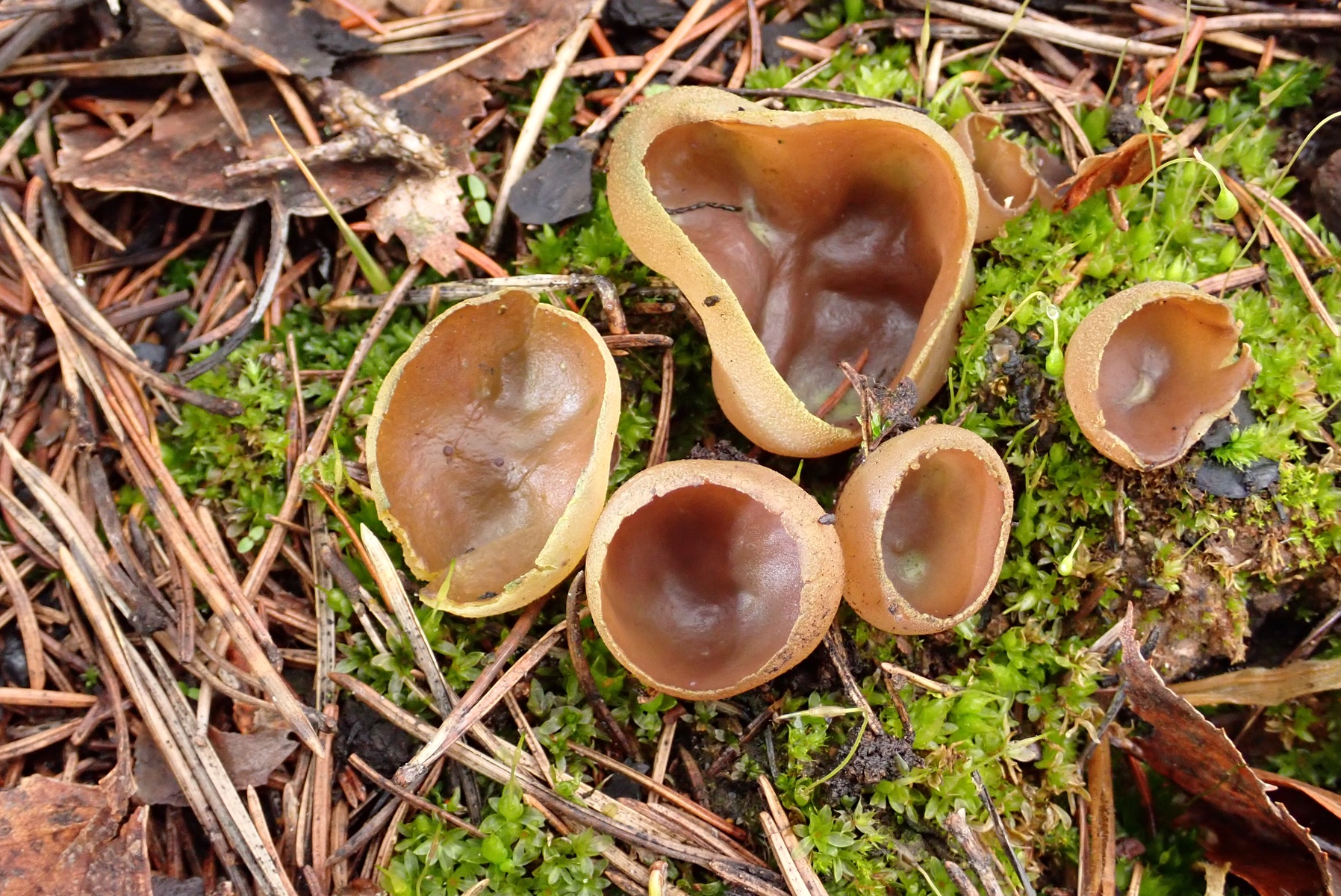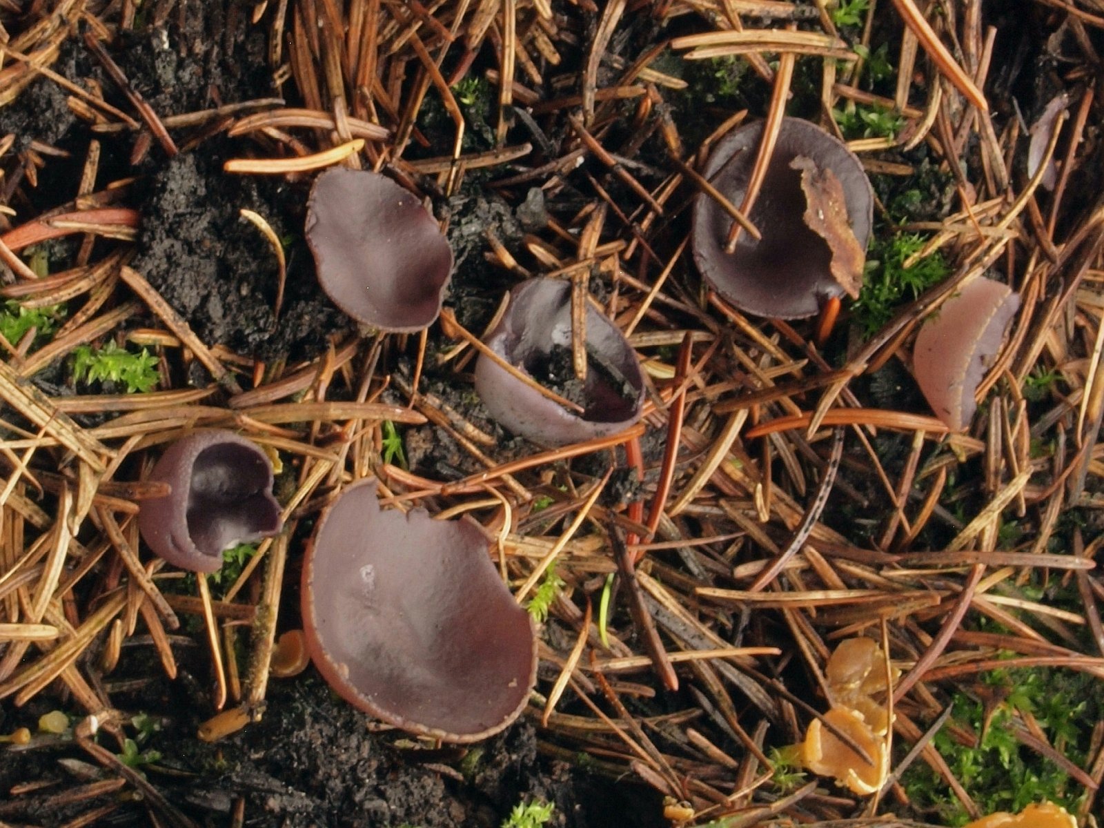 04. Geoscypha violacea, der Violette Brandstellenbecherling war immer noch reichlich zu finden, wenn auch schon älter und wenig violett…