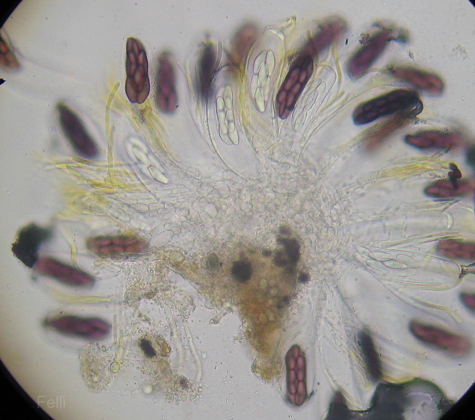 Paraphysen fädig kaum apikal erweitert - 3µ, oberste Zelle gelb gefüllt.