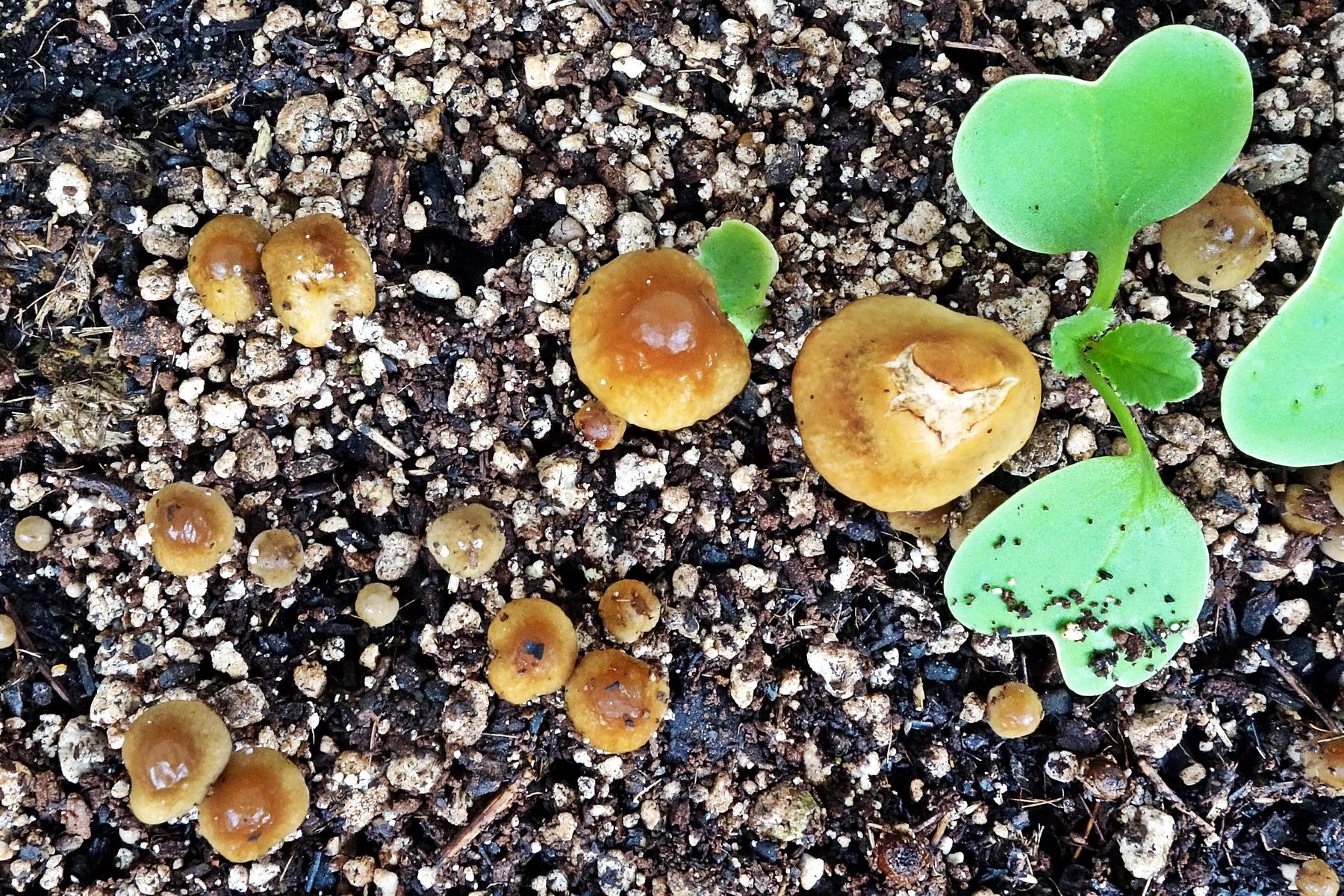 Hallo, seit einigen Wochen wachsen bei mir in einigen Balkonkästen zwischen den Radieschen mehrere kleine Pilze. Geschack und Geruch mild und pilzig.