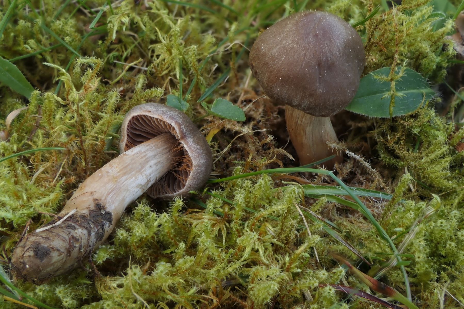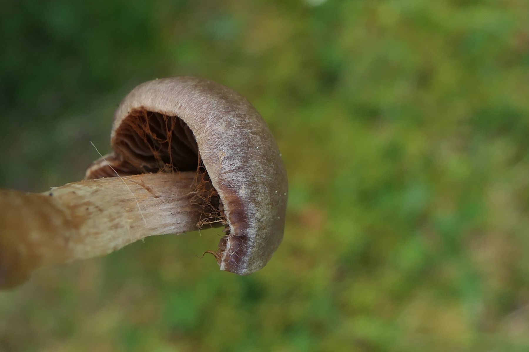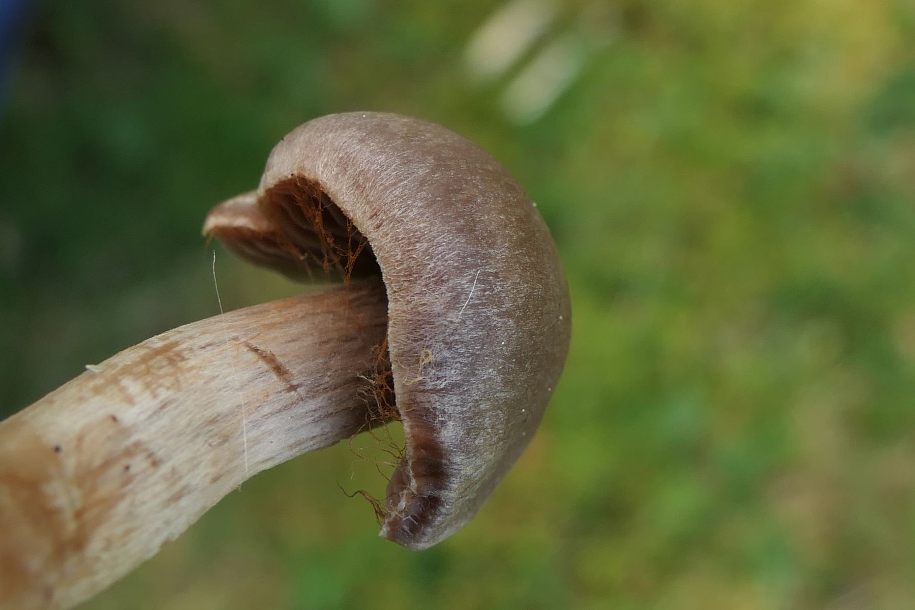 Also Rottöne kann man da, wenn überhaupt, vielleicht als Hauch oder minimalen Unterton wahrnehmen. Die Fruchtkörper sind Überwiegend braun mit weißem Velum, so dass der grundlegend ins braune neigende Stiel weiß erscheint (silbrig-weiß überfasert durch das Velum).